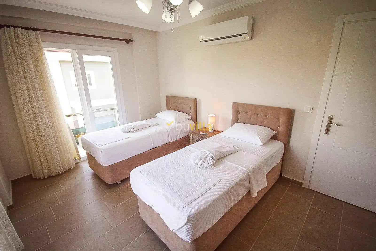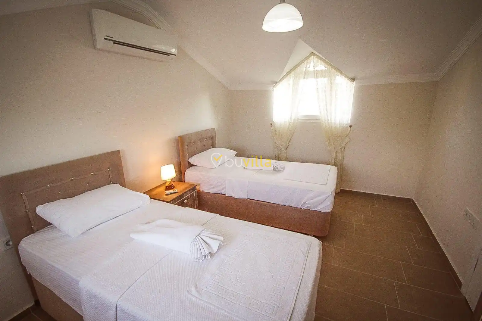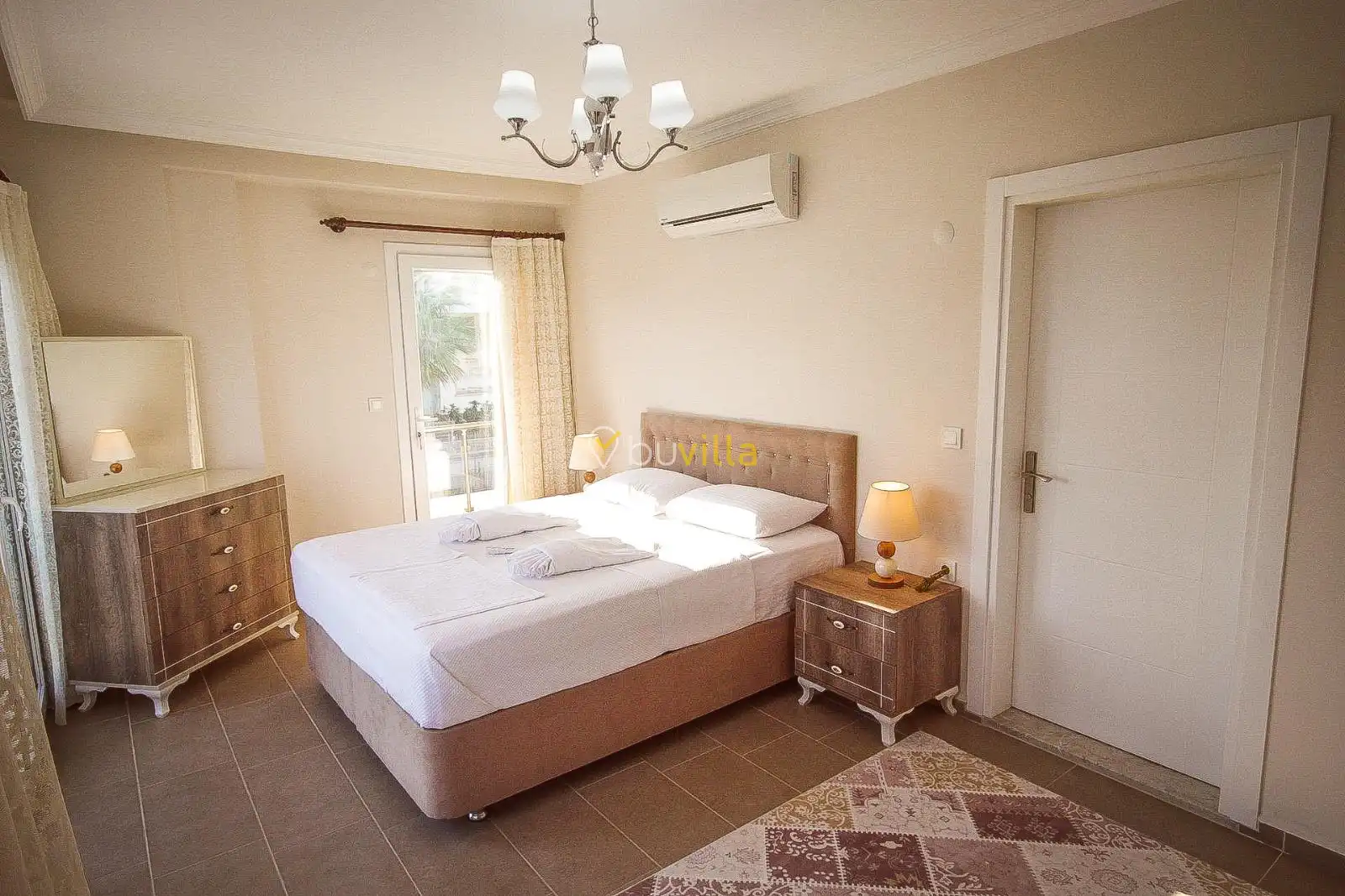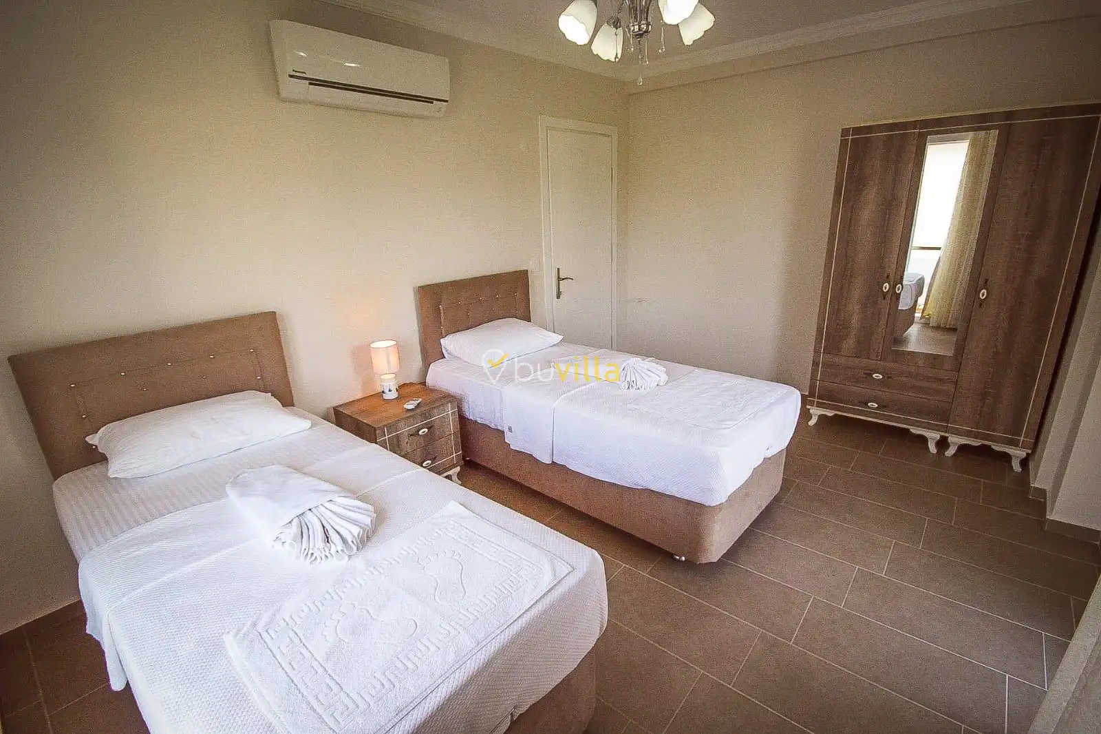 Villa içerisinde dört yatak odası ve üç banyo bulunmaktadır. Birinci yatak odasında çift kişilik yatak, klima, WC-duş ve jakuzi yer alırken, ikinci ve üçüncü yatak odalarında ikişer tek kişilik yatak ve klima bulunmaktadır. Dördüncü yatak odasında ise çift kişilik yatak ve klima mevcuttur. Villanın salonunda klima, mutfak ve TV bulunmakta olup ortak kullanım için iki adet WC-duş yer almaktadır.