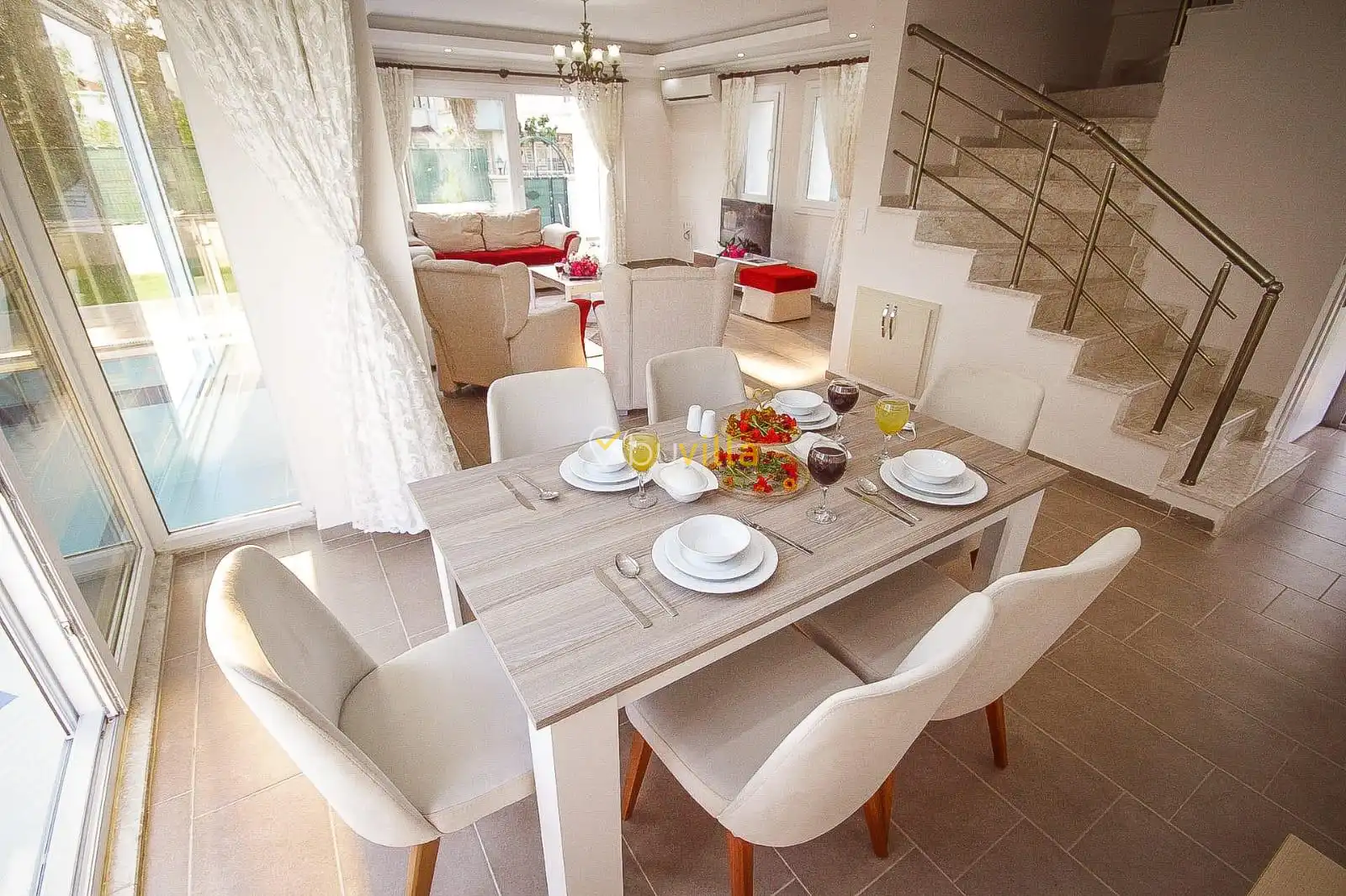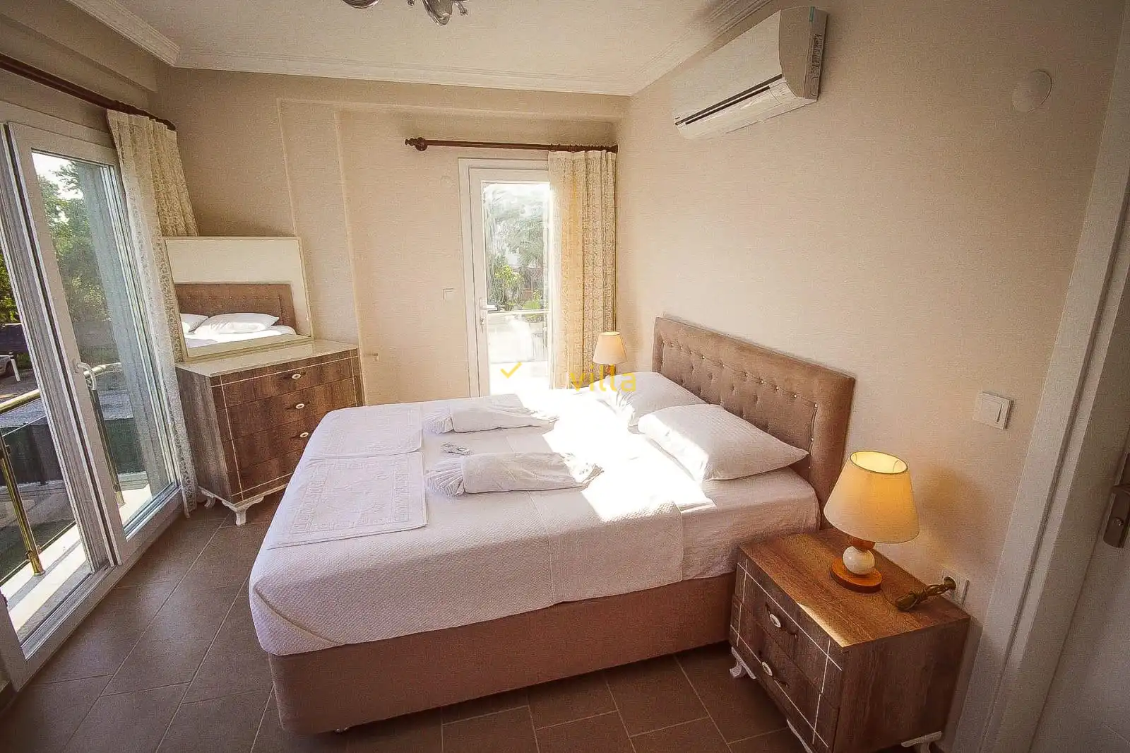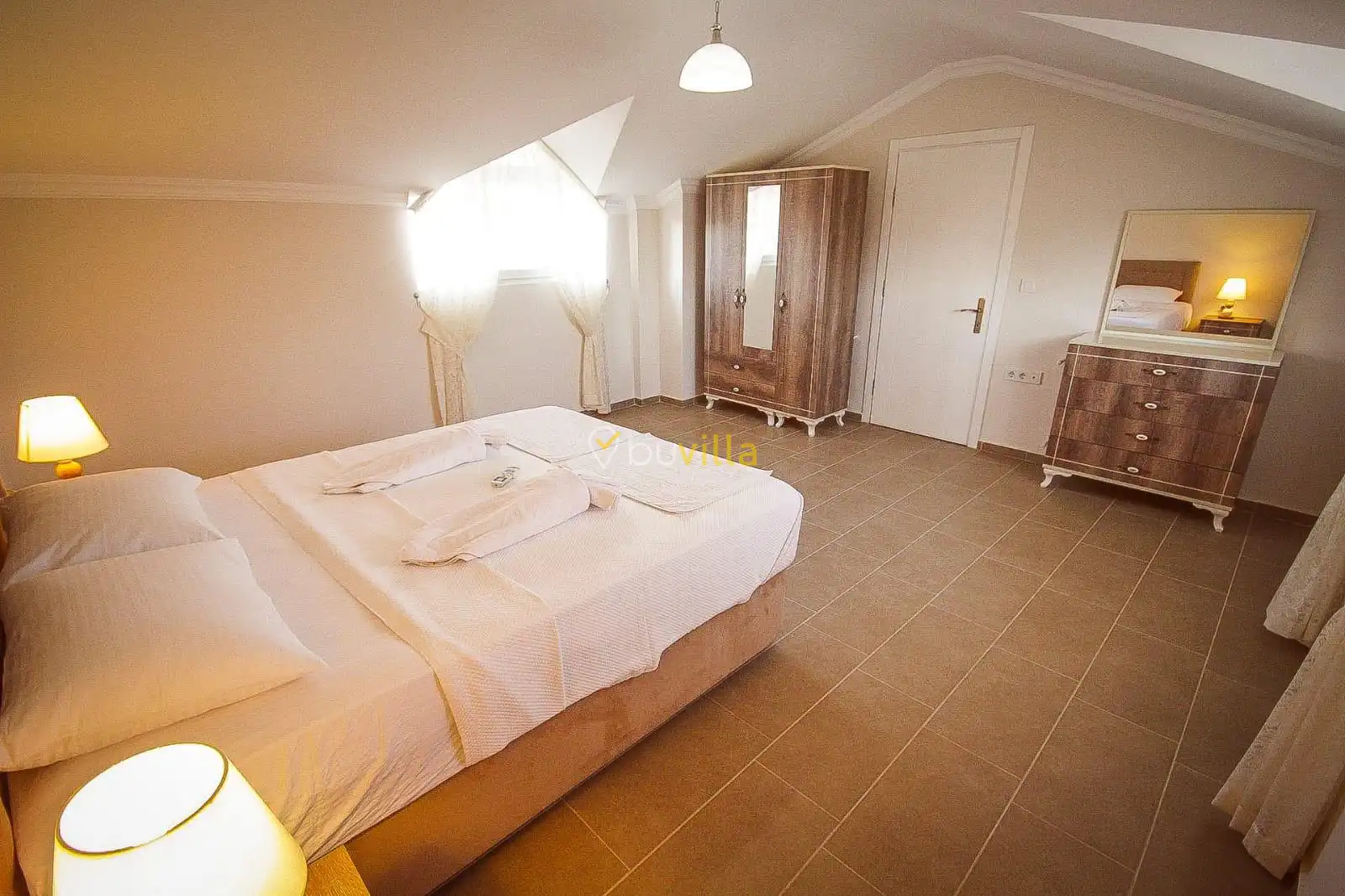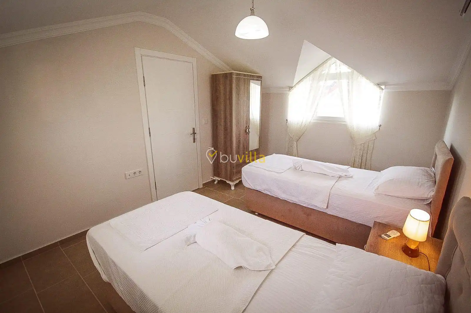 Villa içerisinde dört yatak odası ve üç banyo bulunmaktadır. Birinci yatak odasında çift kişilik yatak, klima, WC-duş ve jakuzi yer alırken, ikinci ve üçüncü yatak odalarında ikişer tek kişilik yatak ve klima bulunmaktadır. Dördüncü yatak odasında ise çift kişilik yatak ve klima mevcuttur. Villanın salonunda klima, mutfak ve TV bulunmakta olup ortak kullanım için iki adet WC-duş yer almaktadır.