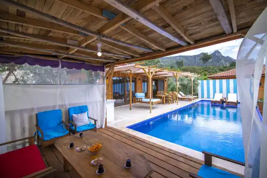 Kalkan İslamlar Köyü’nde konumlanan Villa Pınar İslamlar, doğa ile iç içe huzurlu atmosferi ve mahremiyete önem veren yapısıyla öne çıkan muhafazakar kiralık villa seçenekleri arasında yer almaktadır. İki yatak odası ve iki banyoya sahip olan villamız, 4 kişilik konaklama kapasitesi ile çekirdek aileler ve balayı çiftleri için ideal bir tatil imkânı sunar.
