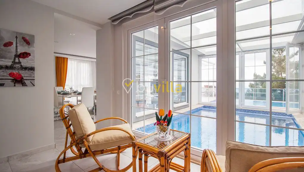 3 suit yatak odasına sahip olan Villa Pırıltı, 6 kişilik konaklama kapasitesi ile özellikle balayı çiftleri ve muhafazakar aileler için ideal bir tercihtir. Villada yer alan kapalı ve ısıtmalı yüzme havuzu, serin dönemlerde dahi tatilin keyfini çıkarmanıza olanak tanırken, spor salonu tatil süresince formunu korumak isteyen misafirler için avantaj sağlar.