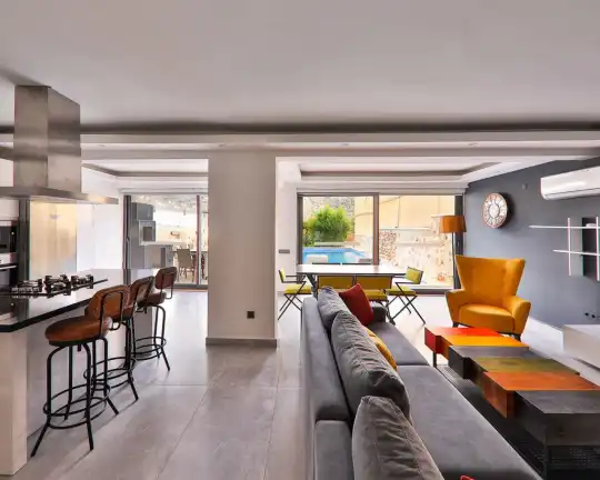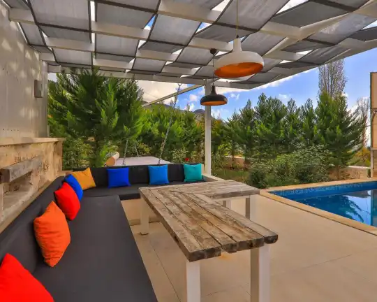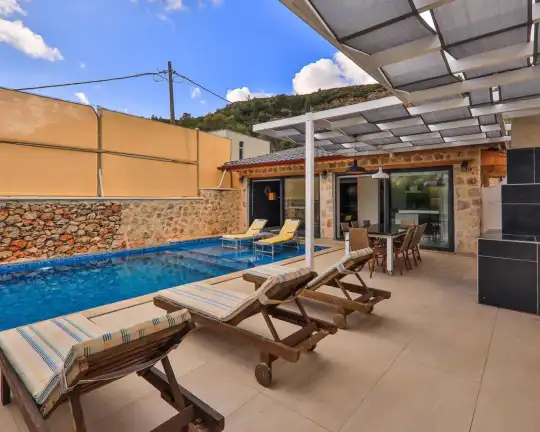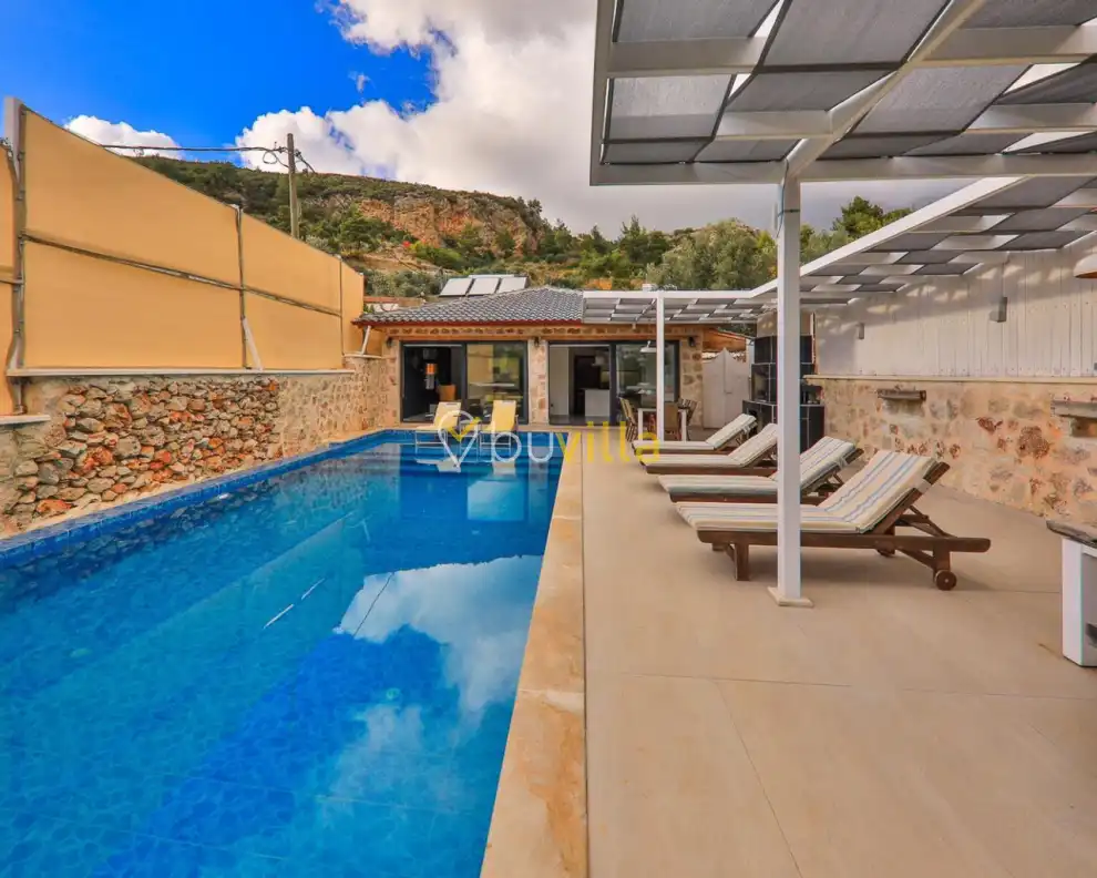 Doga Manzarali Muhafazakar Villa Villa Redro, Kalkan Islamlar mevkiinde yer almaktadir. 2 yatak odali 4 kisiye kadar konaklama imkani sunmaktadir. Saunali ve kapali havuzu yer alan villamiz kis aylari içinde kiralamaya uygundur. Amerikan mutfaginda ihtiyaç duyabileceginiz tüm ekipmanlar yer almakta olup konforlu mobilyalarla dizayn edilmis salonu hizmetinizdedir. Kapali Havuz Ölçüleri : Uzunluk 5 m Genislik 3 m Derinlik 0,90 m Not: Kapali havuz isitmasi talep edildigi taktirde günlük 1000 TL den aktif hale getirilmektedir.