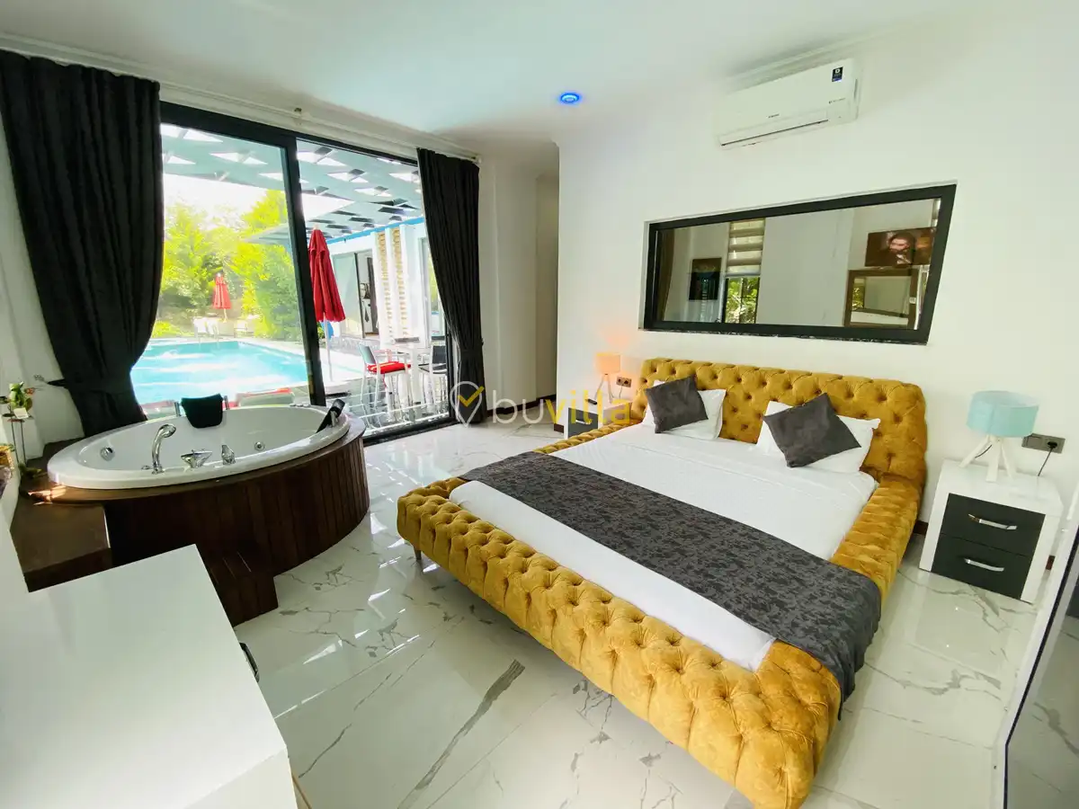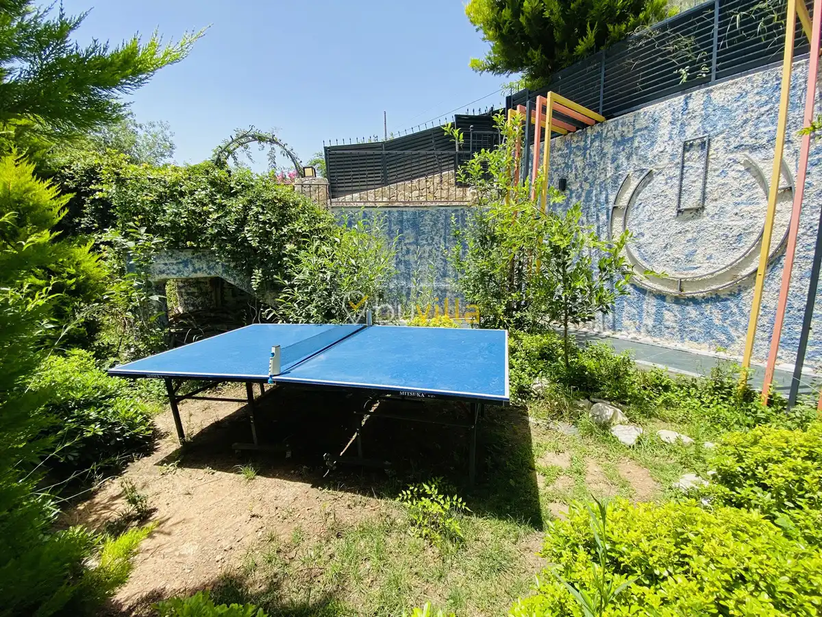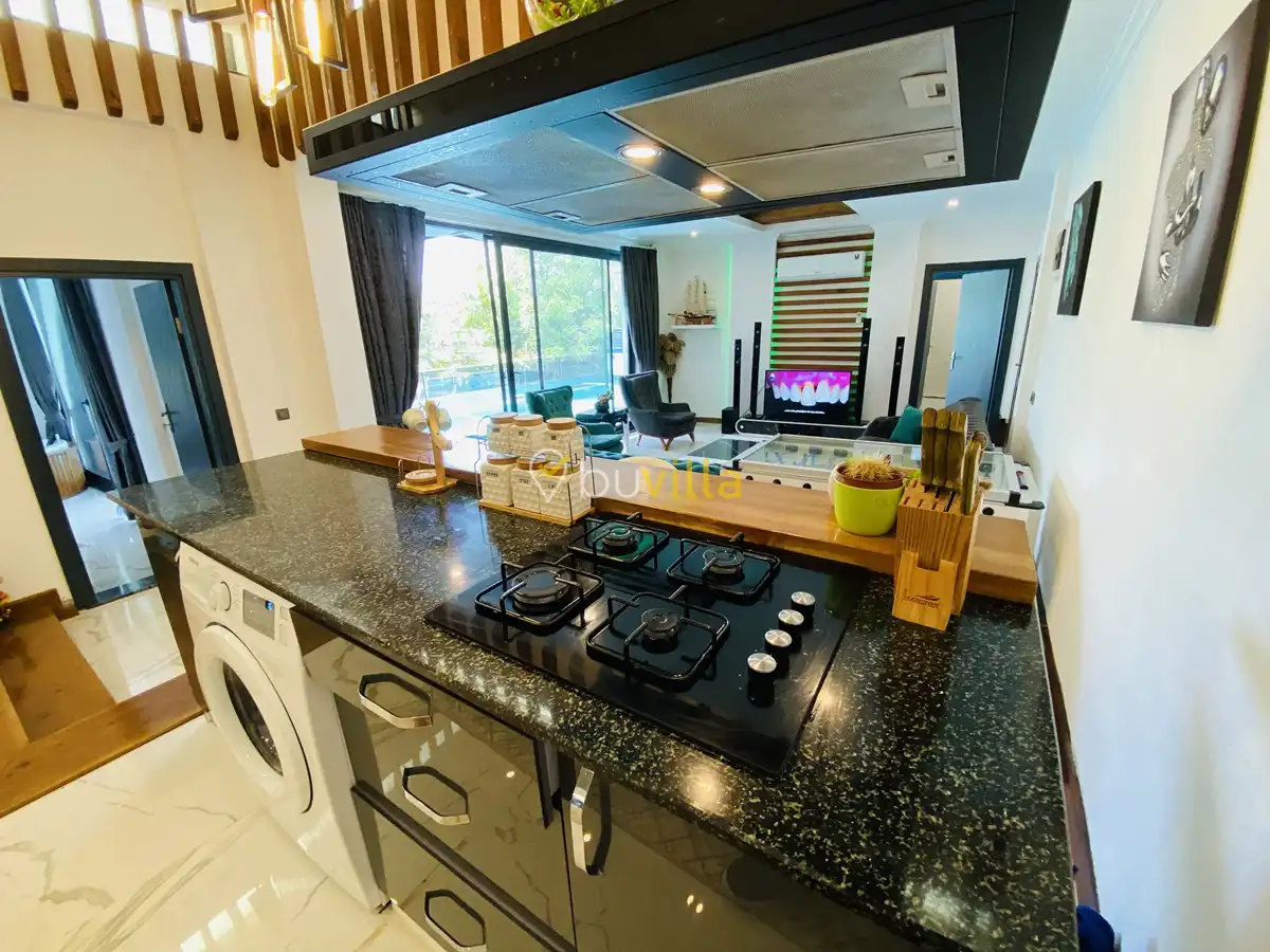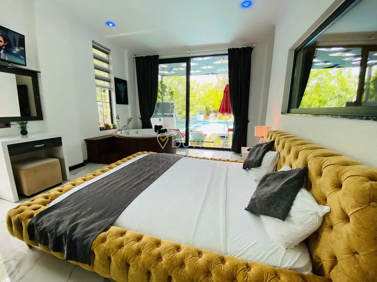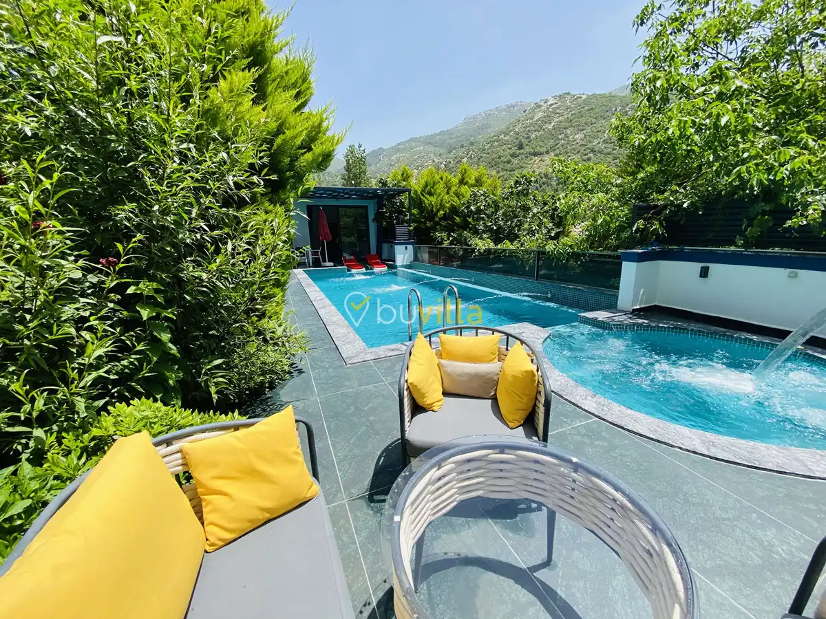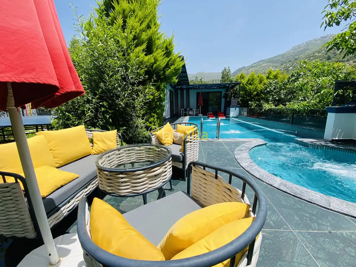 Müstakil yüzme havuzuna sahip olan villamızda, havuzun bir bölümü sığ havuz olarak tasarlanmış olup, yuvarlak formdaki alan ise jakuzi özelliği sunmaktadır. Bu sayede hem keyifli hem de dinlendirici anlar yaşayabilirsiniz.