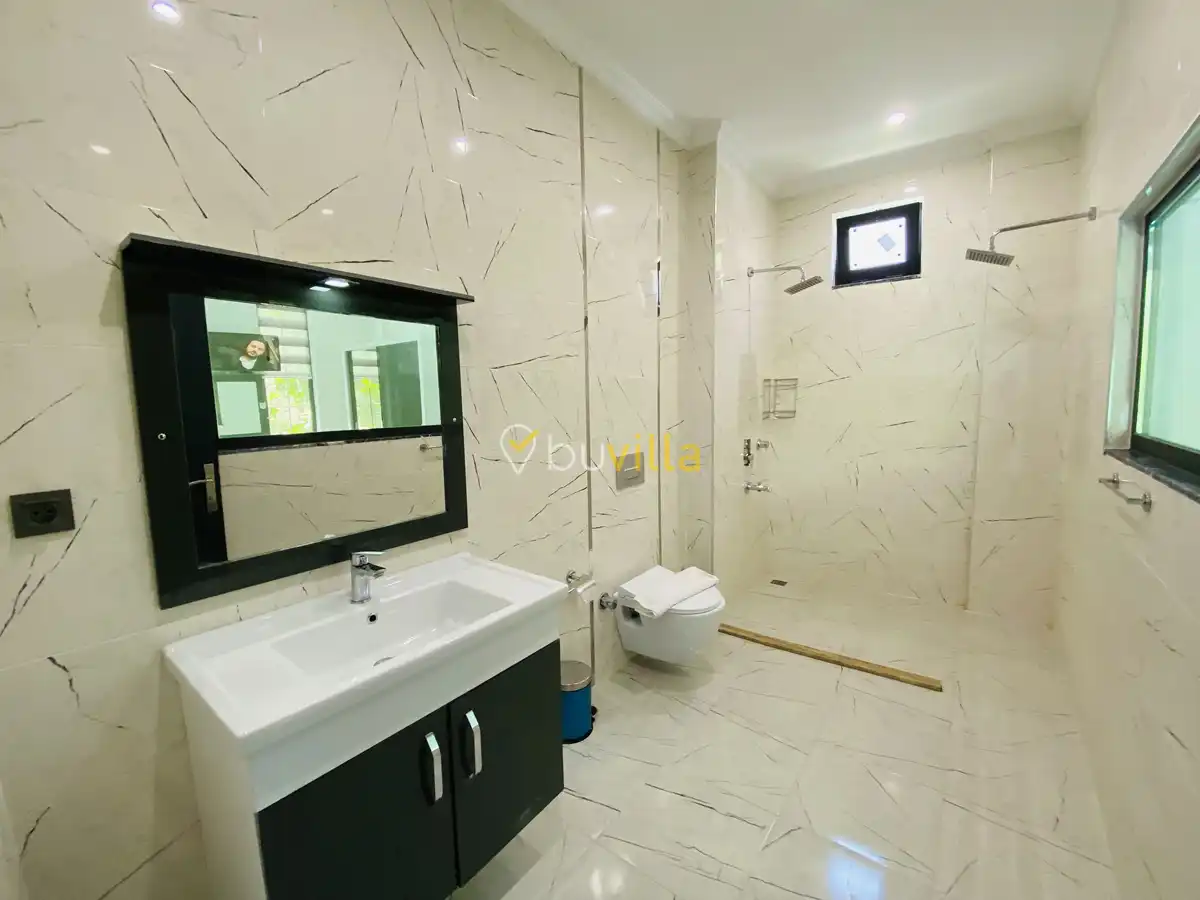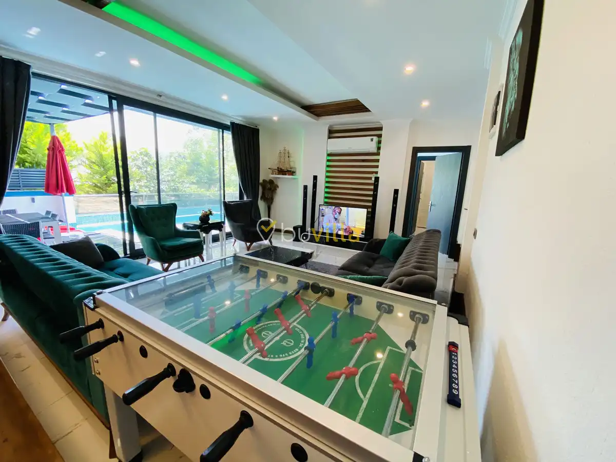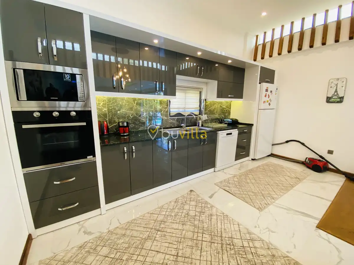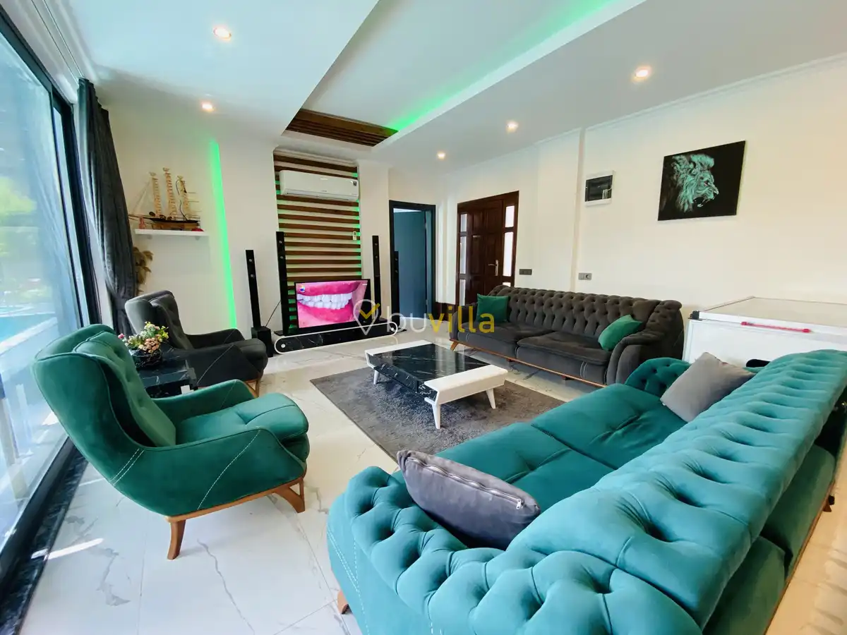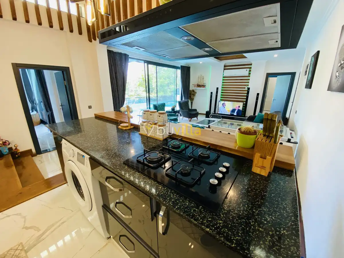 Müstakil yüzme havuzuna sahip olan villamızda, havuzun bir bölümü sığ havuz olarak tasarlanmış olup, yuvarlak formdaki alan ise jakuzi özelliği sunmaktadır. Bu sayede hem keyifli hem de dinlendirici anlar yaşayabilirsiniz.