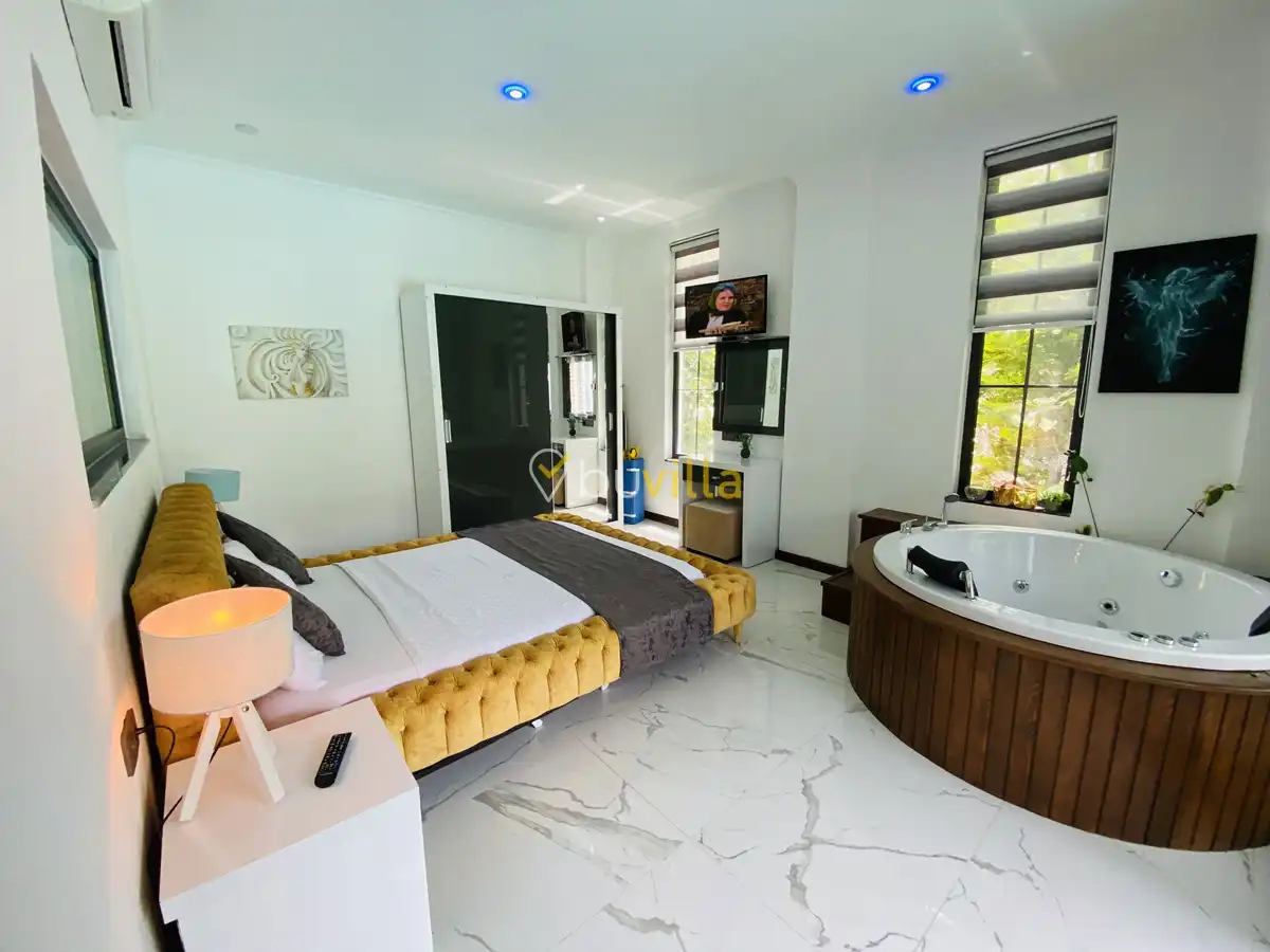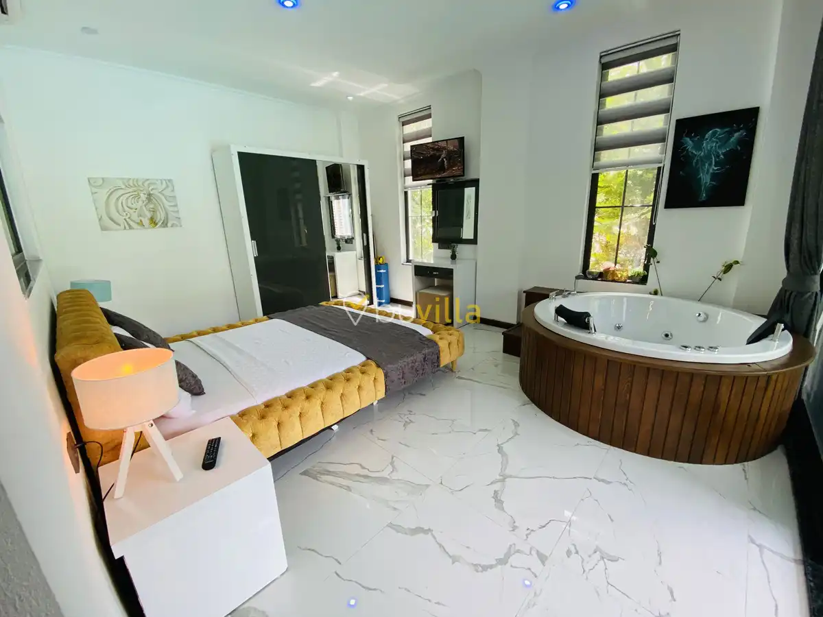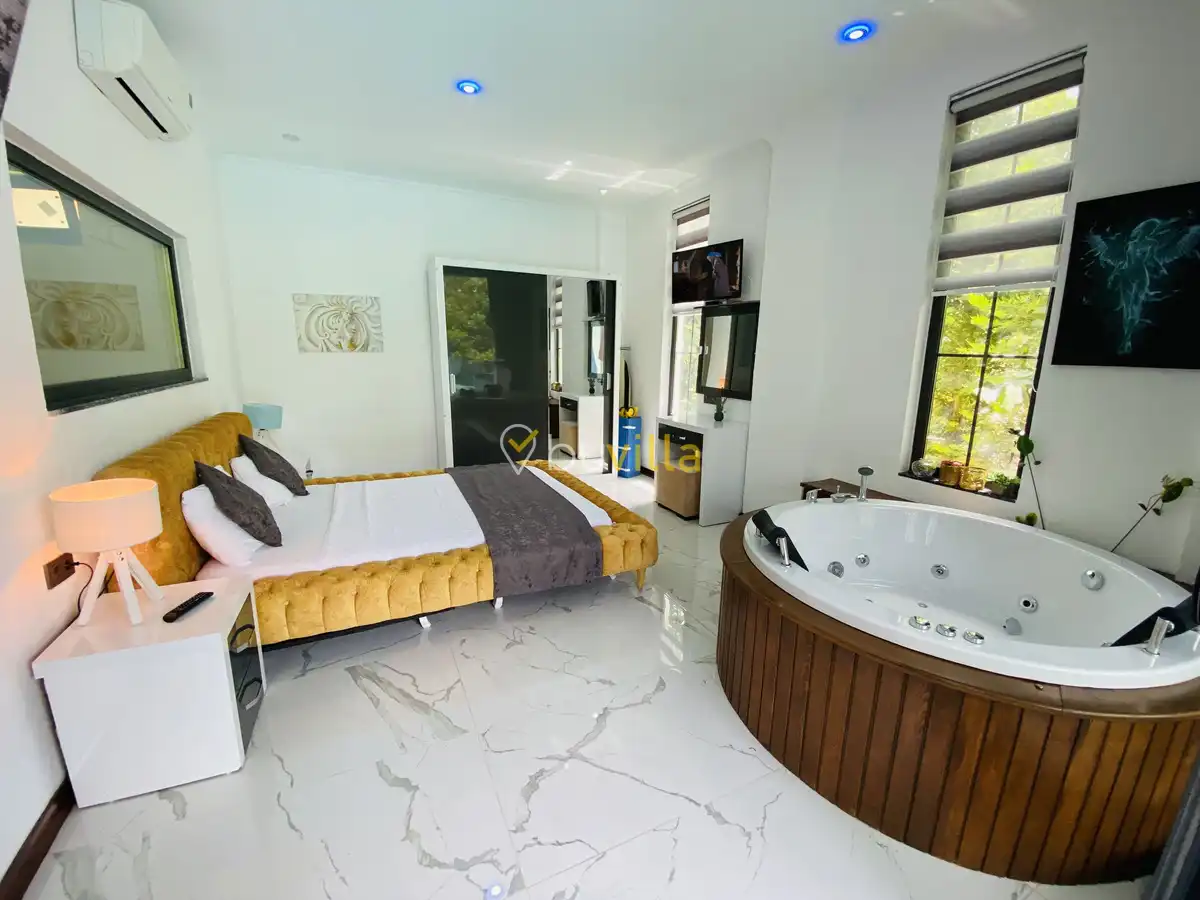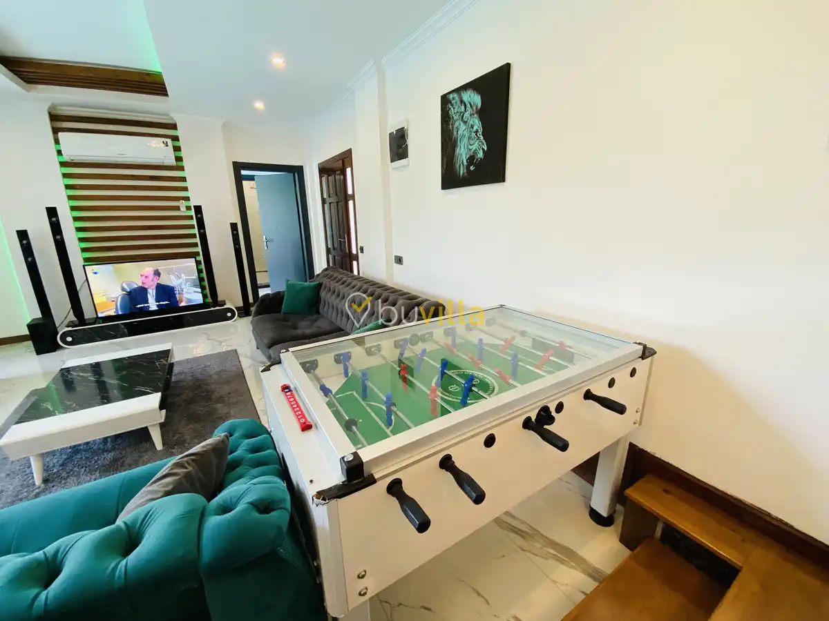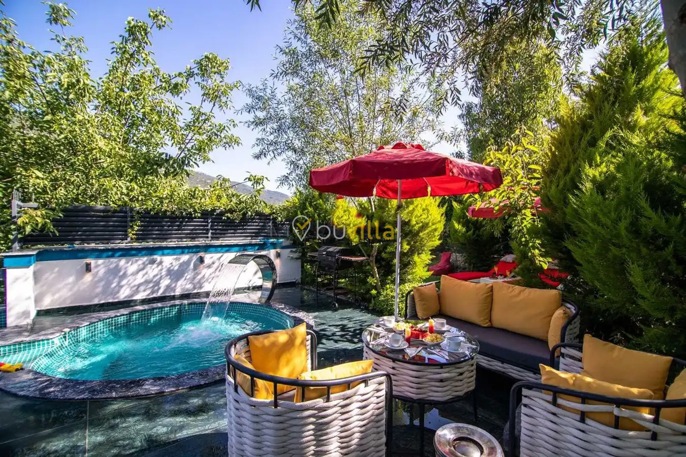 Müstakil yüzme havuzuna sahip olan villamızda, havuzun bir bölümü sığ havuz olarak tasarlanmış olup, yuvarlak formdaki alan ise jakuzi özelliği sunmaktadır. Bu sayede hem keyifli hem de dinlendirici anlar yaşayabilirsiniz.