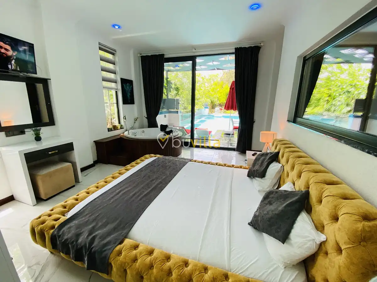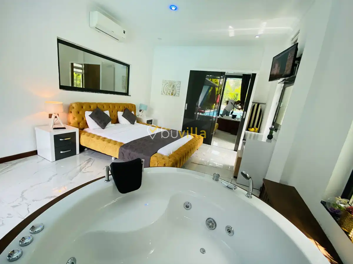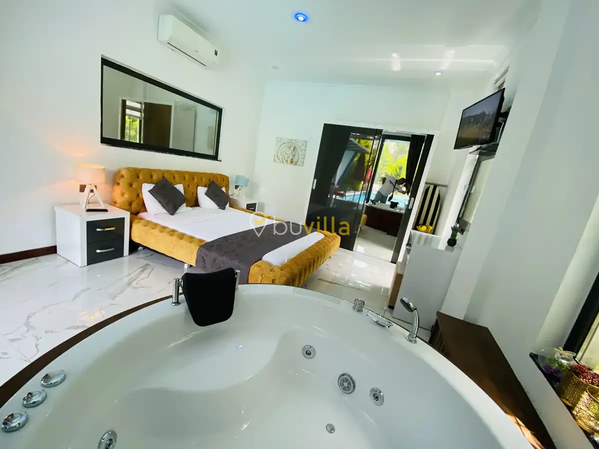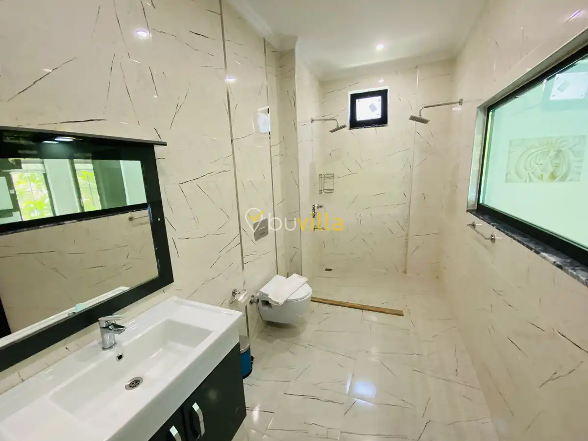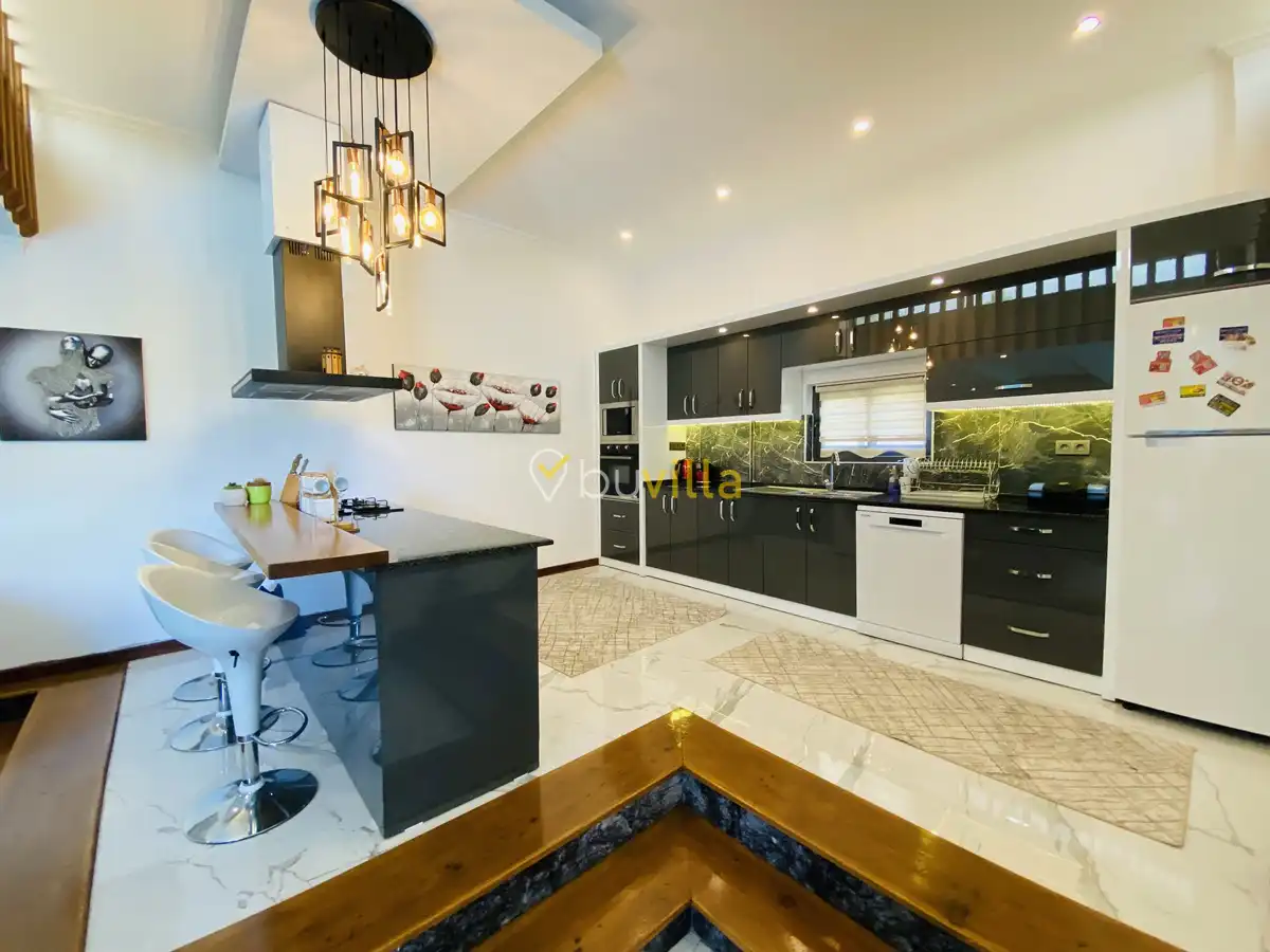 Müstakil yüzme havuzuna sahip olan villamızda, havuzun bir bölümü sığ havuz olarak tasarlanmış olup, yuvarlak formdaki alan ise jakuzi özelliği sunmaktadır. Bu sayede hem keyifli hem de dinlendirici anlar yaşayabilirsiniz.
