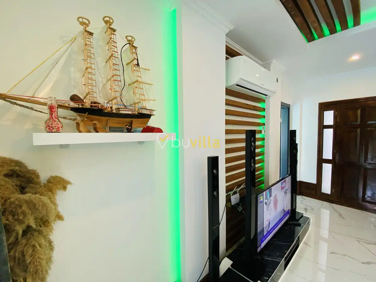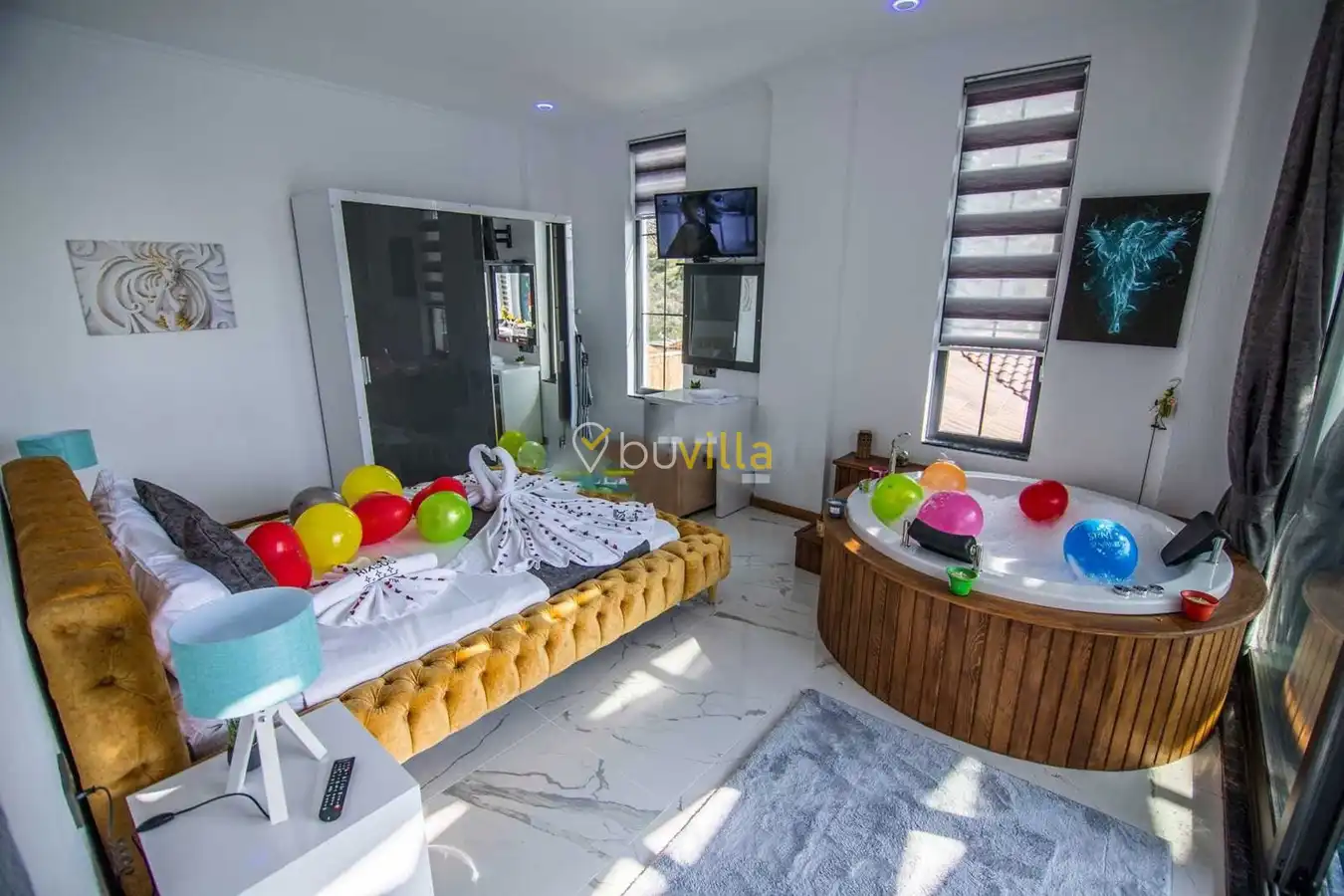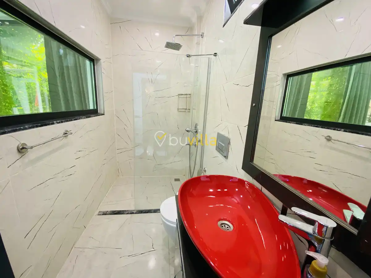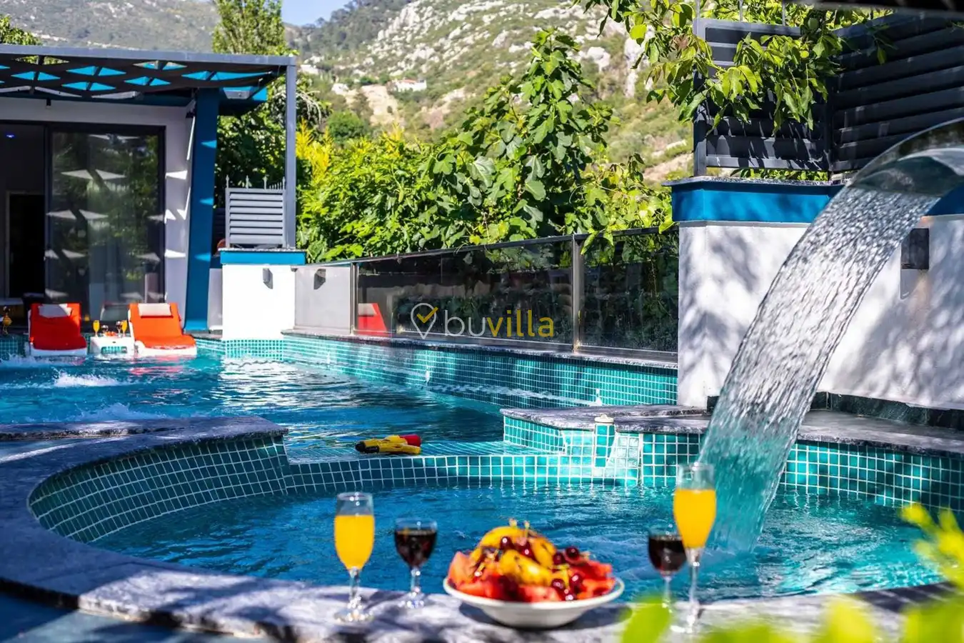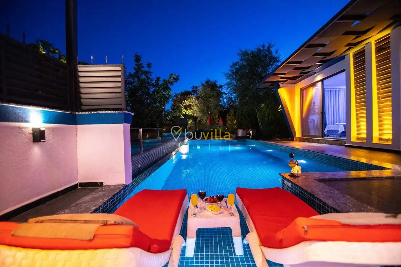 Müstakil yüzme havuzuna sahip olan villamızda, havuzun bir bölümü sığ havuz olarak tasarlanmış olup, yuvarlak formdaki alan ise jakuzi özelliği sunmaktadır. Bu sayede hem keyifli hem de dinlendirici anlar yaşayabilirsiniz.