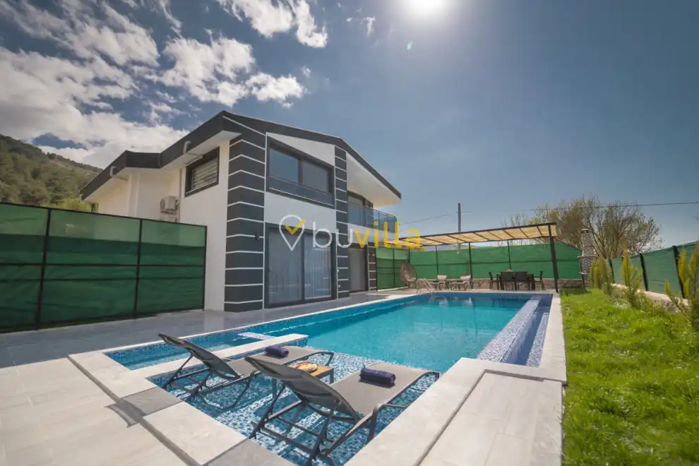 Doga Manzarali Villa Kiralik Villa Roseberry, Kalkan Saribelen bölgesinde 3 yatak odasi 6 kisiye kadar konaklama imkani sunan villamiz doga içerisinde yer almakta olup huzurlu bir tatil için ideal bir seçenektir. Modern amerikan mutfaginda ihtiyaç duyabileceginiz tüm ekipmanlar yer almakta olup konforlu mobilyalarla dizay edilmis salonu hizmetinizdedir. Çocuk havuzu ve çocuk oyun alani ve masa tenisi yer alan villamiz çocuklu aileler için ideal bir seçenektir.