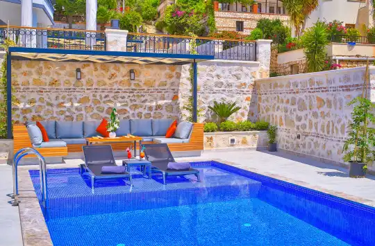 Deniz Manzarali Jakuzili Kiralik Villa Samira 1 ,Kalkan Kiziltas mevkiinde 3 yatak odali 6 kisi kapasitesindedir. Kiralik villamiz balayi çiftlerine ve çekirdek ailelerinde tercihleri arasindadir. Çati terasinda bulunan jakuzide deniz manzarasi ile hem ruhunuz dinlenecektir, hem de suyun vermis oldugu rahatlik ile bedeniniz rahatlayacaktir. Ihtiyaç duyabileceginiz tüm ekipmanlar yer almaktadir. Kiralik villa Samira 1 degerli misafirlerini agirlamayi beklemektedir.
