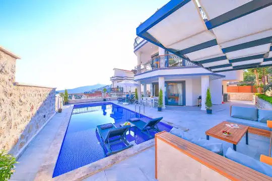 Deniz Manzarali Jakuzili Kiralik Villa Kiralik Villa Samira 4 ,Kalkan merkezde 3 yatak odali 6 kisi kapasitesindedir. Kiralik villamiz balayi çiftlerine ve çekirdek ailelerinde tercihleri arasindadir. Çati terasinda bulunan jakuzide deniz manzarasi ile hem ruhunuz dinlenecektir, hem de suyun vermis oldugu rahatlik ile bedeniniz rahatlayacaktir. Ihtiyaç duyabileceginiz tüm ekipmanlar yer almaktadir. Kiralik Villa Samira 4 degerli misafirlerini agirlamayi beklemektedir.
