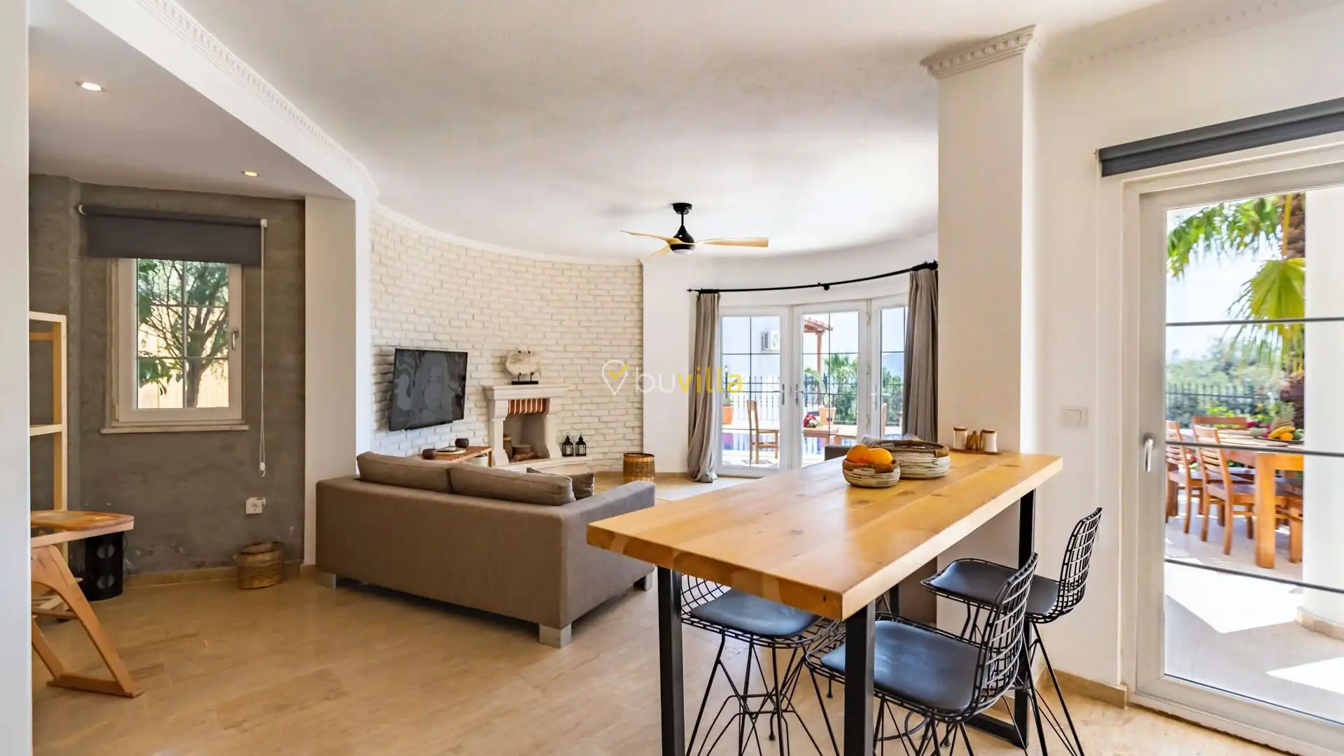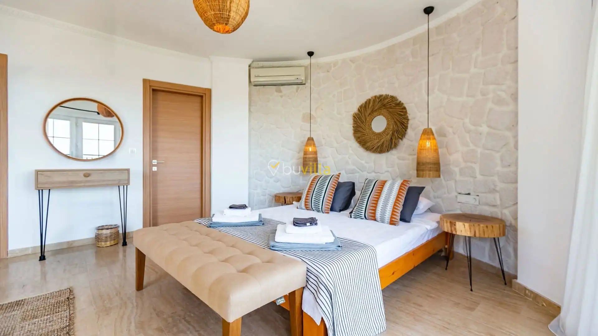 Deniz manzarası ile dikkat çeken Villa Santiago, modern mimarisi ve özenle tasarlanmış yaşam alanlarıyla misafirlerine rahat bir konaklama imkânı sağlar. Villamızda bulunan özel yüzme havuzu sayesinde gün boyu keyifli vakit geçirebilir, geniş terasında yer alan jakuzi ile tatilinize ekstra konfor katabilirsiniz.
