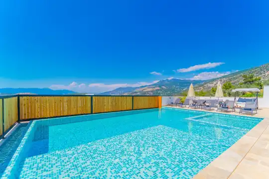 Villa Sea Pro, Kalkan'ın büyüleyici Akbel mevkiinde, doğanın huzur verici manzarasına hakim bir konumda yer almaktadır. Eşsiz doğa manzarası, tatilinize dinginlik katarken, modern ve konforlu tasarımı ile lüks bir konaklama deneyimi sunmaktadır.