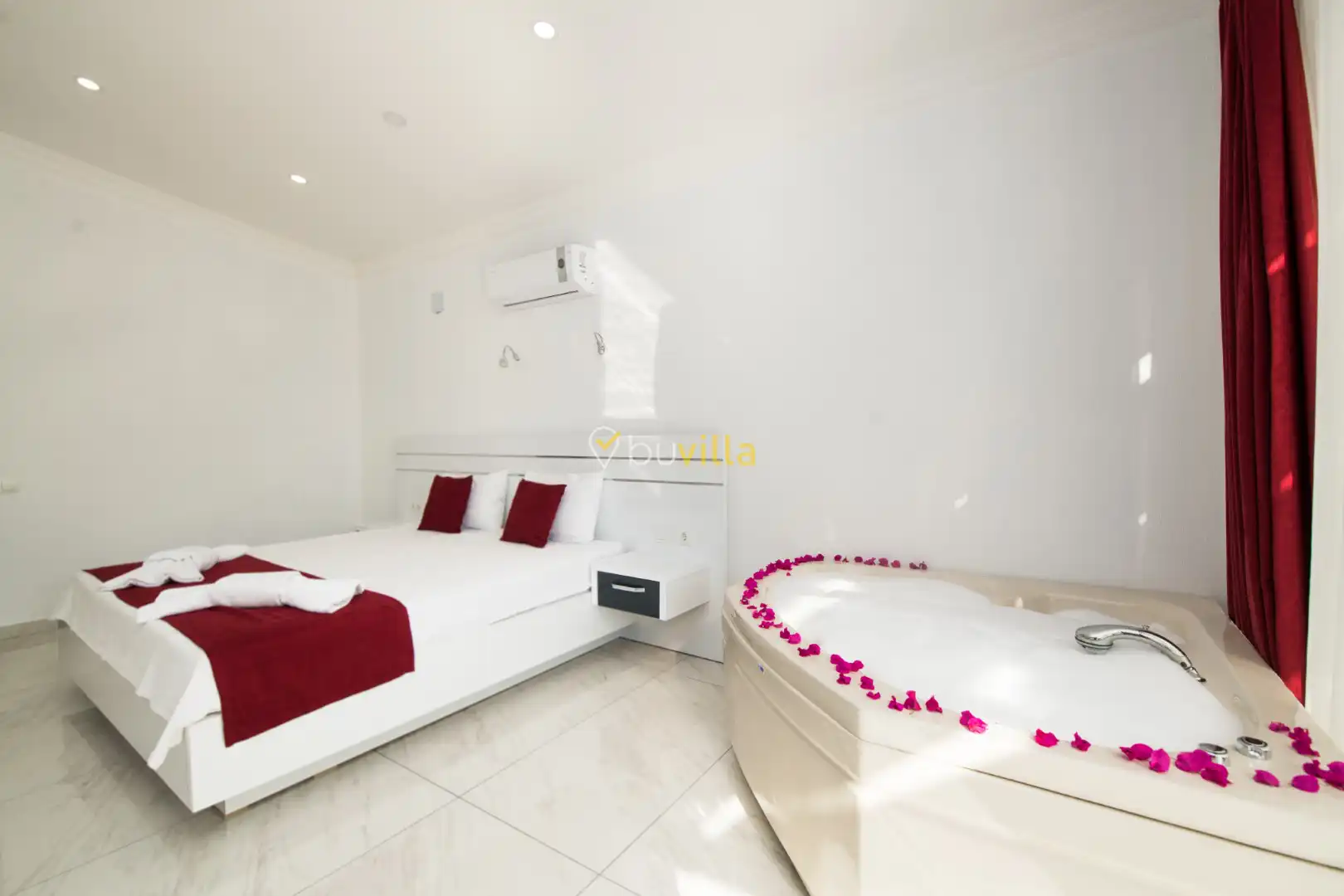 Modern ve ferah iç tasarımıyla, misafirlerine konforlu bir tatil atmosferi sunan Villa Seher’de, tam donanımlı mutfak, konforlu oturma alanları ve klimalı odalar yer almaktadır. Ana yatak odasında bulunan jakuzi, günün yorgunluğunu atmanız için özel olarak düşünülmüştür.