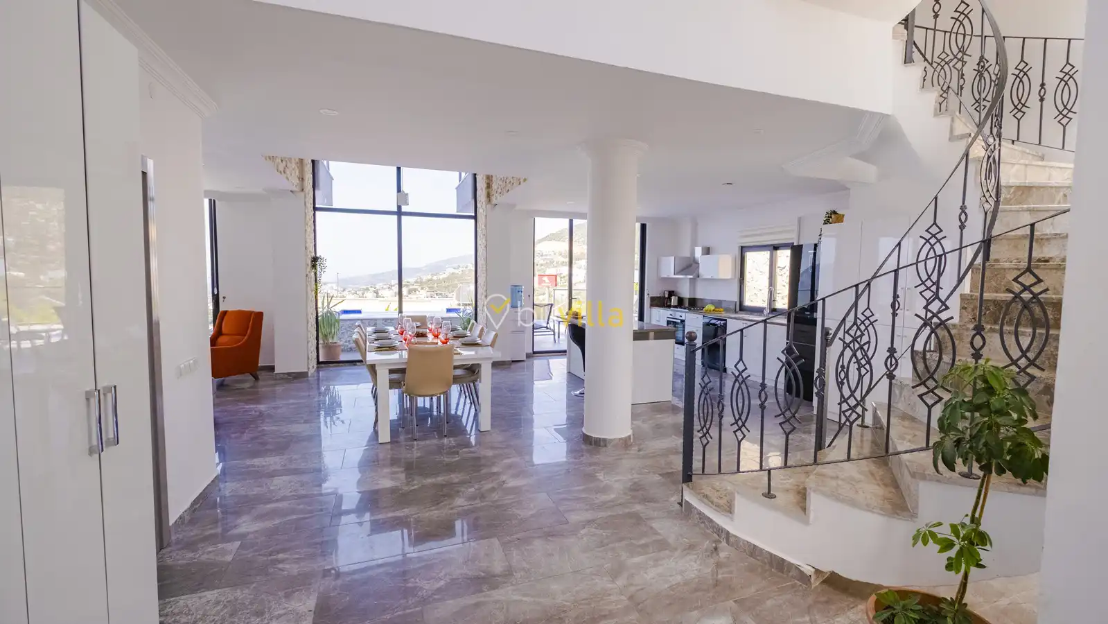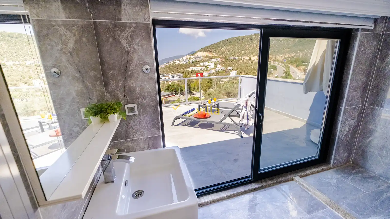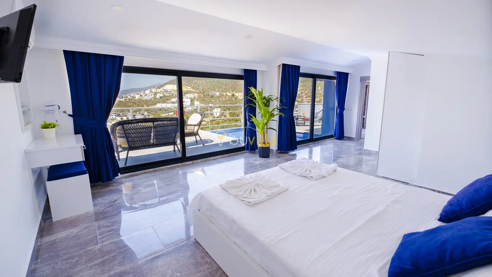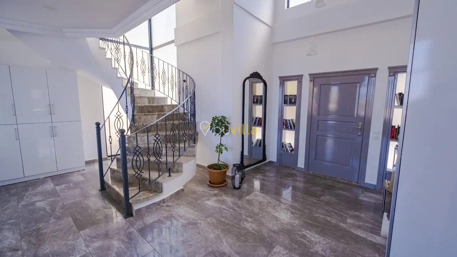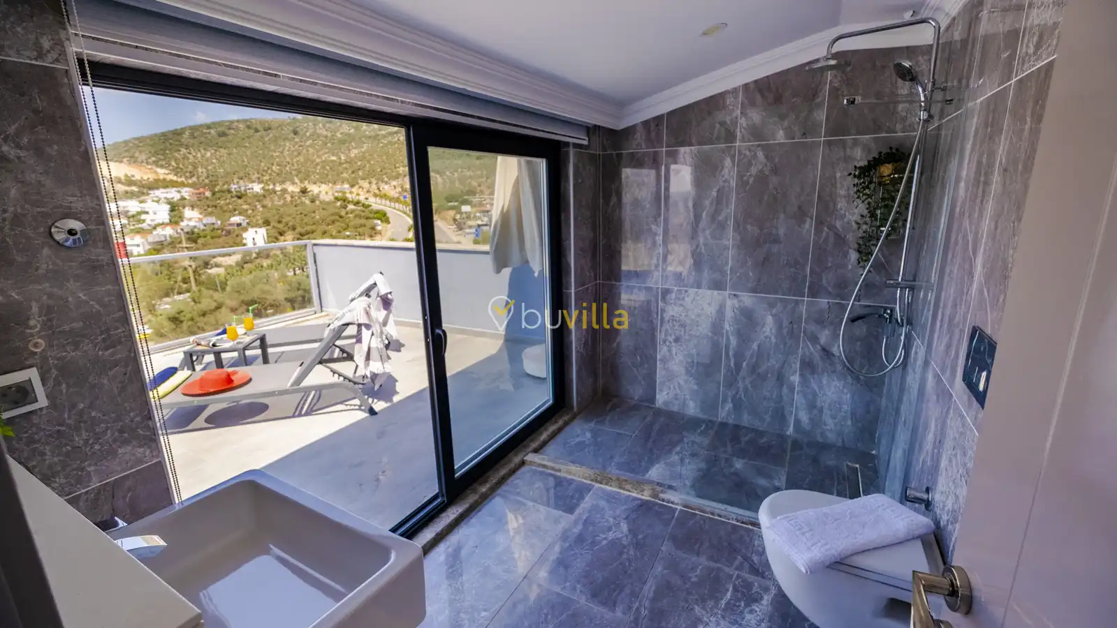 Villanın en dikkat çekici özelliklerinden biri, çatısından süzülen şelalenin zemin kata kadar akarak sonsuzluk havuzuyla buluşmasıdır. Bu özel tasarım, tatiliniz boyunca huzur verici bir atmosfer yaratır. Panoramik deniz manzarasına sahip geniş teras ve sonsuzluk havuzu, Akdeniz’in eşsiz güzelliklerini gözler önüne sererken, güneşlenme alanı ve barbekü köşesi keyifli vakit geçirmeniz için özenle dizayn edilmiştir.