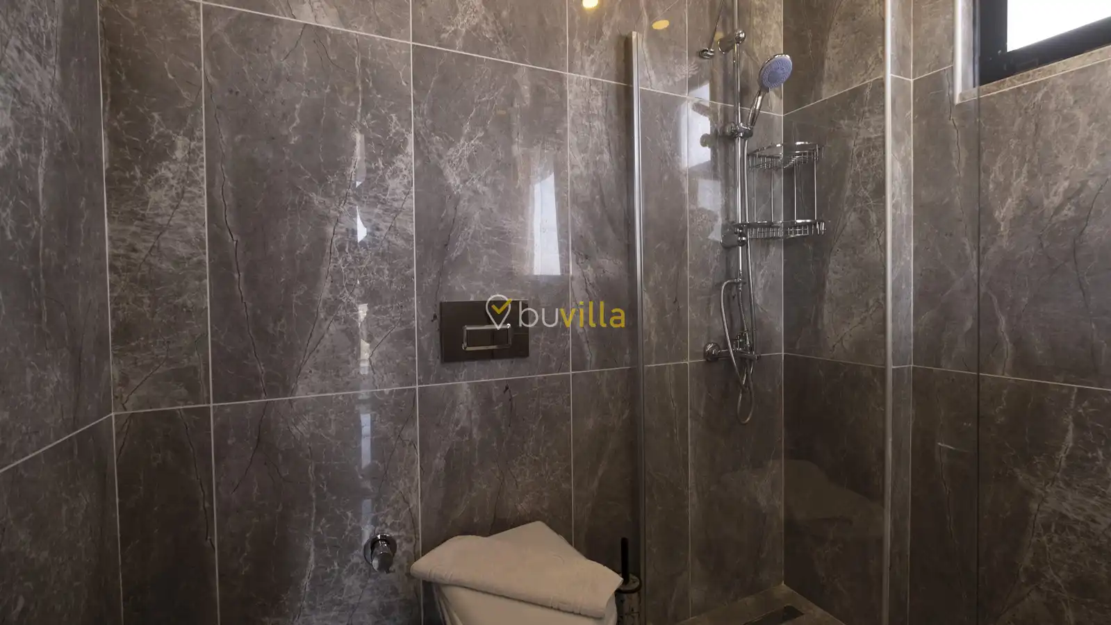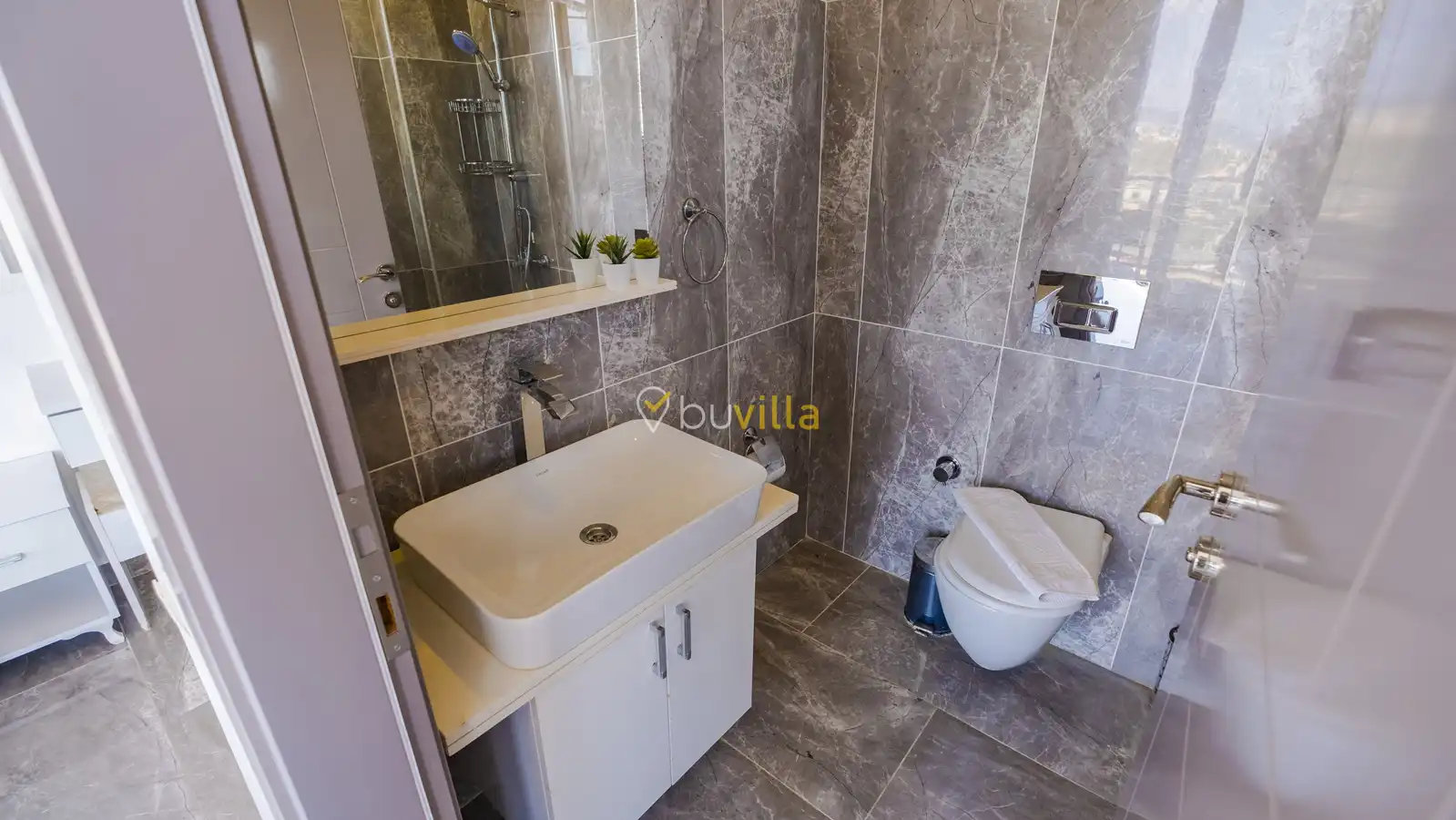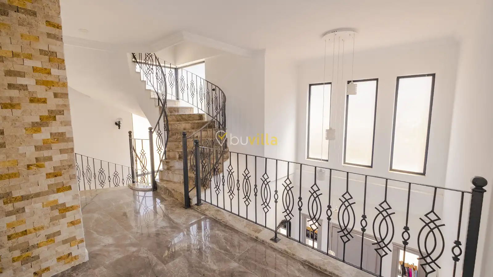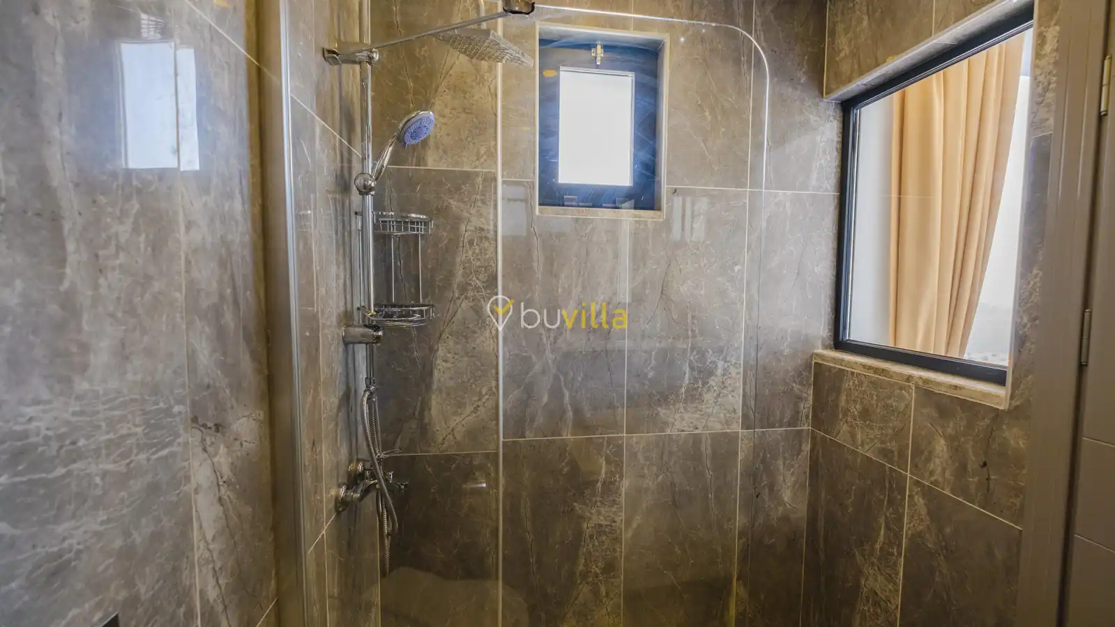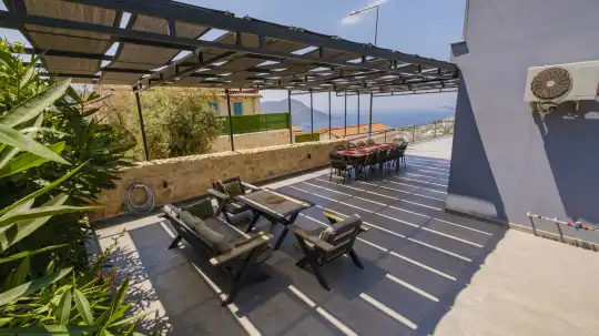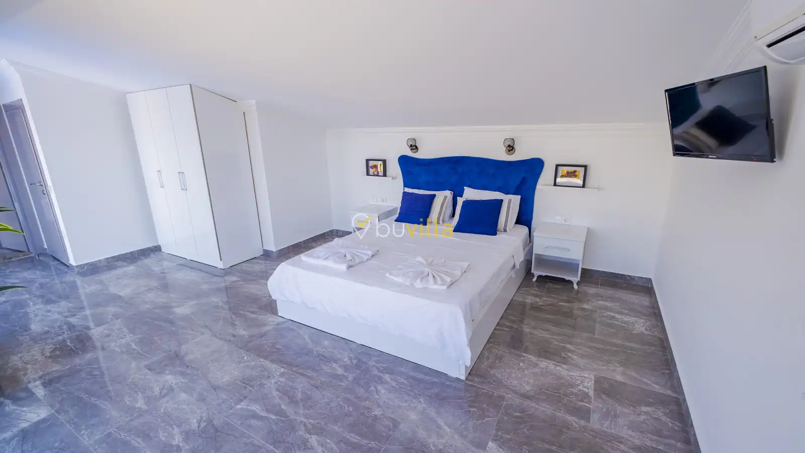 Villanın en dikkat çekici özelliklerinden biri, çatısından süzülen şelalenin zemin kata kadar akarak sonsuzluk havuzuyla buluşmasıdır. Bu özel tasarım, tatiliniz boyunca huzur verici bir atmosfer yaratır. Panoramik deniz manzarasına sahip geniş teras ve sonsuzluk havuzu, Akdeniz’in eşsiz güzelliklerini gözler önüne sererken, güneşlenme alanı ve barbekü köşesi keyifli vakit geçirmeniz için özenle dizayn edilmiştir.