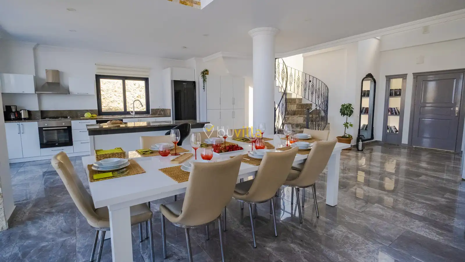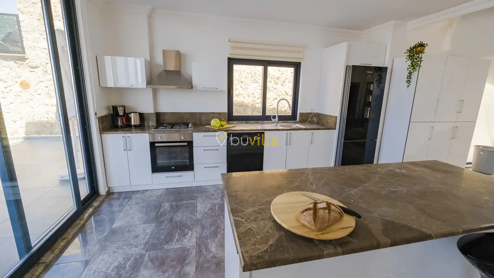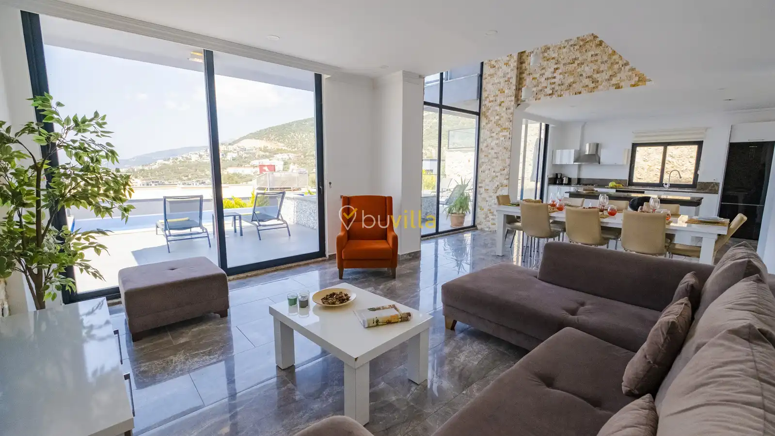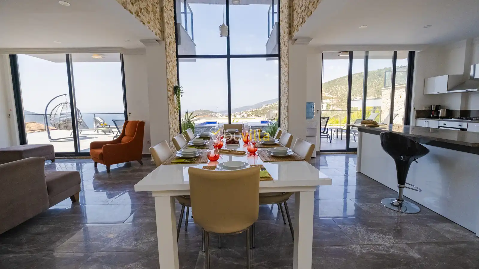 Villa Şelale 1, açık plan mutfak ve geniş oturma alanıyla ferah bir yaşam alanı sunar. Büyük pencereler sayesinde gün boyu doğal ışık alan villada, konforunuz için her detay düşünülmüştür. Çatı katında yer alan özel havuz ve manzaralı teras, misafirlerine benzersiz bir tatil deneyimi yaşatır.