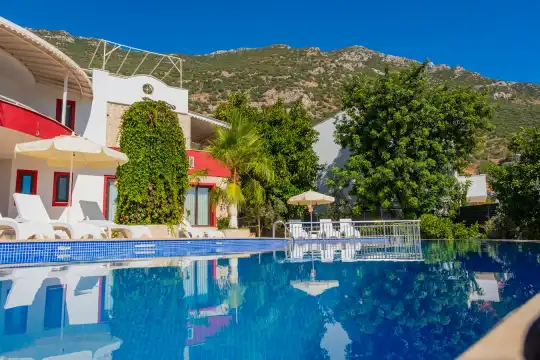 Geniş havuz terasına sahip olan Villa Şelale 3’te çocuk havuzu da bulunmaktadır. Konumu itibarıyla merkeze ve denize yakın bir noktada yer alarak misafirlerine hem huzurlu bir atmosferde tatil yapma imkânı hem de Kalkan’ın sunduğu sosyal ve doğal güzelliklere kolay ulaşım avantajı sağlamaktadır.