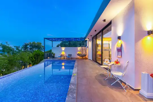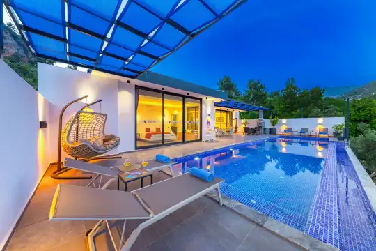Kalkan İslamlar bölgesinde yer alan villamız 2 yatak odalı 4 kişi kapasitelidir. Villamız doğa içerisinde yer almakta olup huzurlu bir tatil için ideal seçeneklerimiz arasında yer almaktadır. Havuz bahçe katı korunaklı olan villamızın Amerikan mutfağında ihtiyaç duyabileceğiniz ekipmanlar mevcut olup konforlu mobilyalarla dizayn edilmiş salonu hizmetinizdedir.