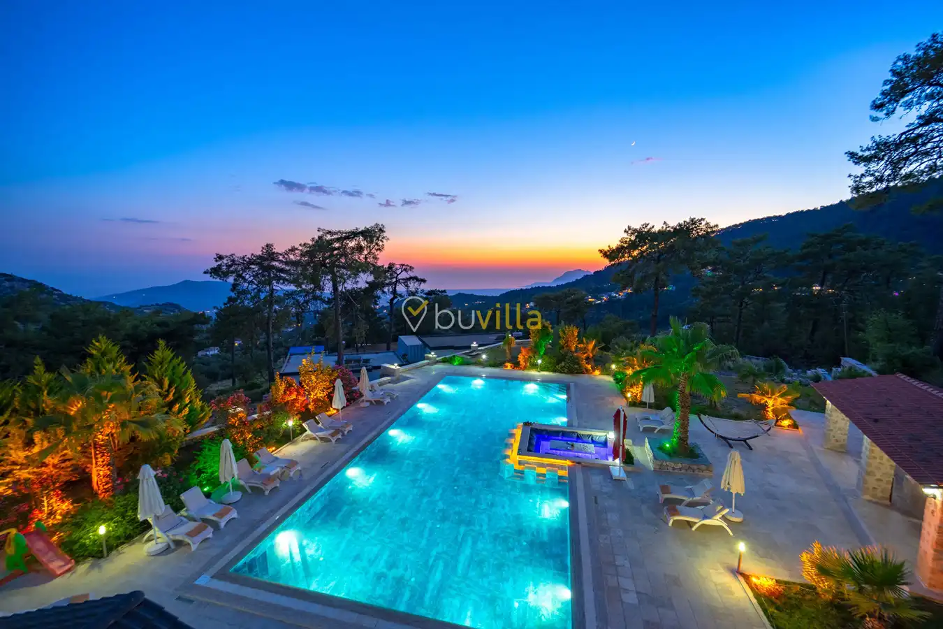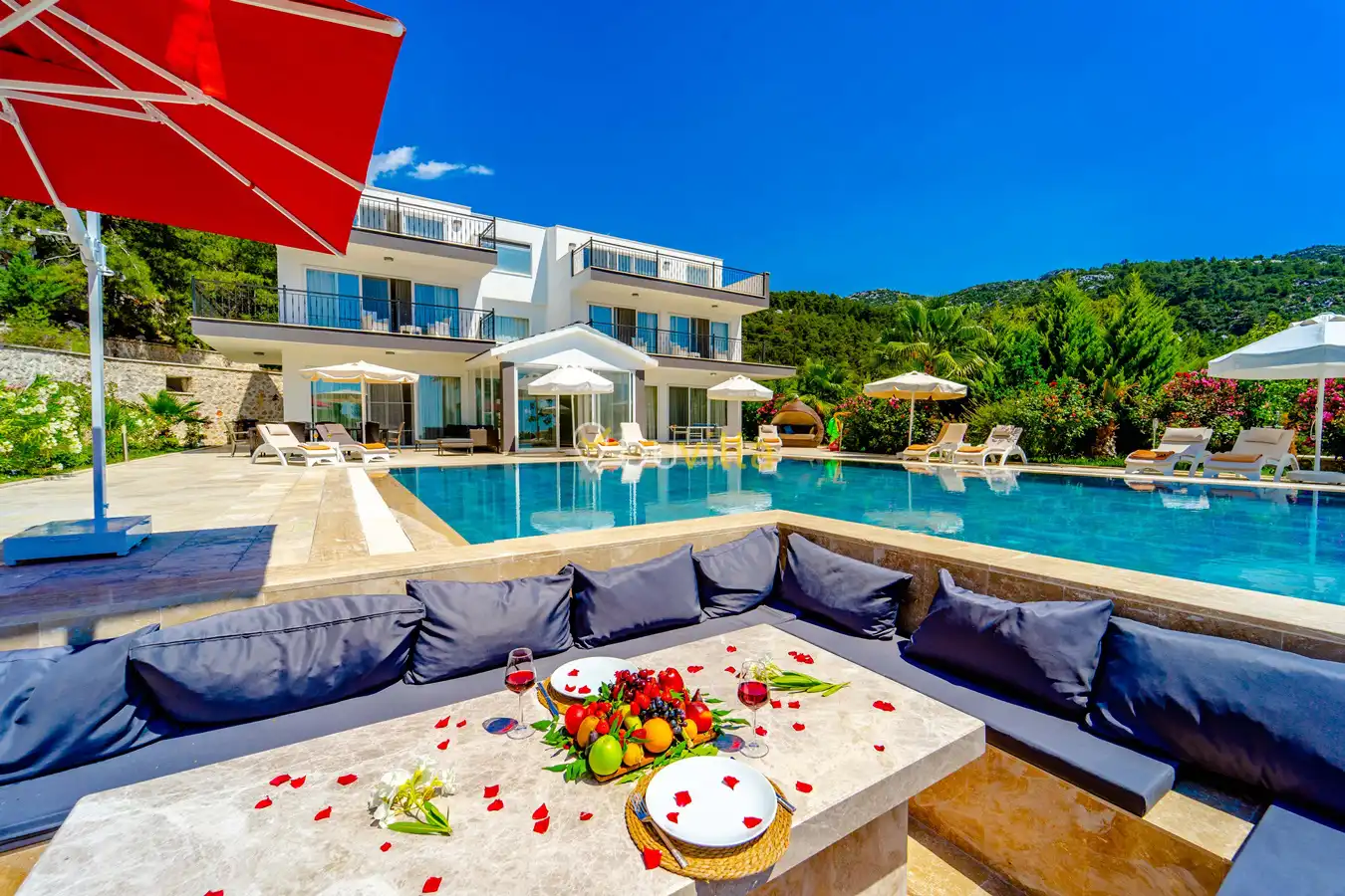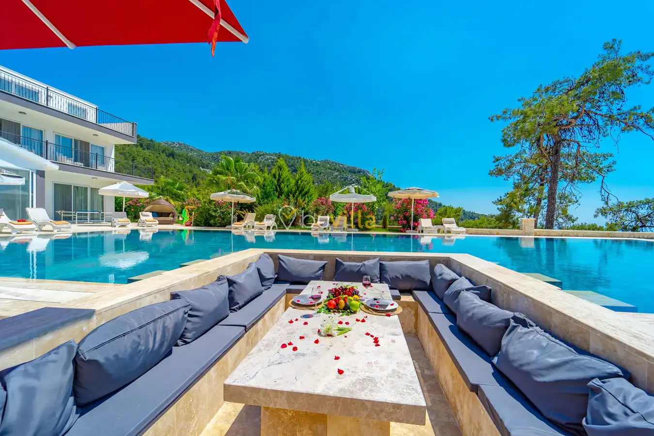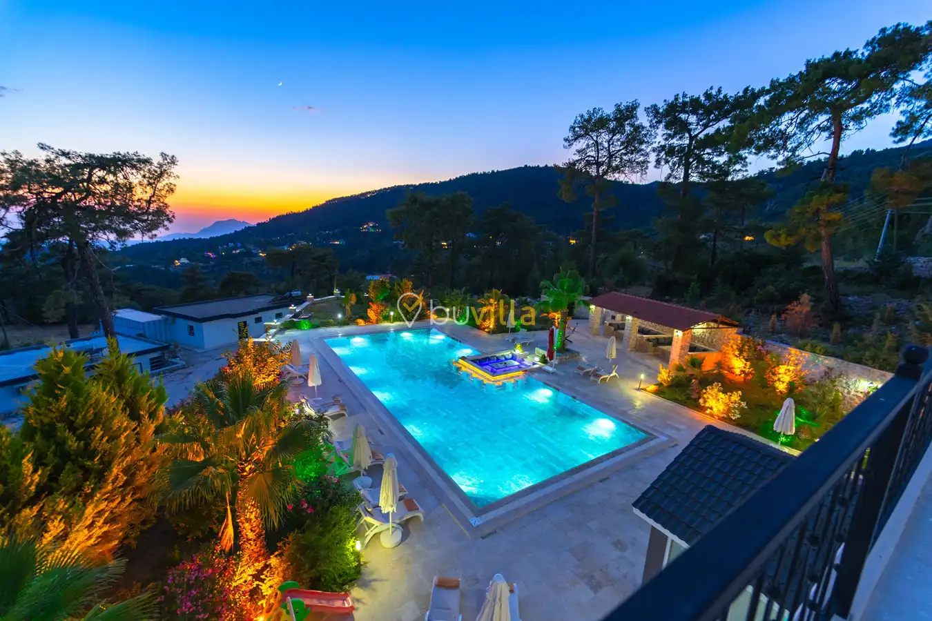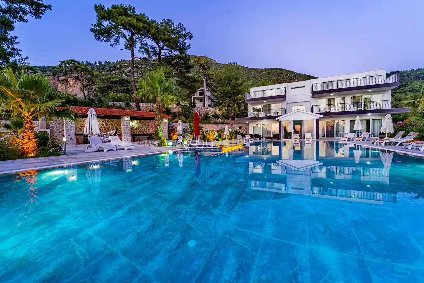 Kalkan Islamlar mevkiinde doga ile iç içe konumlandirilmis genis havuz bahçe kati ile dikkatleri çeken lüks bir villadir.Kiralik villamiz 5 yatak odali olup 10 kişi konaklama saglamaktadir. Lüks dizayni ile göz dolduran villamizin tam donanimli Amerikan mutfaginda ihtiyaç duyabileceginiz tüm ekipmanlar mevcuttur. Villamizin kapali havuzu bulunmaktadir ve ayni zaman da kapali havuz çocuk havuzu olarak kullanilmaktadir.Villamizda keyifli vakit geçirmeniz adina çocuk oyun alani ve masa tesnisi bulunmaktadir.
