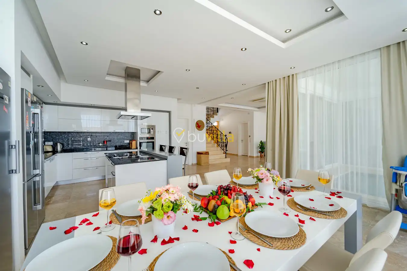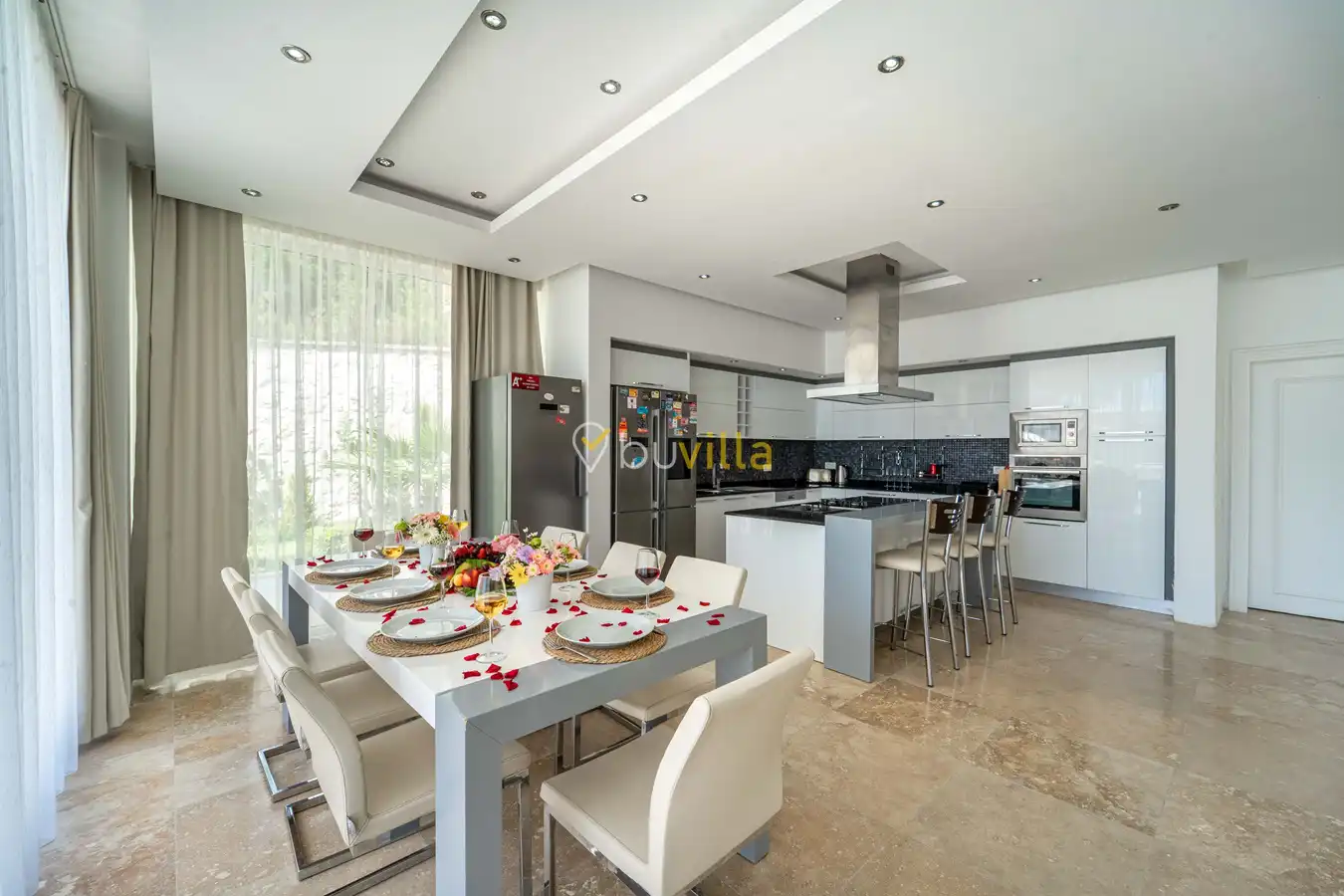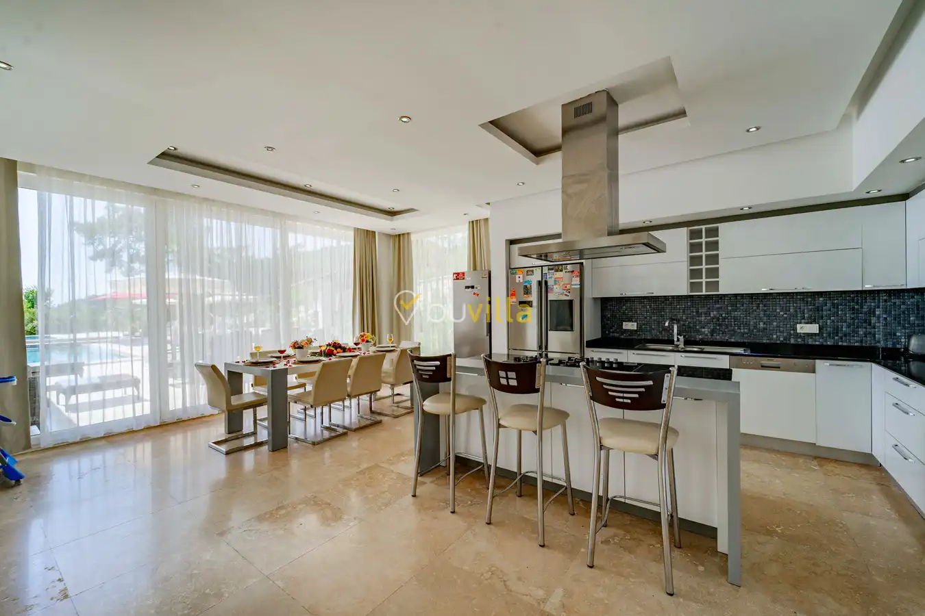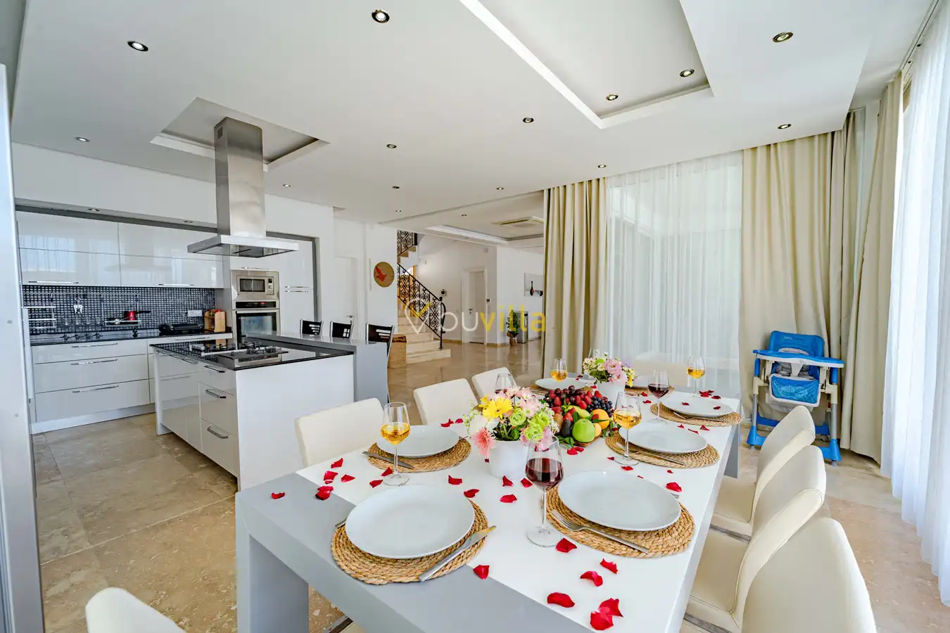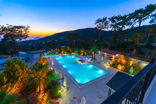 Kalkan Islamlar mevkiinde doga ile iç içe konumlandirilmis genis havuz bahçe kati ile dikkatleri çeken lüks bir villadir.Kiralik villamiz 5 yatak odali olup 10 kişi konaklama saglamaktadir. Lüks dizayni ile göz dolduran villamizin tam donanimli Amerikan mutfaginda ihtiyaç duyabileceginiz tüm ekipmanlar mevcuttur. Villamizin kapali havuzu bulunmaktadir ve ayni zaman da kapali havuz çocuk havuzu olarak kullanilmaktadir.Villamizda keyifli vakit geçirmeniz adina çocuk oyun alani ve masa tesnisi bulunmaktadir.
