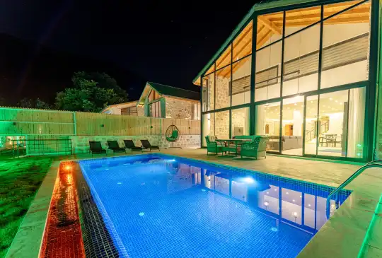 Villa Sirius, Kalkan'ın huzurlu Bezirgan mevkiisinde yer alan lüks bir tatil villasıdır. 2 yatak odası ve 4 kişilik konaklama kapasitesi ile, balayı çiftleri ve küçük aileler için mükemmel bir tercih sunmaktadır. Cıvıl cıvıl bir tasarımla dizayn edilmiş olan taş yapım villa, konforlu ve şık bir tatil deneyimi vaat eder. Her iki yatak odasında da jakuzili birer banyo bulunması, tatilinize ekstra bir rahatlık ve lüks katmaktadır. Sizi, unutulmaz bir tatil için Villa Sirius'a davet ediyoruz!