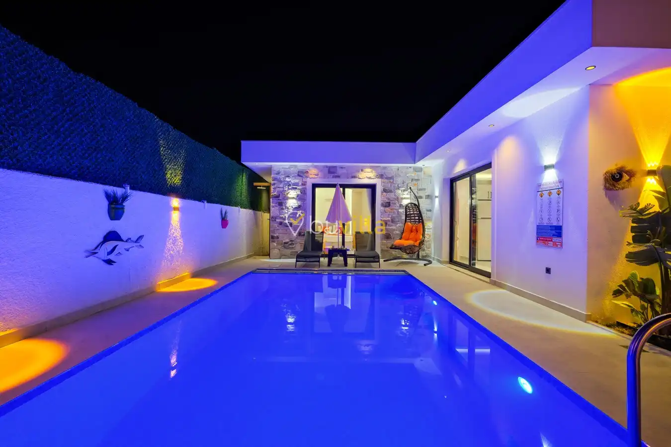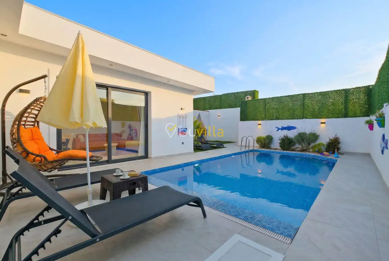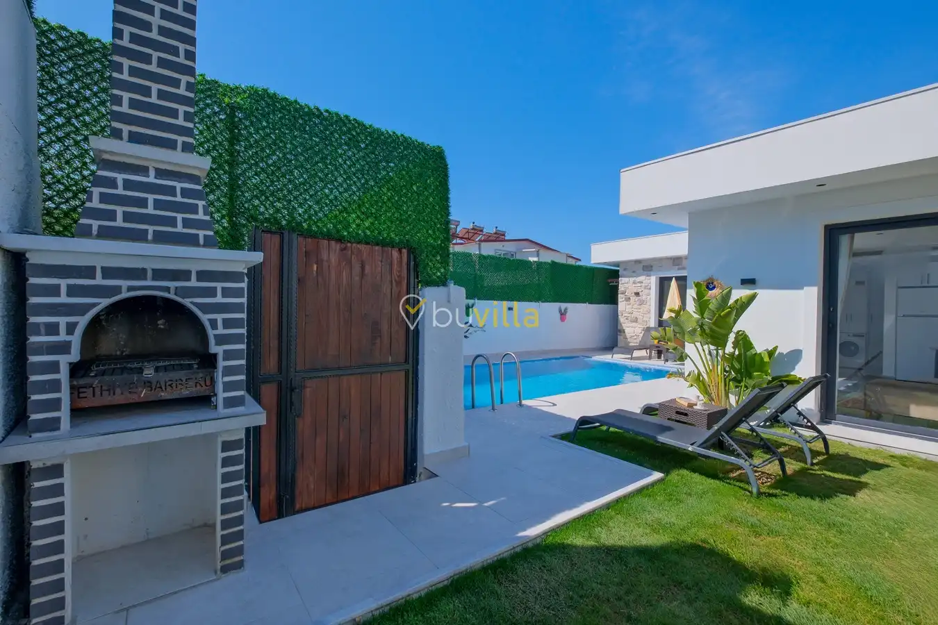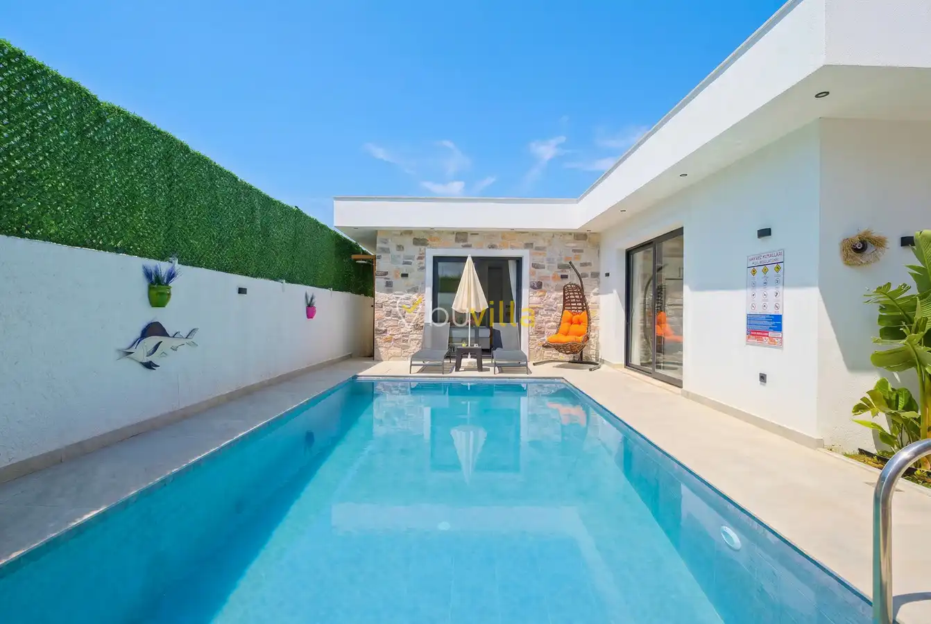 Fethiye / Karaçulha mevkiinde konumlanan bu konfor odaklı villa, 2 yatak odası ve 4 kişilik konaklama kapasitesiyle çekirdek aileler ve balayı çiftleri için ideal bir tatil seçeneği sunar. Dışarıdan görünmeyen özel havuz alanı, misafirlerine yüksek düzeyde mahremiyet sağlarken; jakuzili süit yatak odası ve modern tasarıma sahip yaşam alanları konforu üst seviyeye taşır.