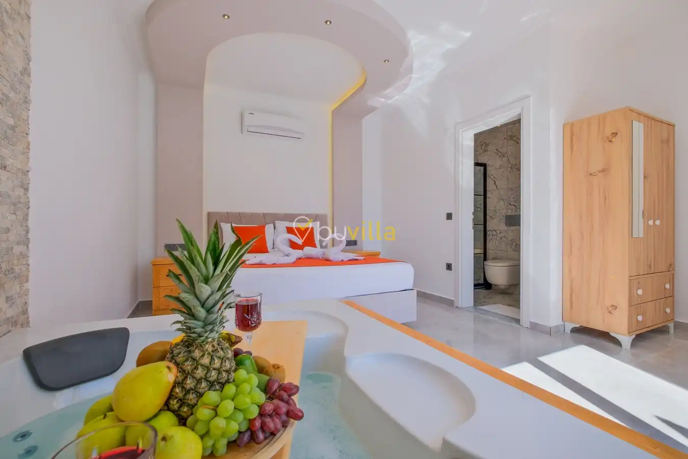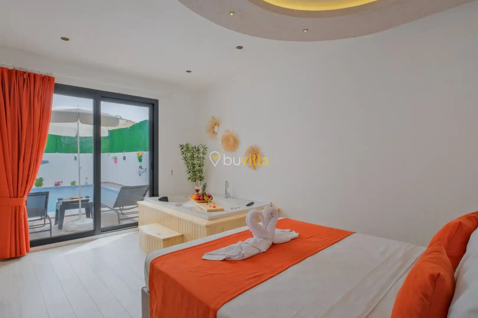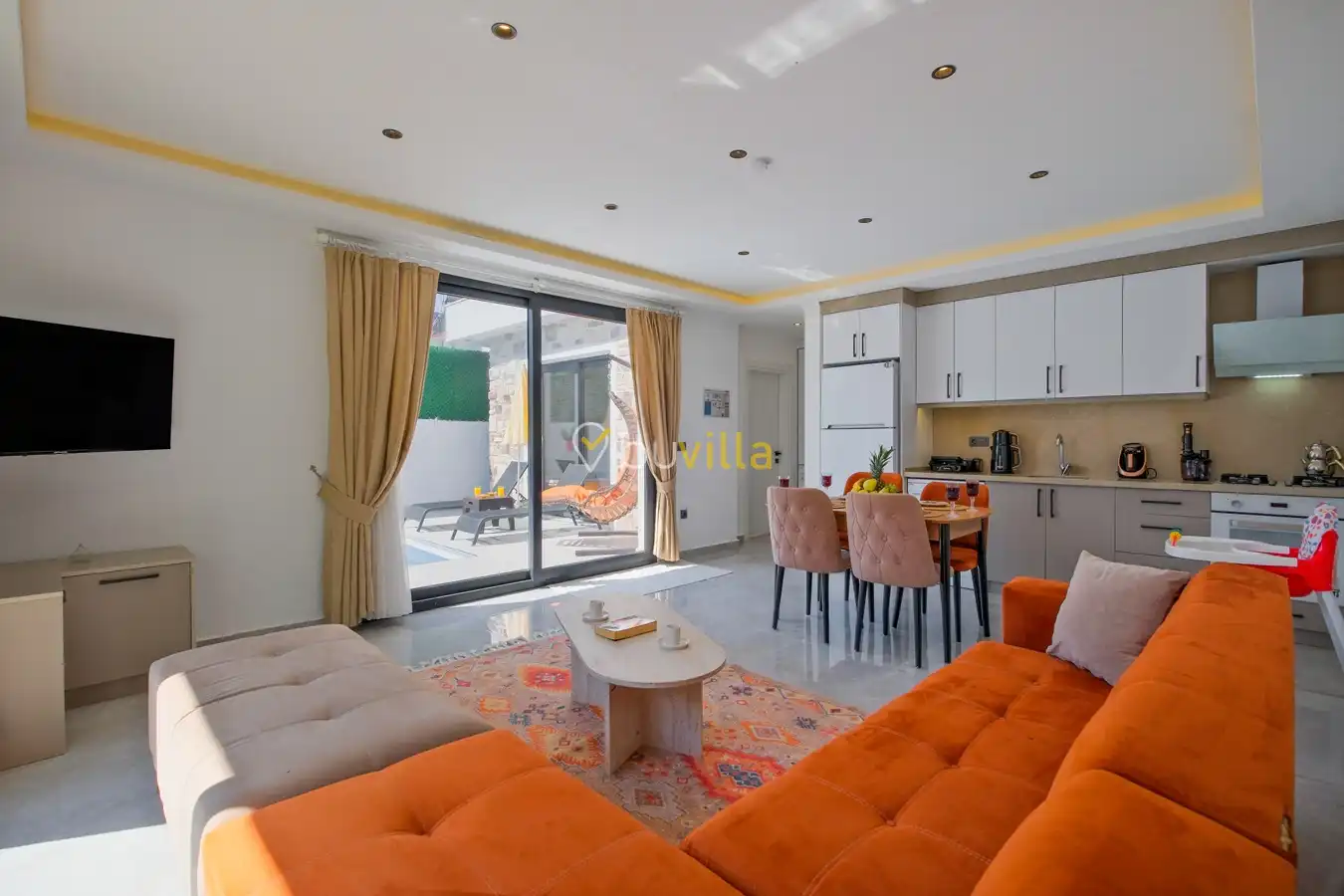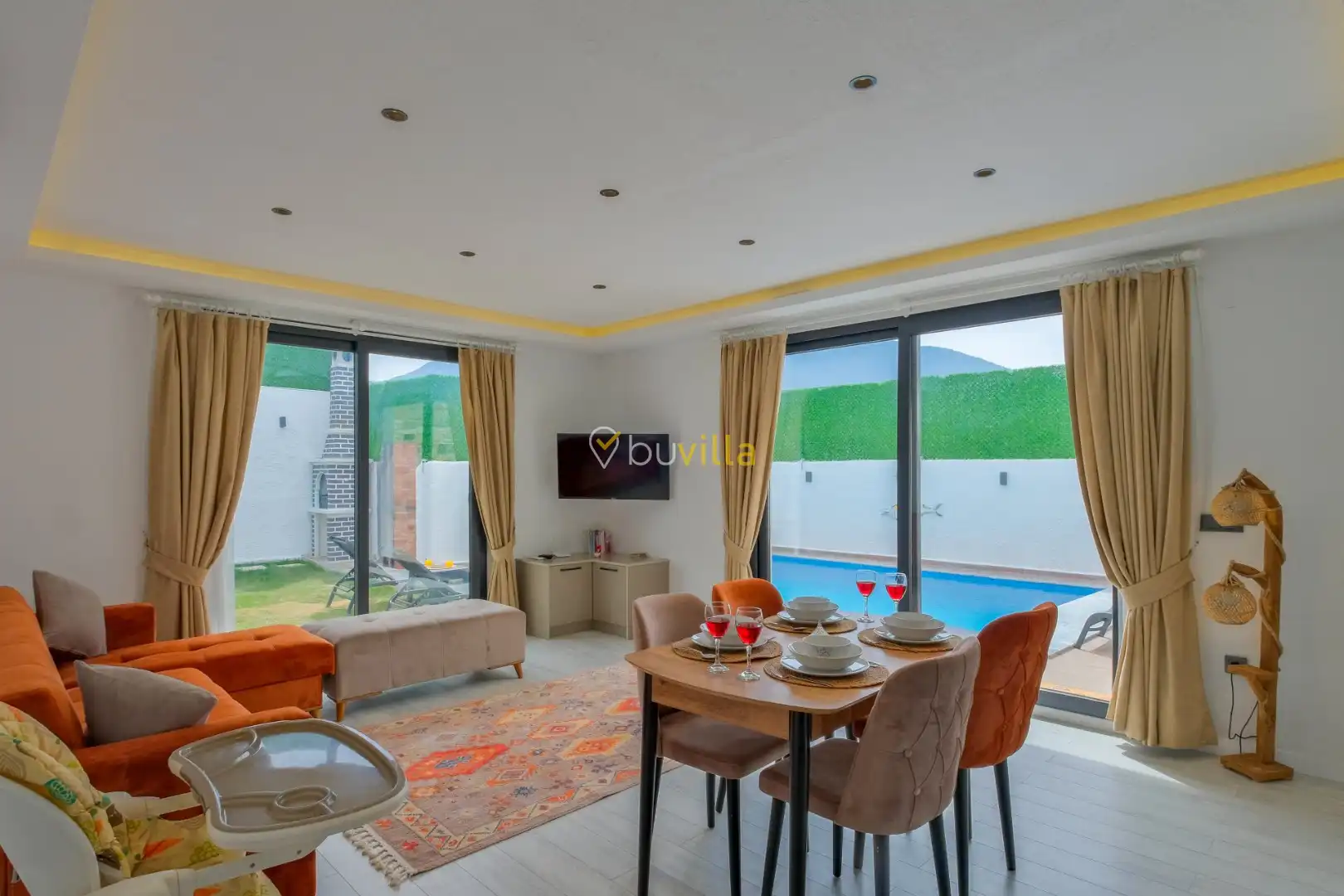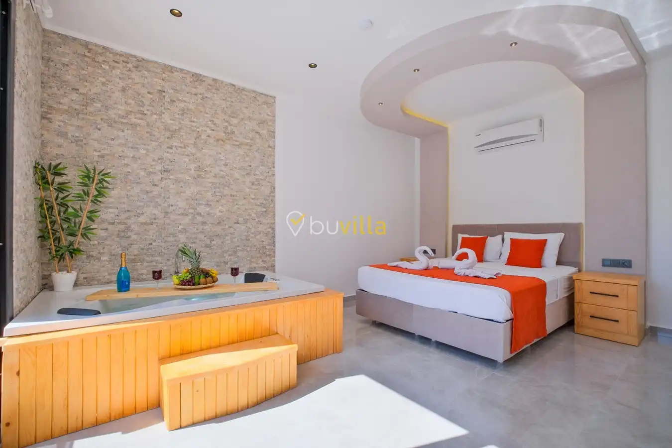 Fethiye / Karaçulha mevkiinde konumlanan bu konfor odaklı villa, 2 yatak odası ve 4 kişilik konaklama kapasitesiyle çekirdek aileler ve balayı çiftleri için ideal bir tatil seçeneği sunar. Dışarıdan görünmeyen özel havuz alanı, misafirlerine yüksek düzeyde mahremiyet sağlarken; jakuzili süit yatak odası ve modern tasarıma sahip yaşam alanları konforu üst seviyeye taşır.