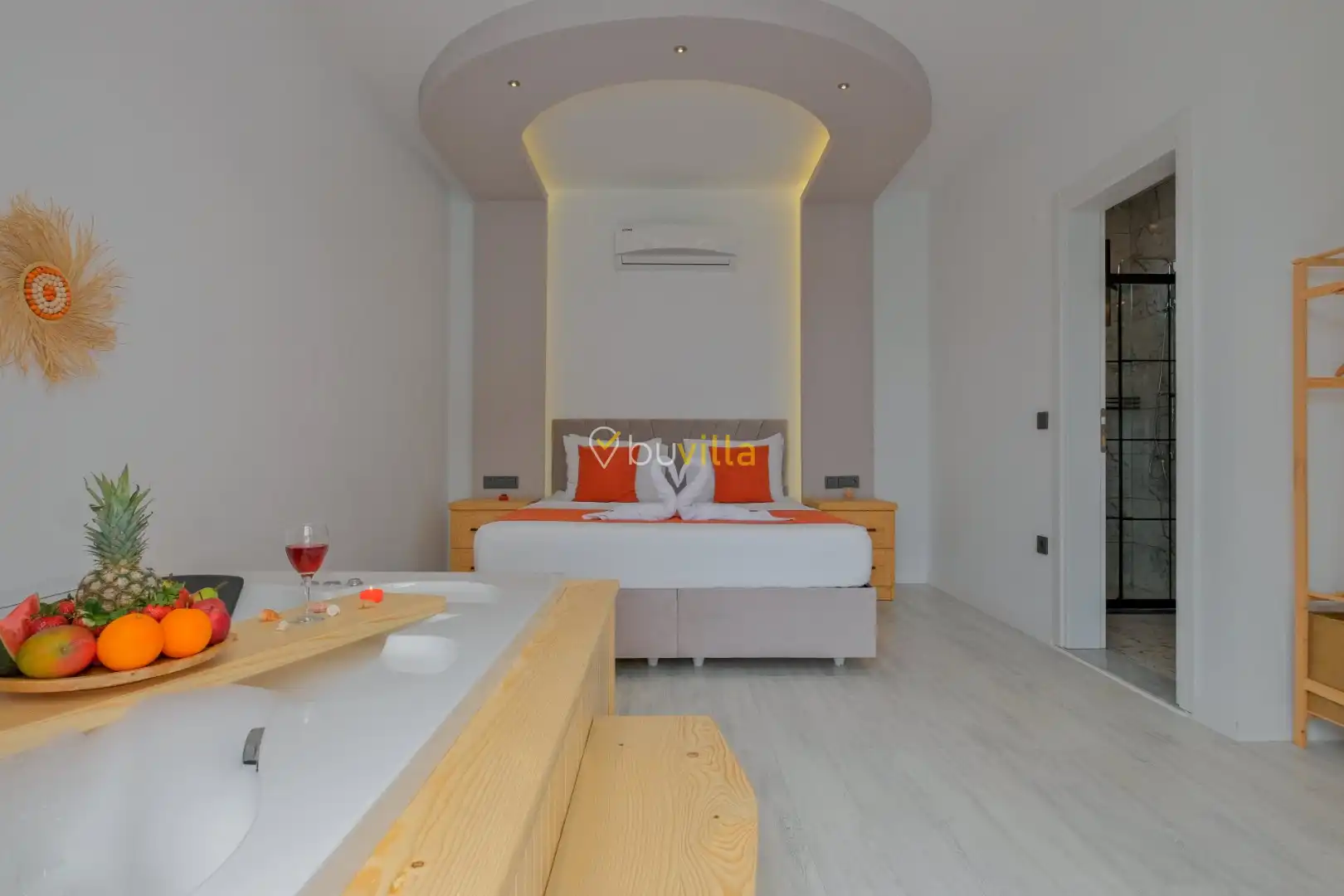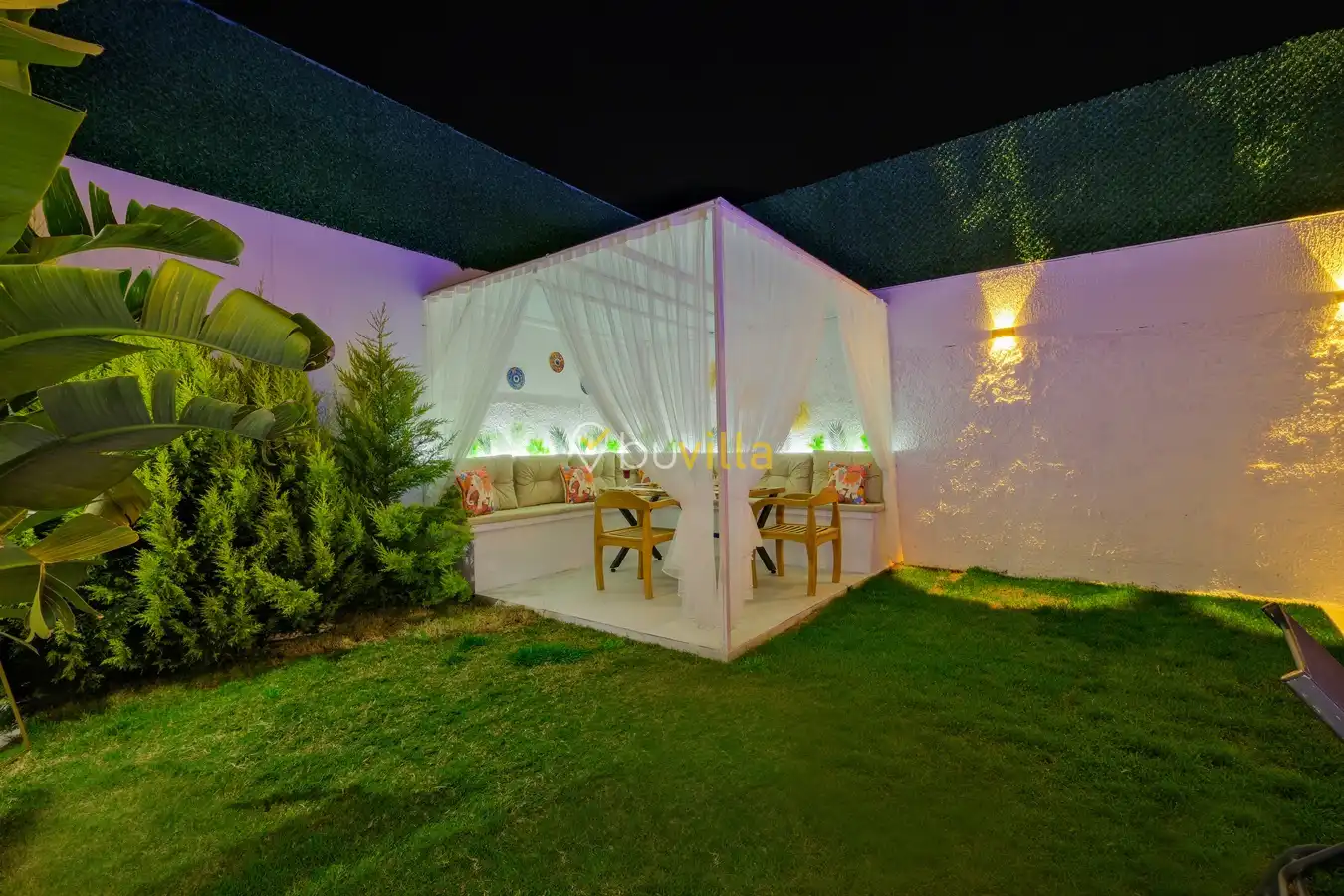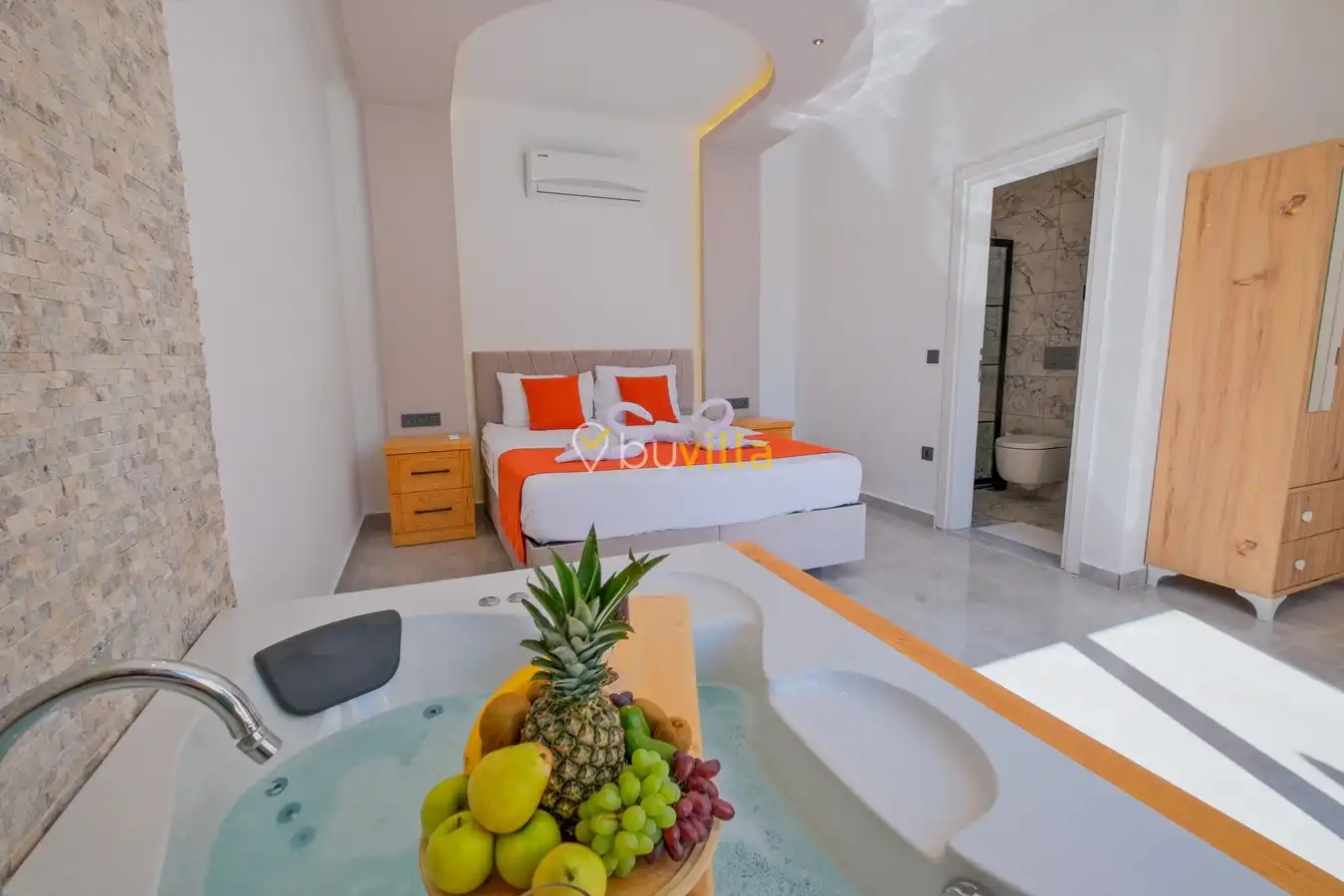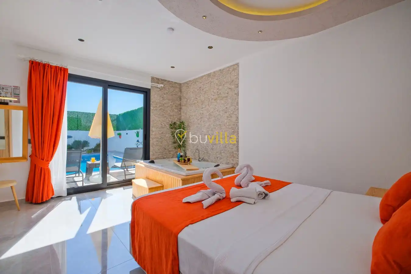 Fethiye / Karaçulha mevkiinde konumlanan bu konfor odaklı villa, 2 yatak odası ve 4 kişilik konaklama kapasitesiyle çekirdek aileler ve balayı çiftleri için ideal bir tatil seçeneği sunar. Dışarıdan görünmeyen özel havuz alanı, misafirlerine yüksek düzeyde mahremiyet sağlarken; jakuzili süit yatak odası ve modern tasarıma sahip yaşam alanları konforu üst seviyeye taşır.