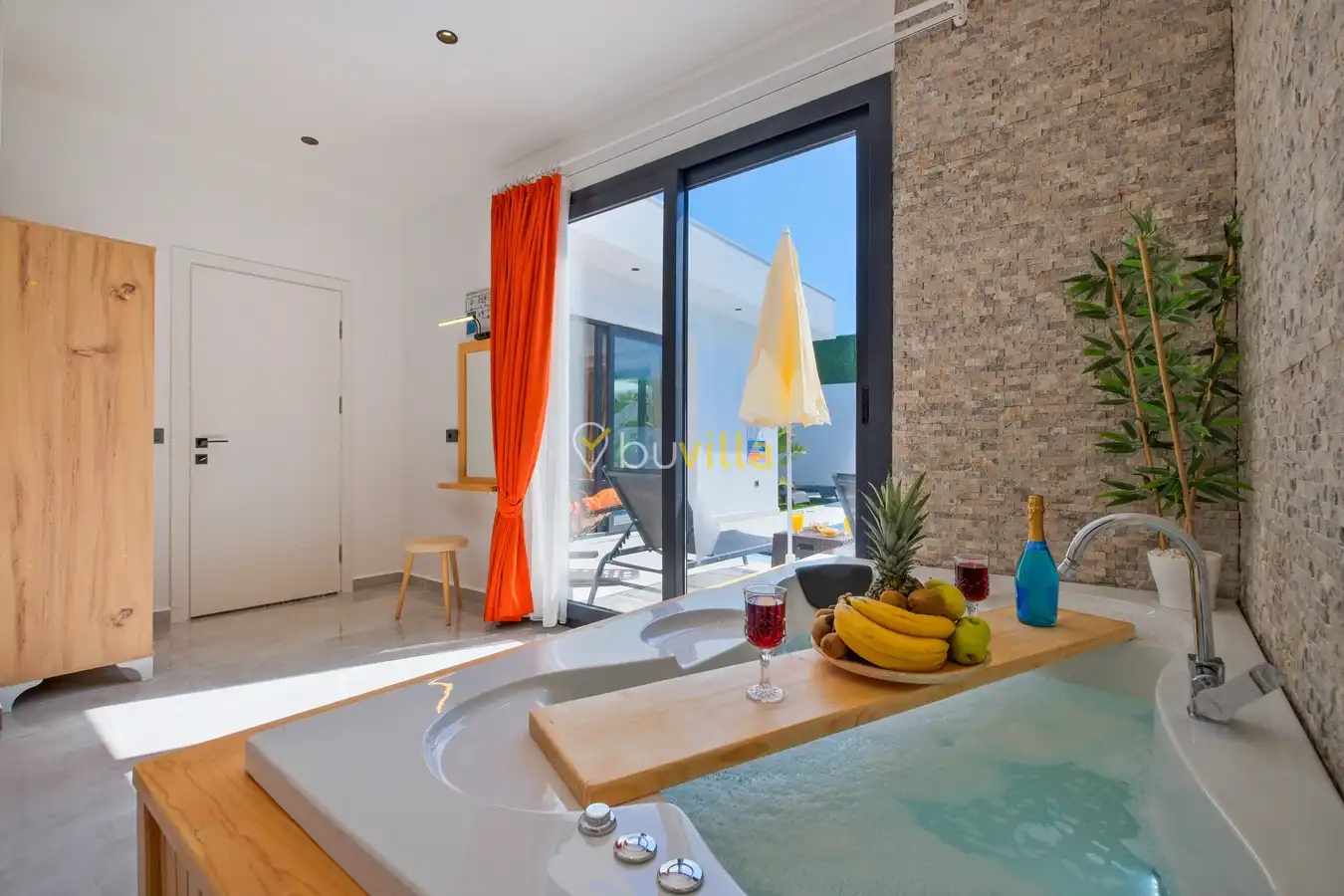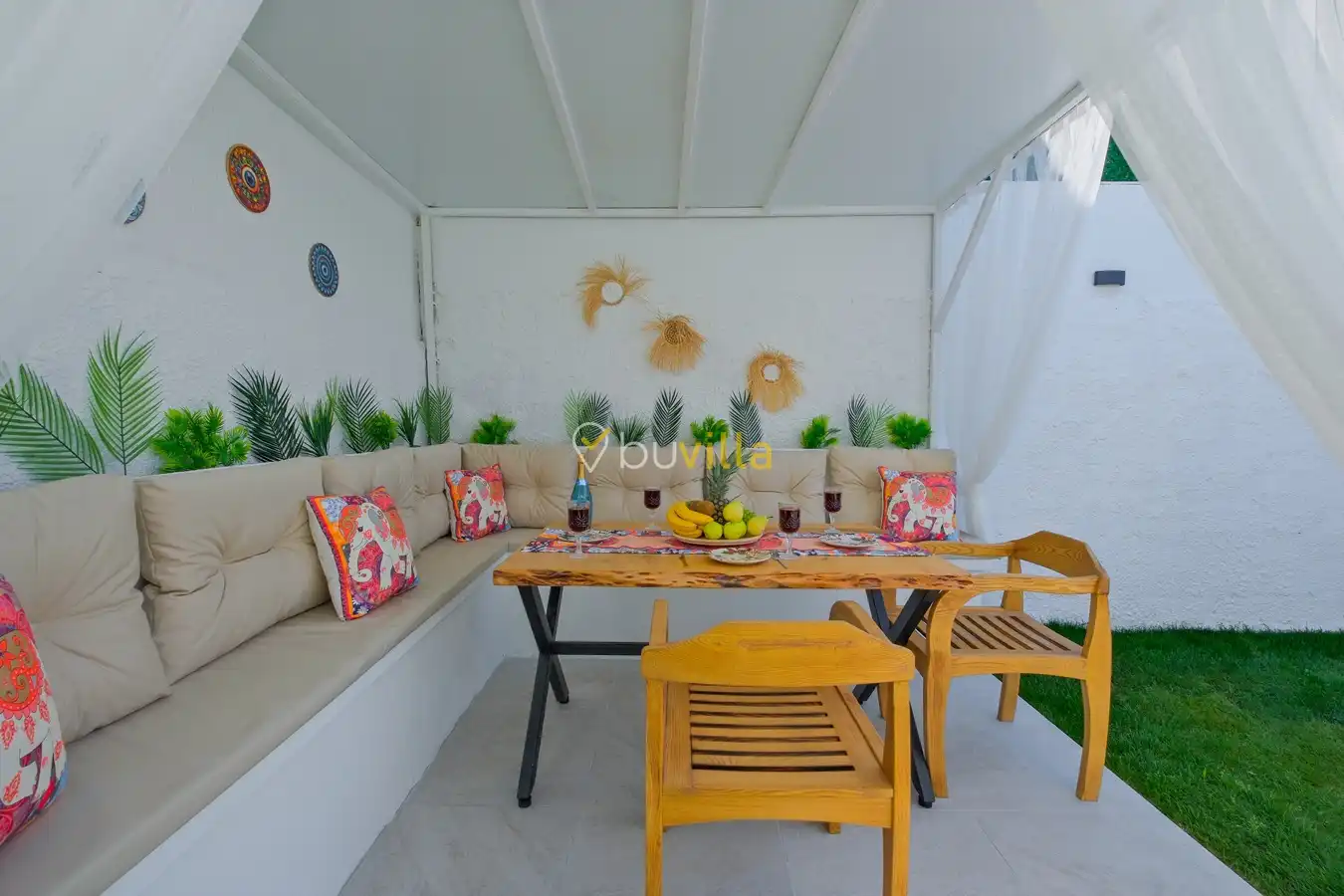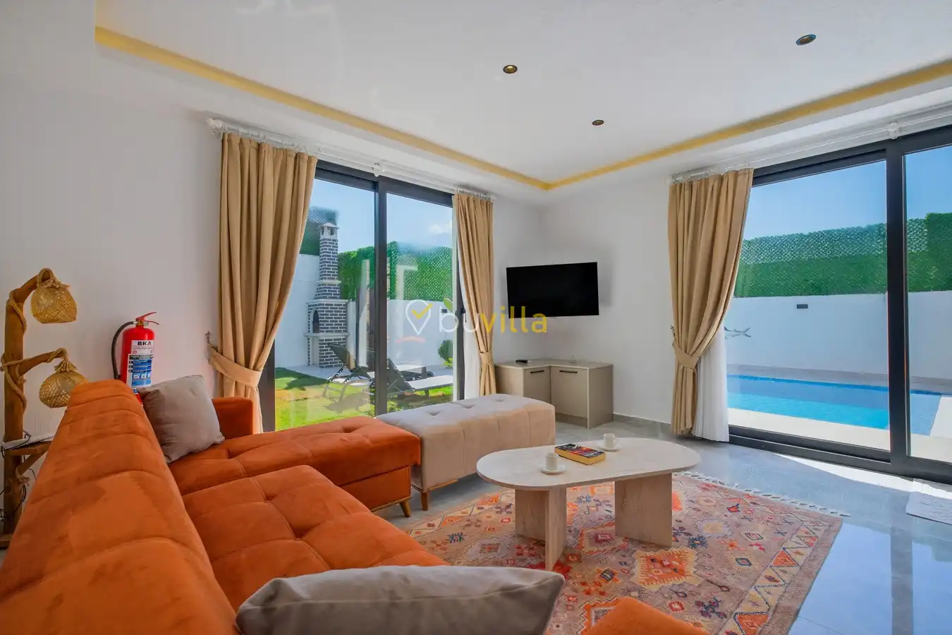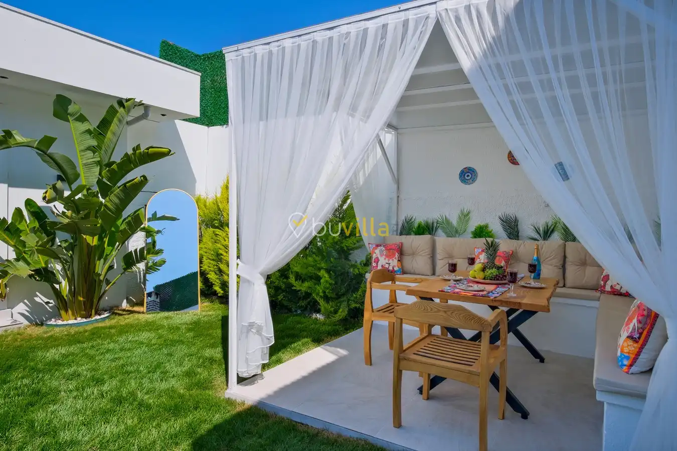 Fethiye / Karaçulha mevkiinde konumlanan bu konfor odaklı villa, 2 yatak odası ve 4 kişilik konaklama kapasitesiyle çekirdek aileler ve balayı çiftleri için ideal bir tatil seçeneği sunar. Dışarıdan görünmeyen özel havuz alanı, misafirlerine yüksek düzeyde mahremiyet sağlarken; jakuzili süit yatak odası ve modern tasarıma sahip yaşam alanları konforu üst seviyeye taşır.