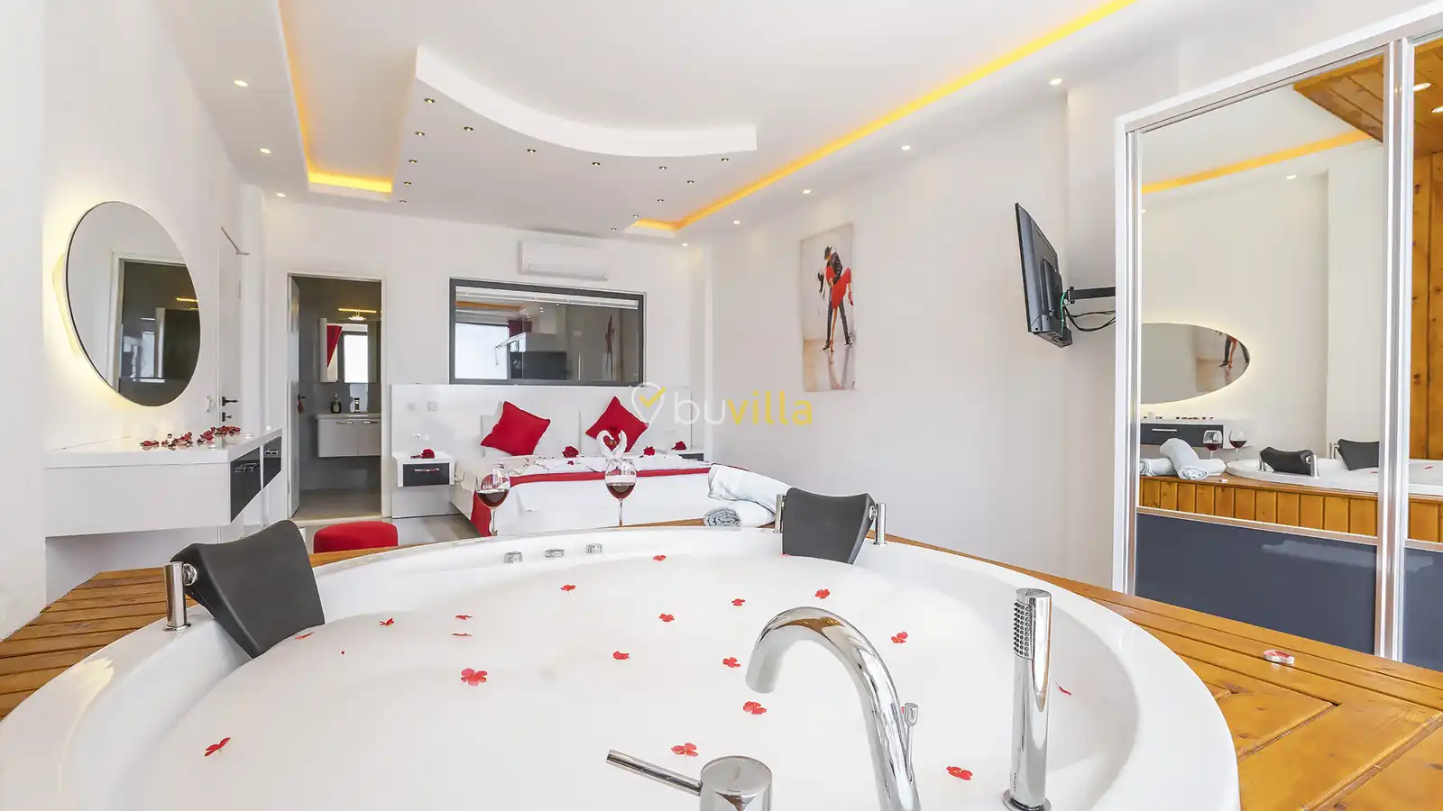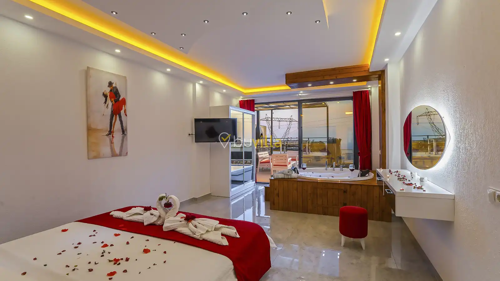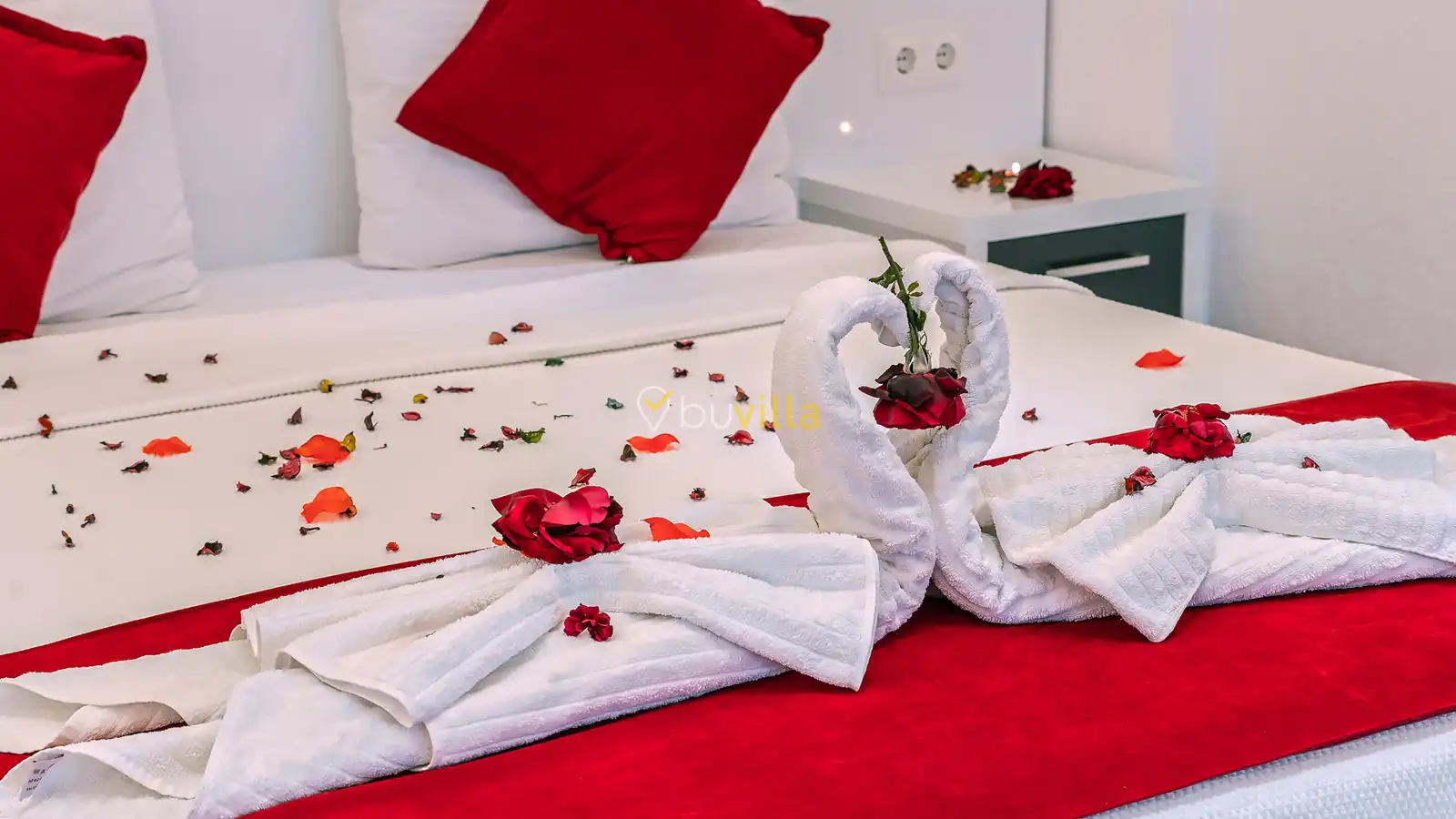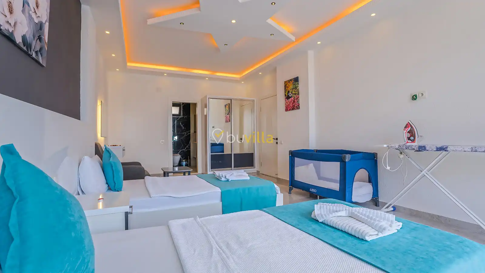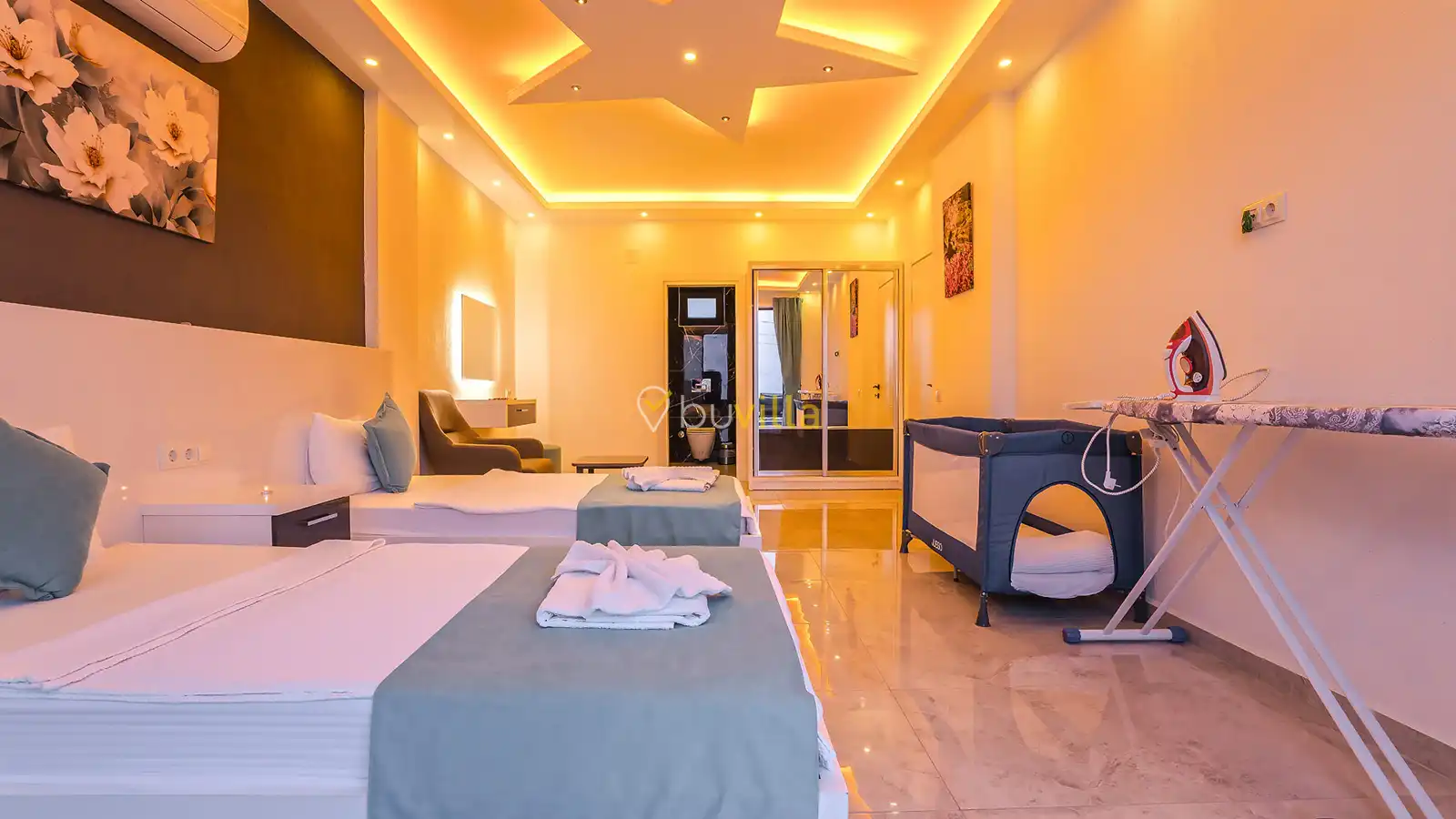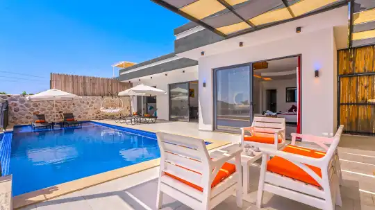 4 kişilik konaklama kapasitesine sahip olan villamız; 2 yatak odası, 3 yatak ve 2 banyo ile konforlu ve kullanışlı bir yaşam alanı sunmaktadır. Modern, estetik ve zarif detaylarla dekore edilen iç mekânı sayesinde, tatiliniz boyunca ev konforunu aratmayacak bir deneyim yaşayabilirsiniz.
