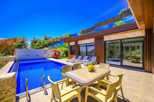 Kalkan İslamlar Köyü’nde konumlanan Villa SR 3, şehrin gürültüsünden uzak, yemyeşil doğa içerisinde sessiz, sakin ve huzurlu bir tatil arayan misafirler için ideal bir seçenektir. Balayı çiftleri ve muhafazakâr aileler için uygun olan villamız, konforlu bir konaklama deneyimi sunacak şekilde özenle hazırlanmıştır.