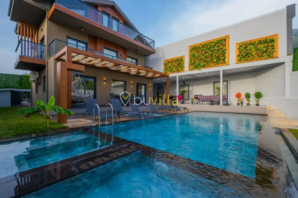 Villamızın özel havuz terasında jakuzi ve çocuk havuzu bulunmakta olup, misafirlerimizin keyifli vakit geçirmesi için özenle tasarlanmıştır.