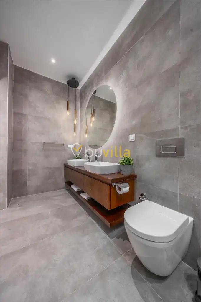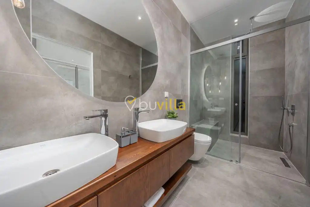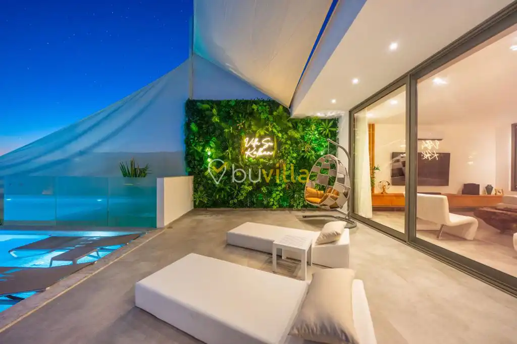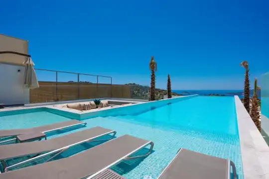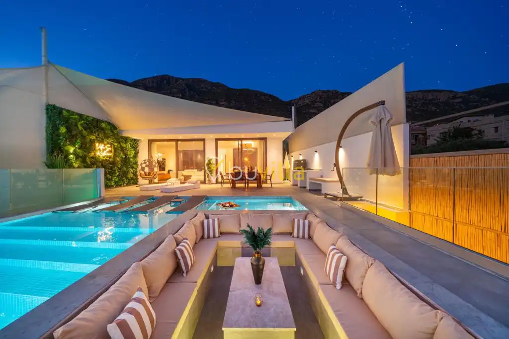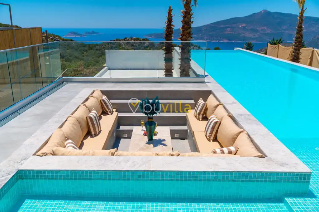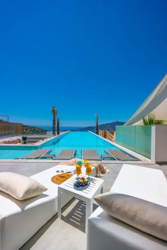 Villanın büyüleyici deniz manzarası, tatiliniz boyunca keyifli ve huzurlu anlar yaşamanıza olanak tanırken; geniş yüzme havuzu ve ayrı çocuk havuzu, her yaştan misafirin rahatça vakit geçirebilmesine imkân sağlar.