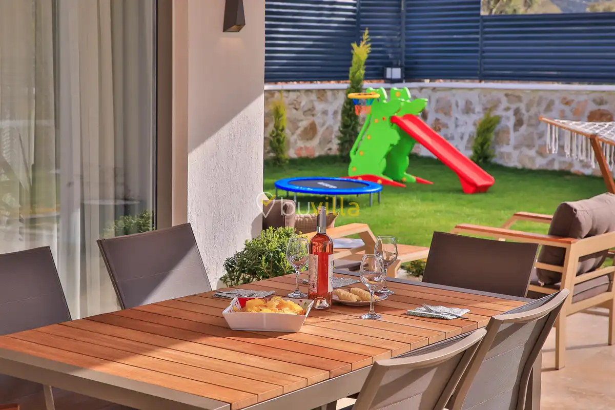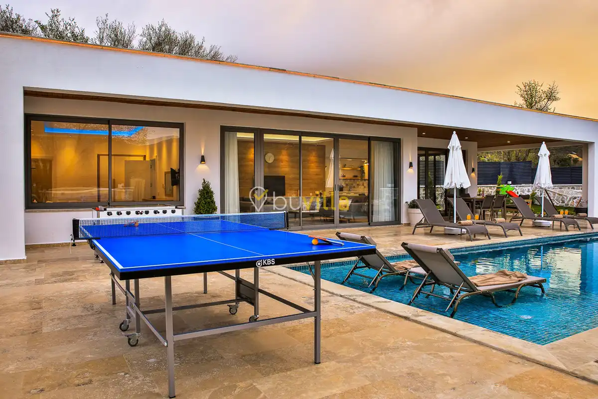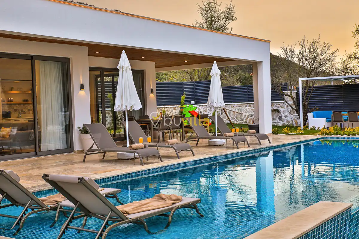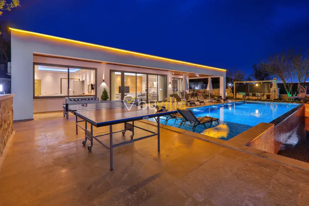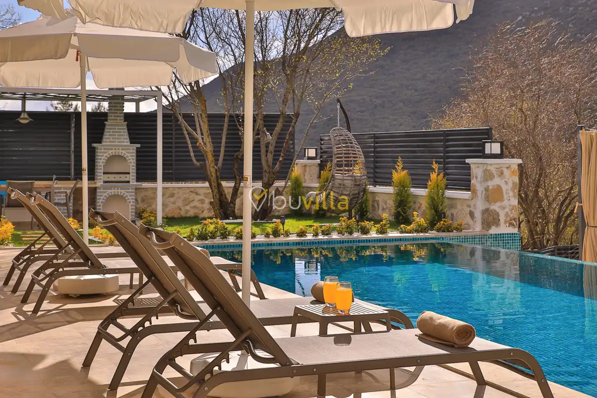 Kiralik Villa Suantik, Kalkan Saribelen mevkiisinde yer almaktadir. 2 yatak odali 4 kisiye kadar konaklama imkani sunan muhafazakar villamizda çocuk oyun alani, langirt, masa tenisi gibi bir çok aktivite imkani sunmaktadir. Doga içerisinde yer alan jakuzili villamiz huzurlu bir tatil için ideal bir seçenektir. Modern Amerikan mutfaginda ihtiyaç duyabileceginiz tüm ekipmanlar yer almakta olup konforlu mobilyalarla dizayn edilmis salonu hizmetinizdedir. Havuz ve bahçe kati oldukça genis olan villamiz siz degerli misafirlerimizi beklemektedir.