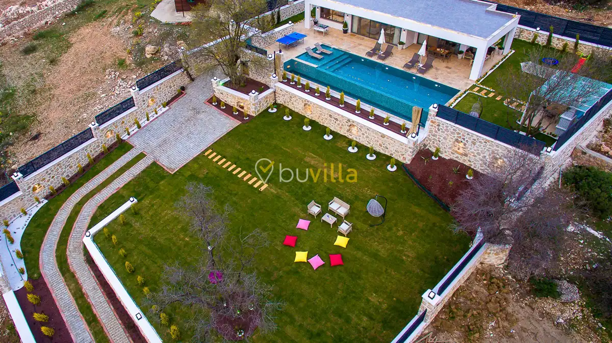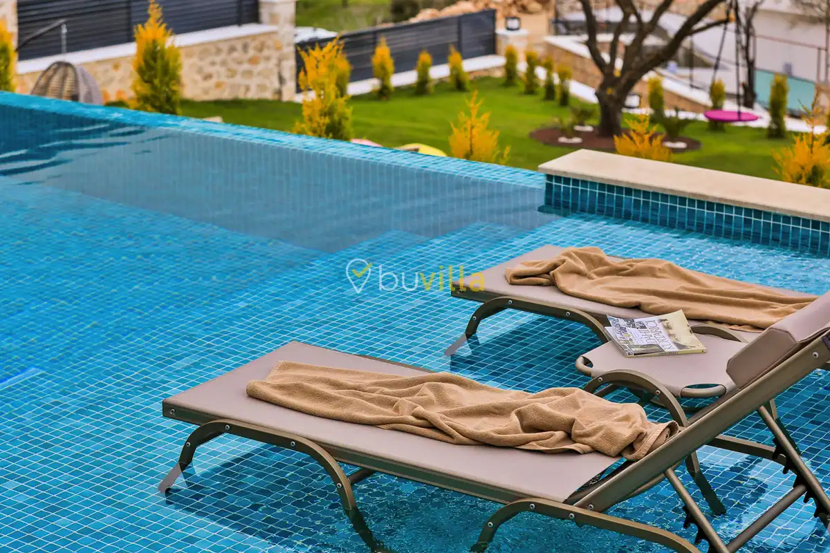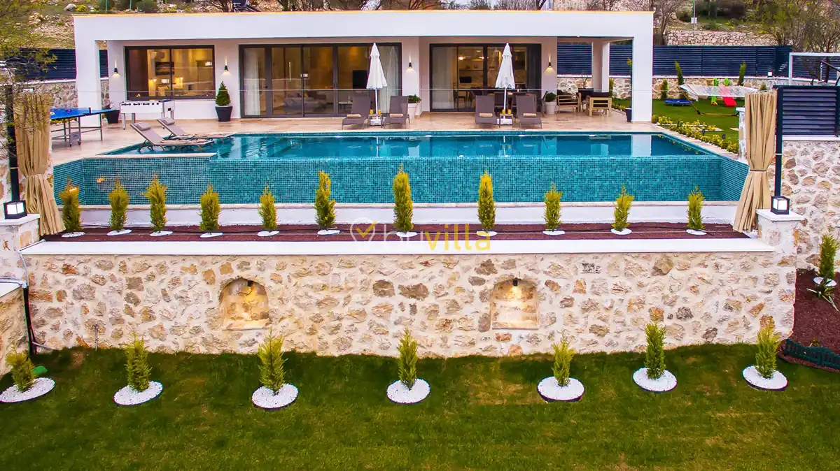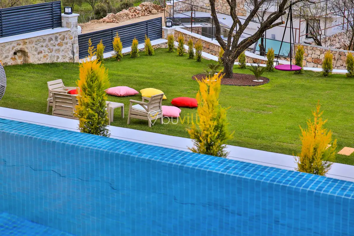 Kiralik Villa Suantik, Kalkan Saribelen mevkiisinde yer almaktadir. 2 yatak odali 4 kisiye kadar konaklama imkani sunan muhafazakar villamizda çocuk oyun alani, langirt, masa tenisi gibi bir çok aktivite imkani sunmaktadir. Doga içerisinde yer alan jakuzili villamiz huzurlu bir tatil için ideal bir seçenektir. Modern Amerikan mutfaginda ihtiyaç duyabileceginiz tüm ekipmanlar yer almakta olup konforlu mobilyalarla dizayn edilmis salonu hizmetinizdedir. Havuz ve bahçe kati oldukça genis olan villamiz siz degerli misafirlerimizi beklemektedir.