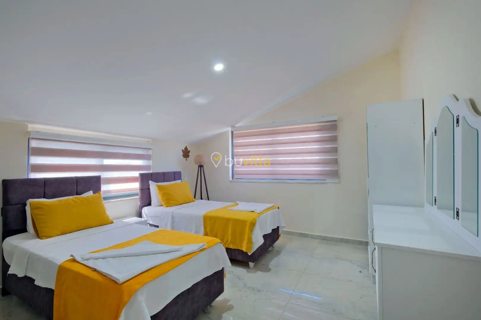 Fethiye’nin gözde tatil bölgelerinden Ovacık mevkiinde konumlanan Villa Sudenaz, lüks detayları ve üst düzey konfor sunan donanımıyla geniş aileler ve arkadaş grupları için ideal bir tatil villasıdır. Toplam 4 yatak odası ve 8 kişi konaklama kapasitesine sahip olan villamızda, her yatak odası özel banyolu olarak tasarlanmıştır.