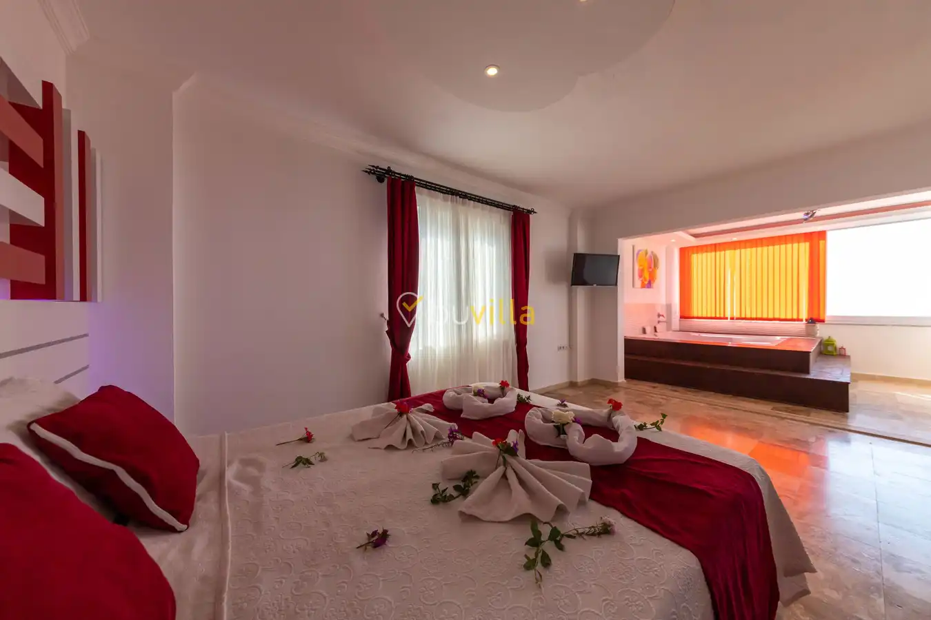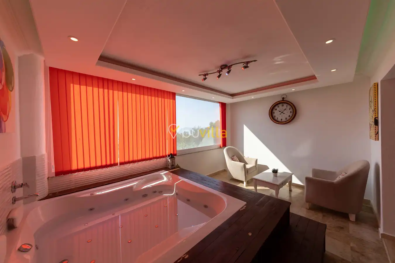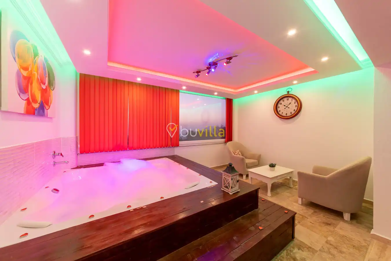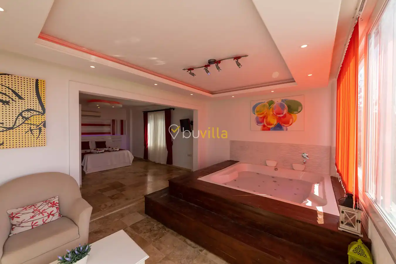 Doğa ile iç içe konumu sayesinde sakin ve dinlendirici bir atmosfer sunan Villa Sultan, geniş terası ve çocuk havuzuyla ailece keyifli vakit geçirebileceğiniz alanlara sahiptir. Ana yatak odasında yer alan geniş jakuzi ise tatilinize ekstra konfor ve rahatlık katmaktadır.