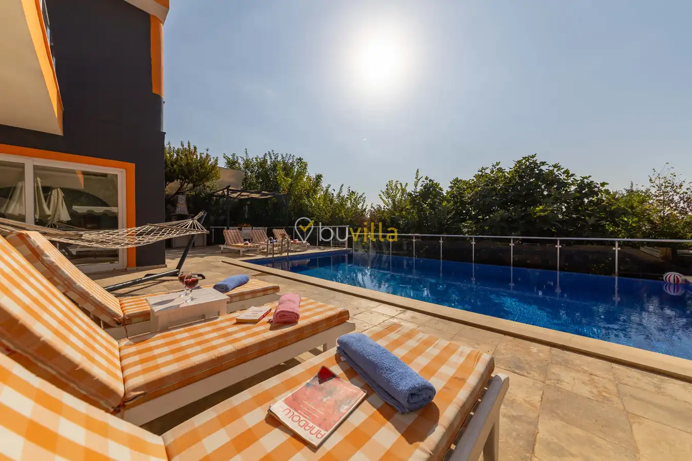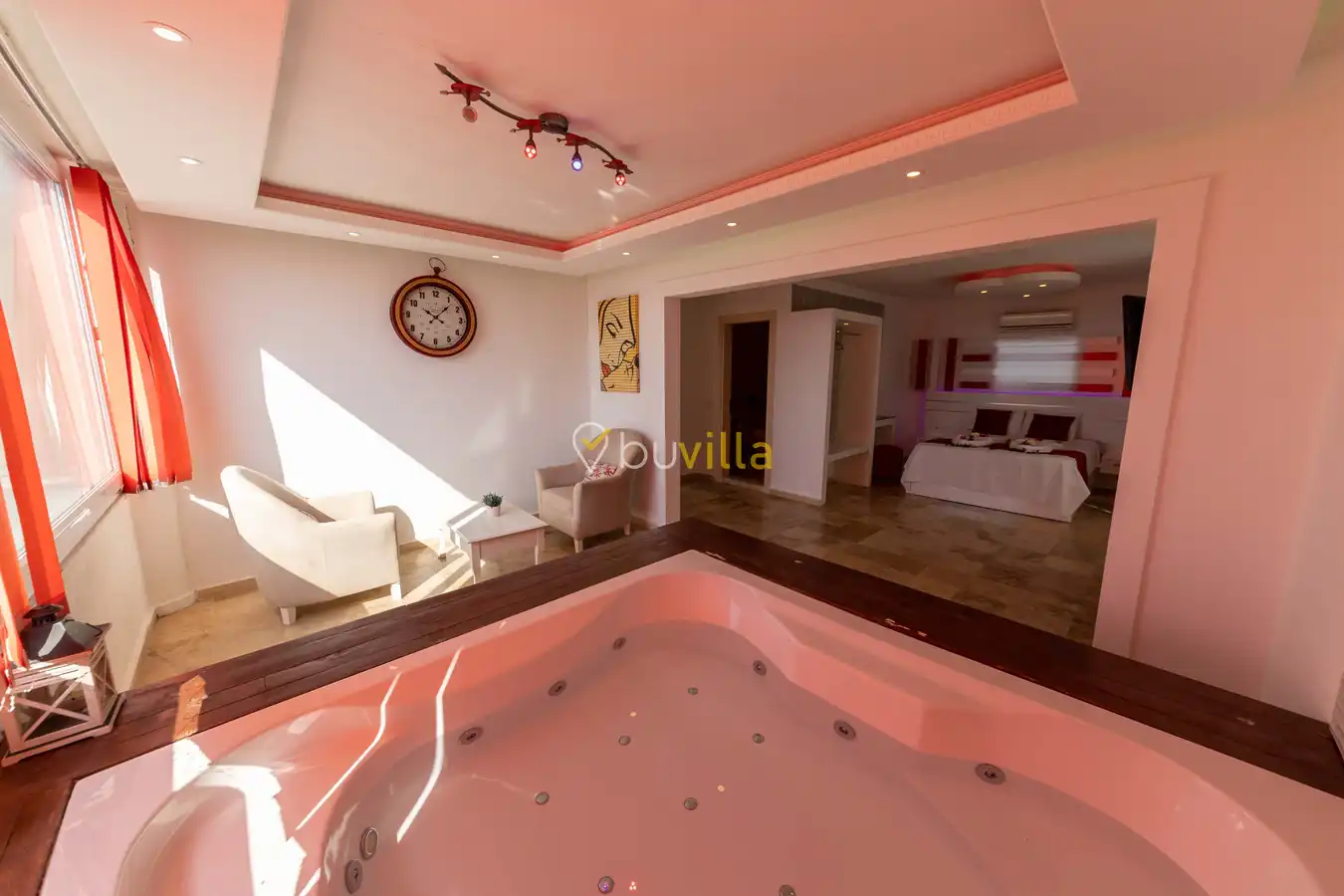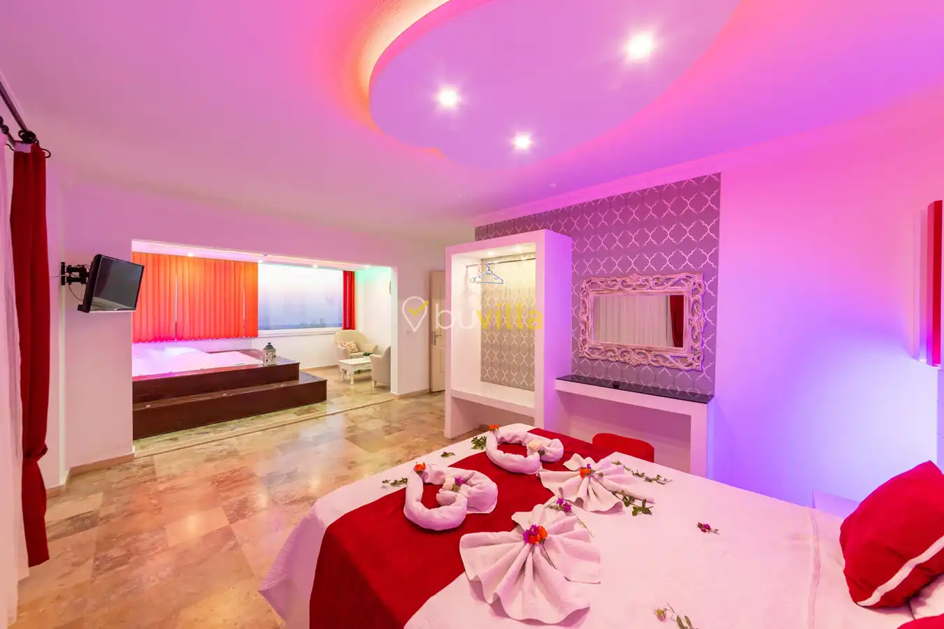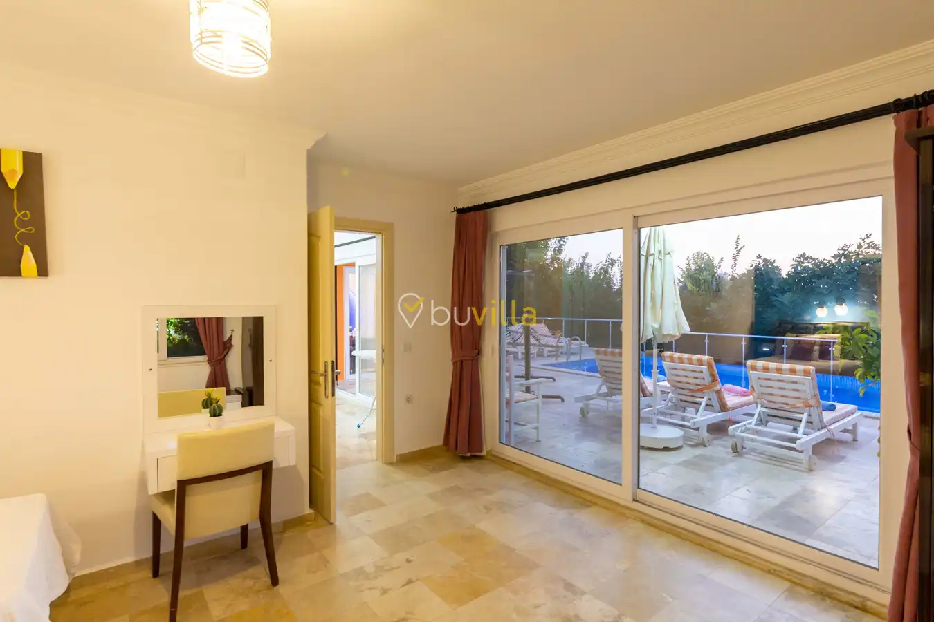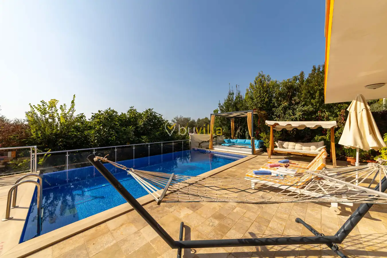 Doğa ile iç içe konumu sayesinde sakin ve dinlendirici bir atmosfer sunan Villa Sultan, geniş terası ve çocuk havuzuyla ailece keyifli vakit geçirebileceğiniz alanlara sahiptir. Ana yatak odasında yer alan geniş jakuzi ise tatilinize ekstra konfor ve rahatlık katmaktadır.