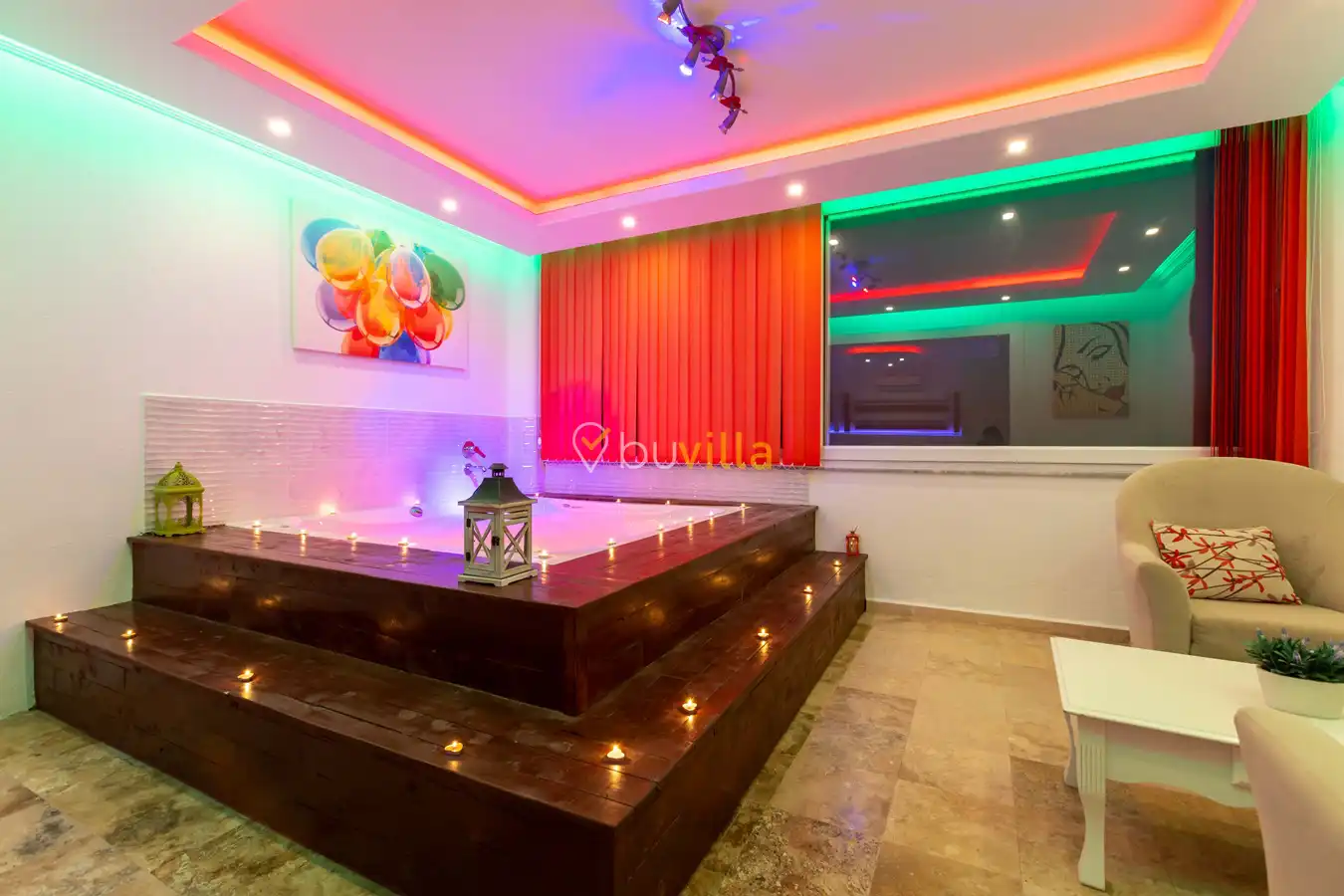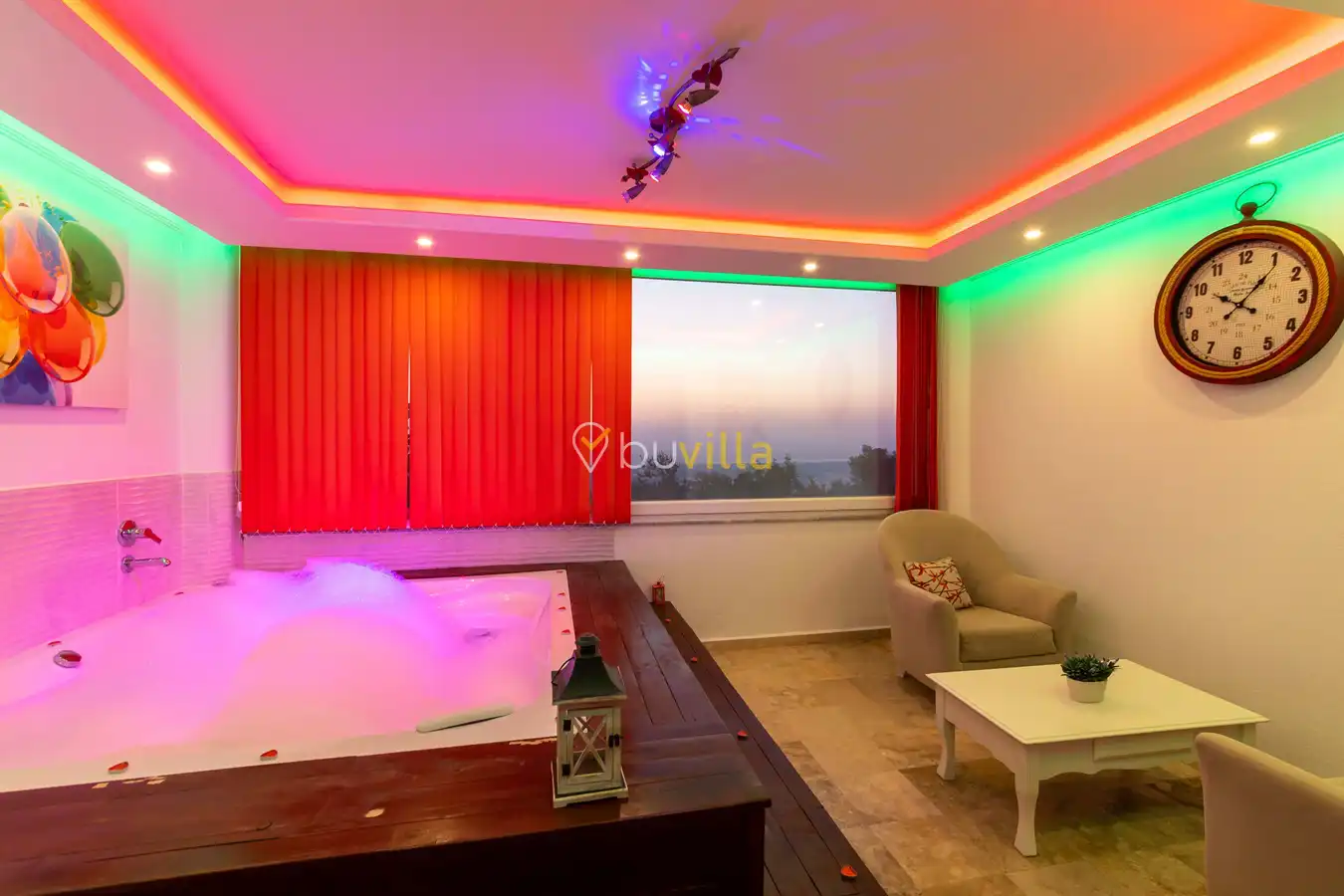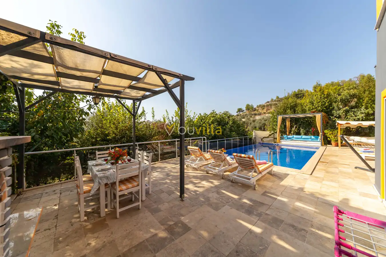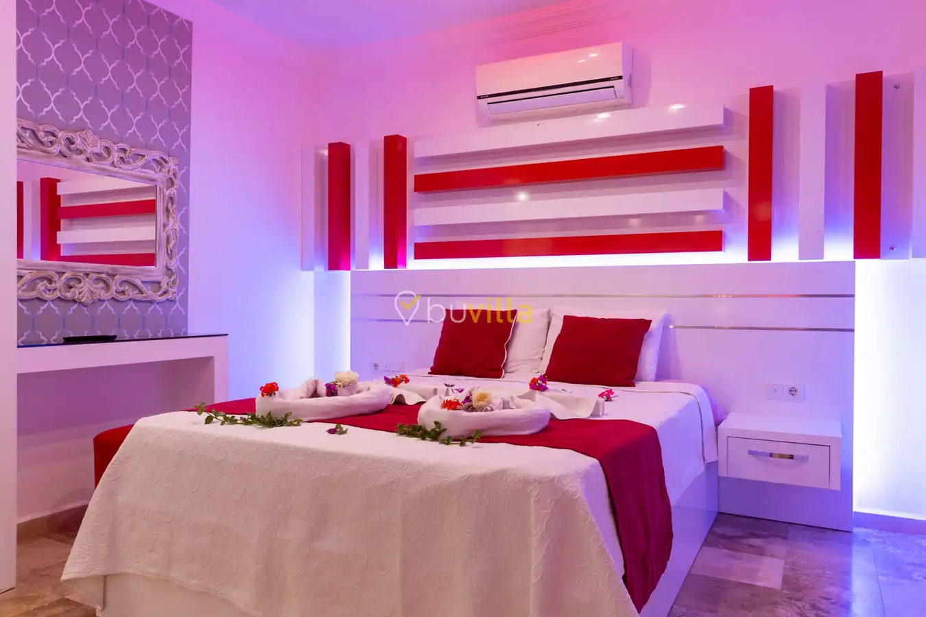 Doğa ile iç içe konumu sayesinde sakin ve dinlendirici bir atmosfer sunan Villa Sultan, geniş terası ve çocuk havuzuyla ailece keyifli vakit geçirebileceğiniz alanlara sahiptir. Ana yatak odasında yer alan geniş jakuzi ise tatilinize ekstra konfor ve rahatlık katmaktadır.