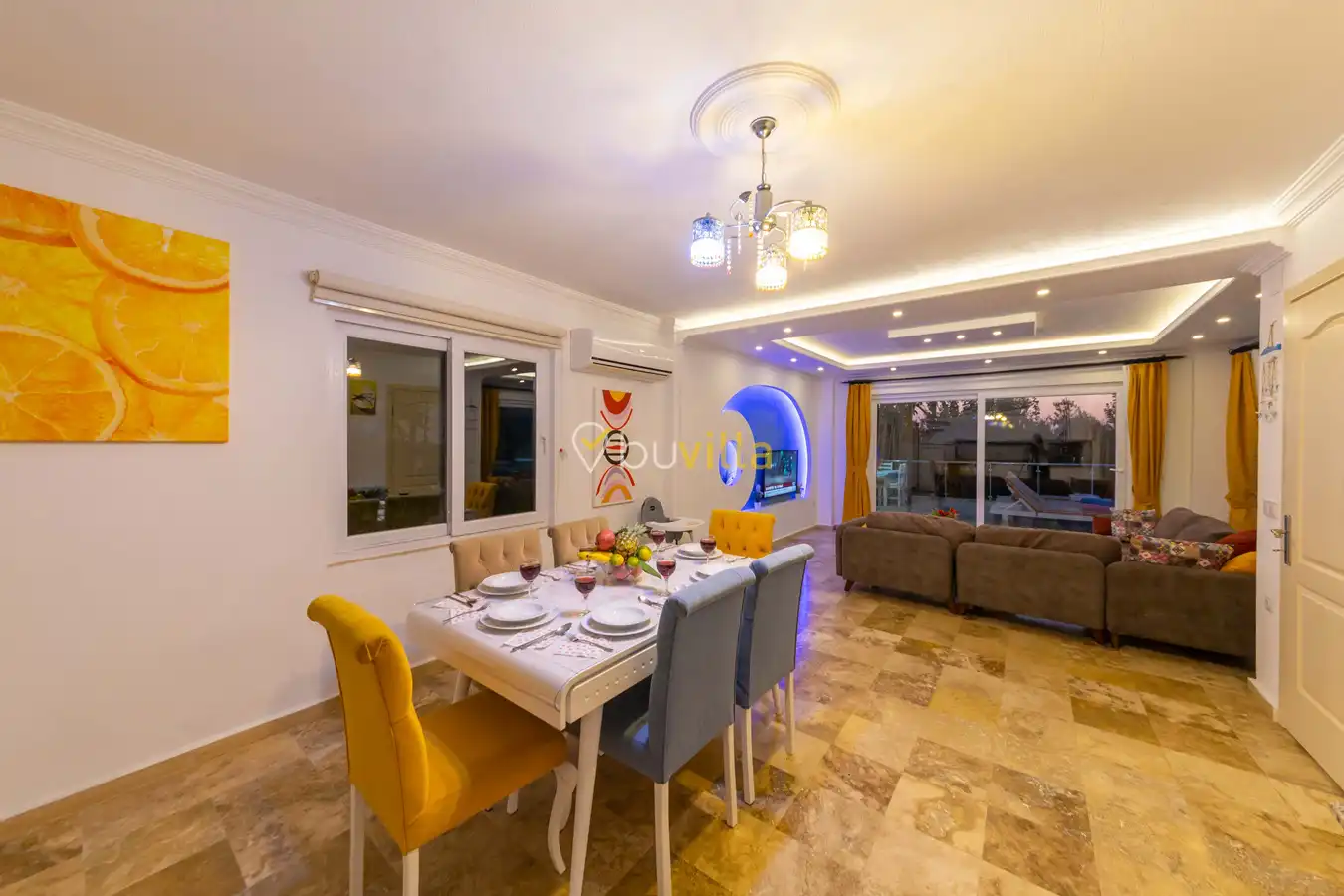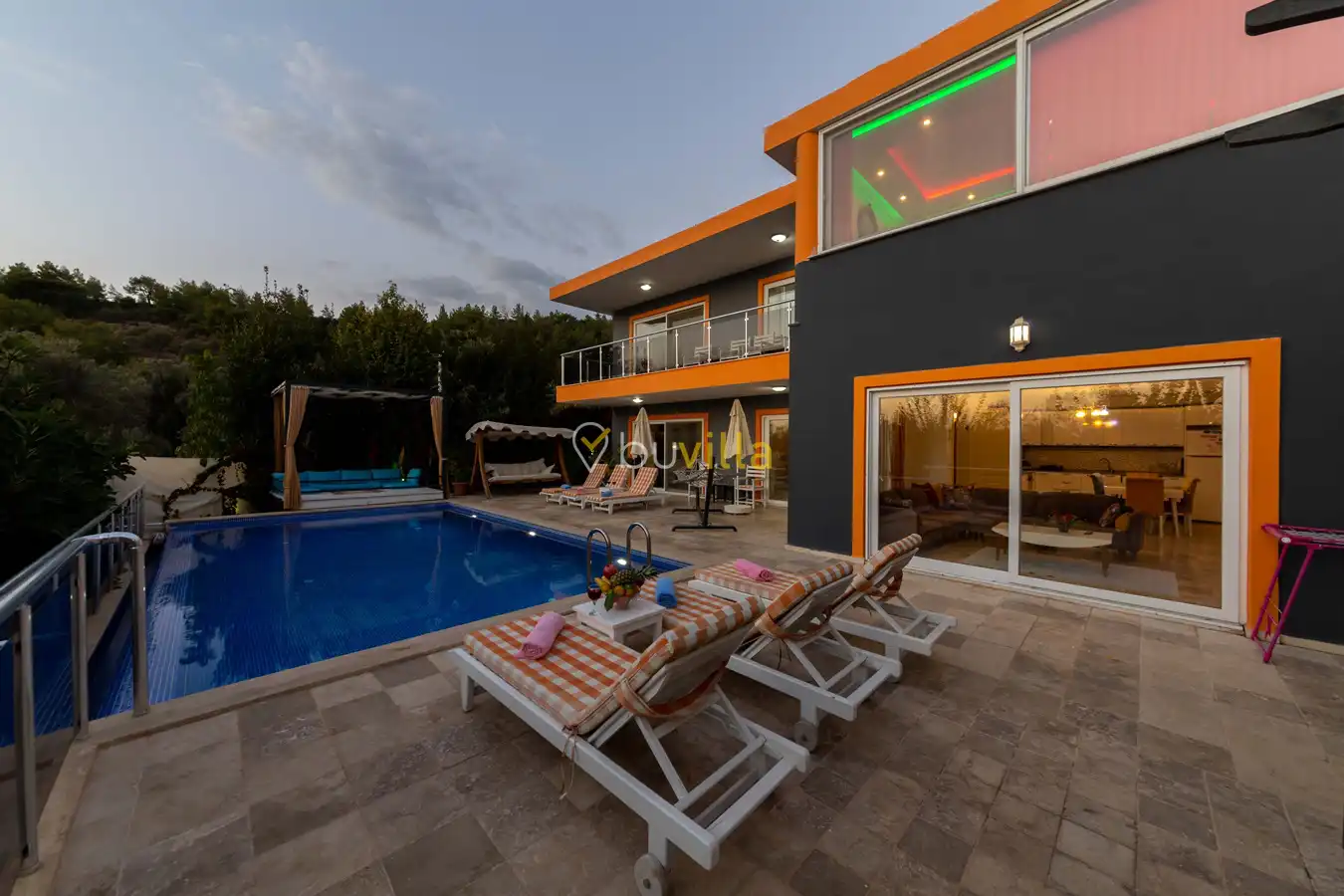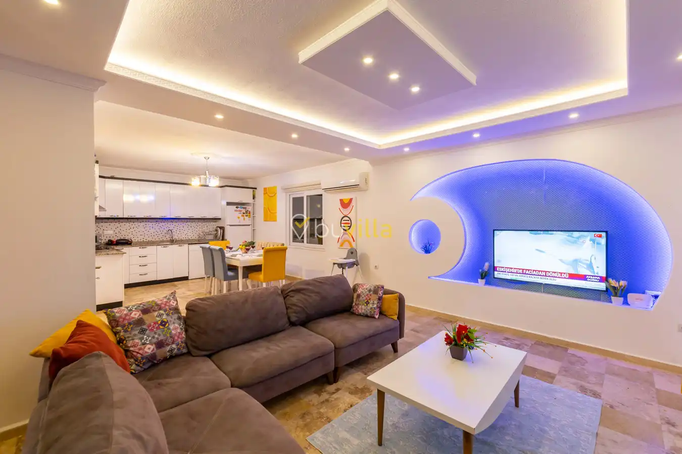 Kalkan’a bağlı İslamlar bölgesinde konumlanan Villa Sultan, doğa manzarası ve şık dekorasyonuyla huzurlu bir tatil arayan misafirler için tasarlanmış özel kiralık tatil villalarından biridir. 6 kişi konaklama kapasitesine sahip olan villamız, aileler ve arkadaş grupları için konforlu ve keyifli bir tatil imkânı sunmaktadır.