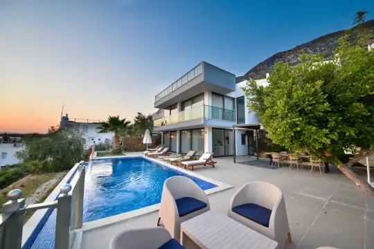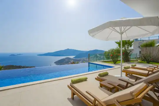 Kiralik Villa Sunrise , Kalkan Kördere mevkiinde muhtesem deniz manzarasi ile göz dolduran villadir. Villamiz 3 yatak odali olan villamizda toplamda 6 kisi konaklayabilmektedir. Genis ve kullanisli havuz terasina sahiptir. Kiralik yazligimizin tam donanimli Amerikan mutfaginda ihtiyaç duyabileceginiz tüm ekipmanlar mevcut olup konforlu mobilyalarla dizayn edilmis salonu hizmetinizdedir. Not: Villa Sunrise'nin hemen yan tarafinda Villa Sunshine bulunmakta olup kalabalik aileler ve arkadas gruplari için ideal bir seçeniktir.