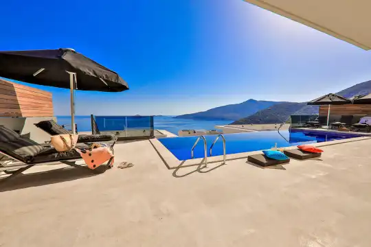 Deniz Manzarali Lüks Villa Kiralik Villa Sweet, Kas Kalkan Kalamar mevkiinde 6 kisi kapasiteli villamiz genis ailelere uygundur. Muhtesem denize manzarasi ve lüks dizayni ile muhtesem bir tatil imkani sunmaktadir. 3 yatak odali villamizin tüm odalari suit oda sekilndedir deniz manzarasina hakimdir. Unutulmaz bir tatil için Villa Sweet siz degerli misafirlerini agirlamayi bekliyor.