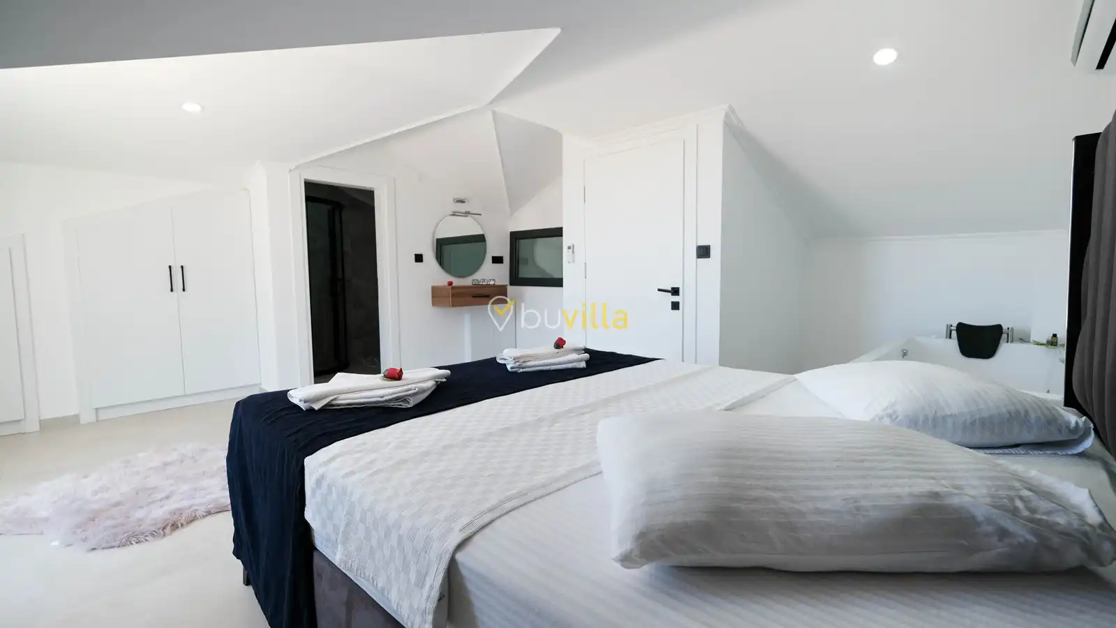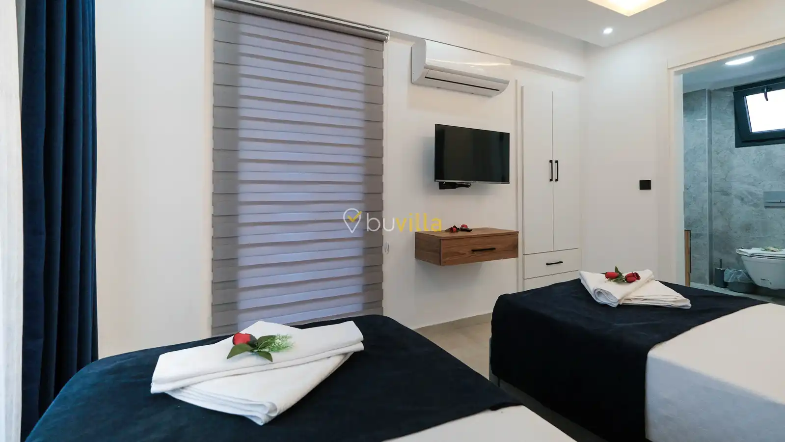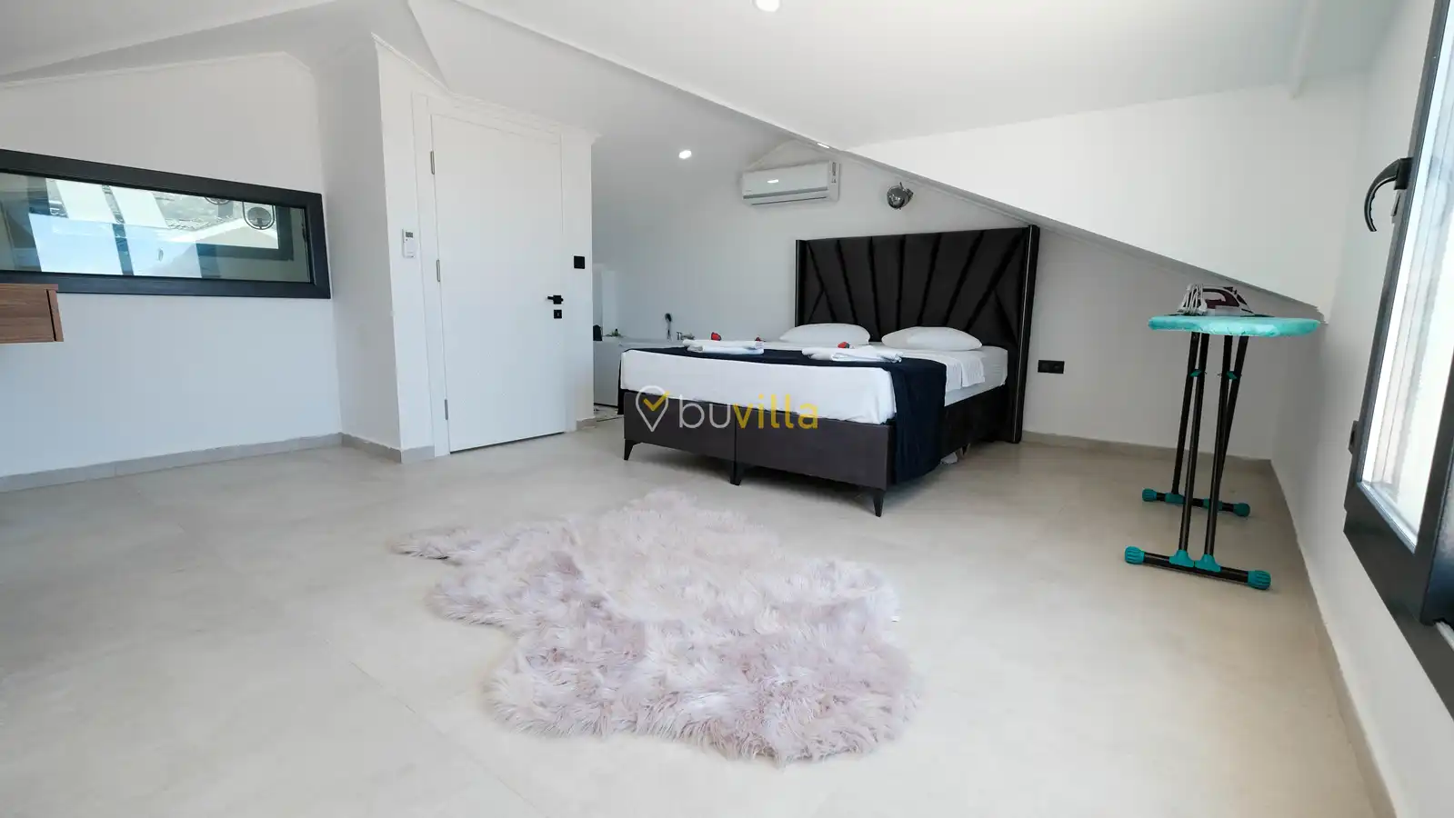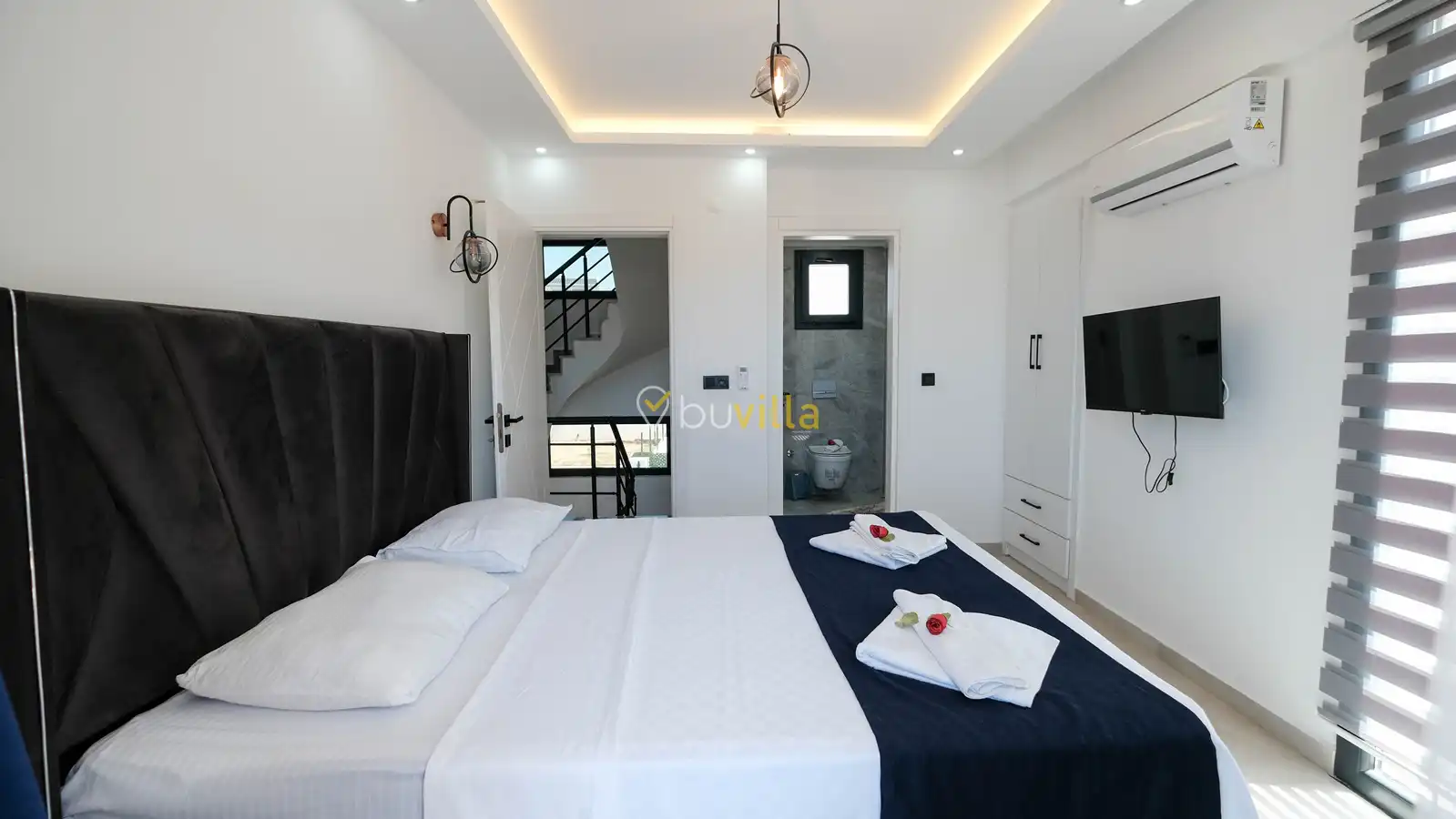 Modern ve konforlu bir tasarıma sahip olan villamızın ana yatak odasında çift kişilik jakuzi yer almakta olup, misafirlerine rahatlatıcı ve keyifli bir tatil deneyimi sunar. Geniş bahçesi, özel havuzu ve ferah yaşam alanlarıyla unutulmaz bir tatil fırsatı sunan villamız, tatilinizi keyifle geçirmeniz için tüm detaylar düşünülerek tasarlanmıştır.