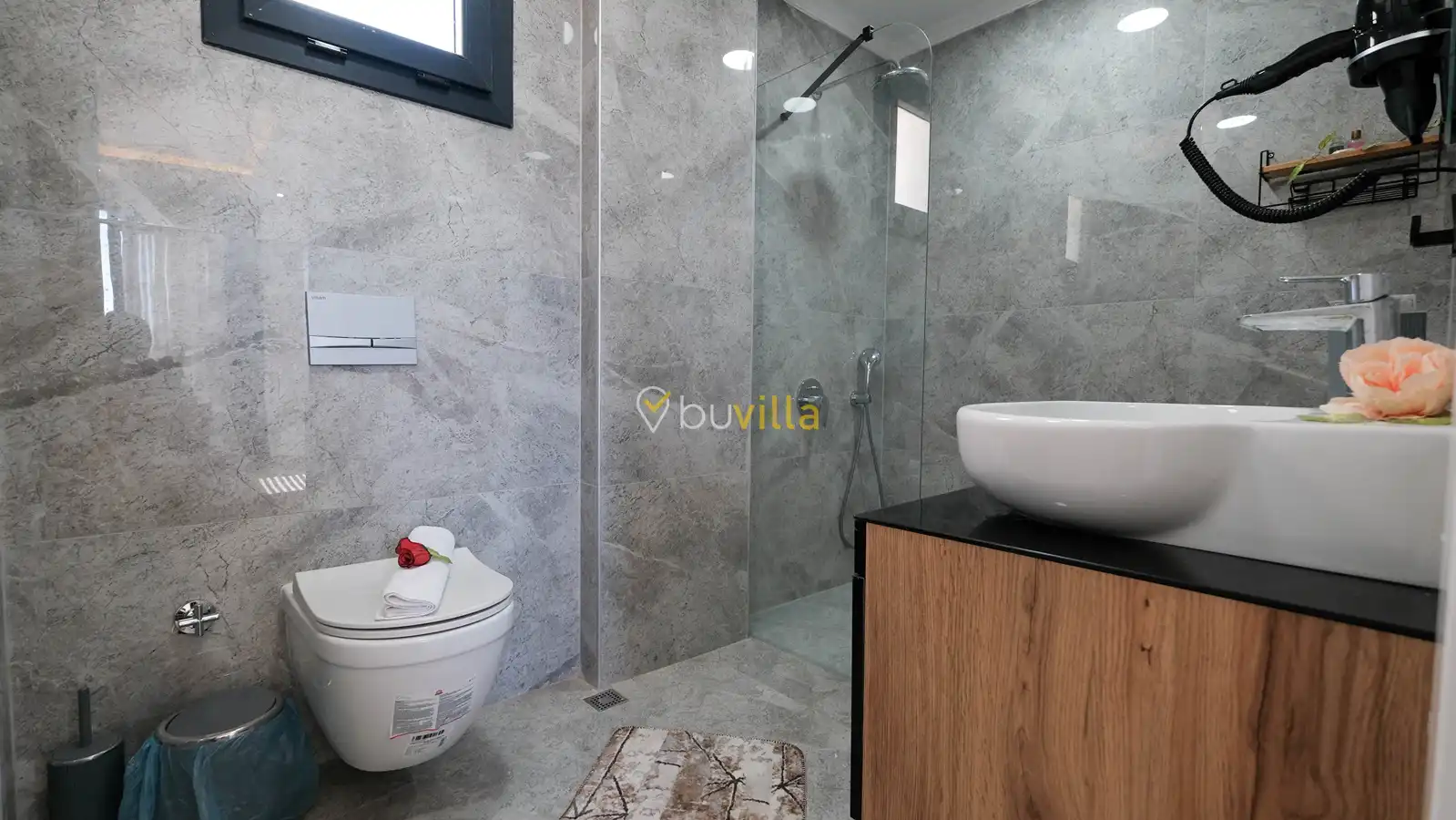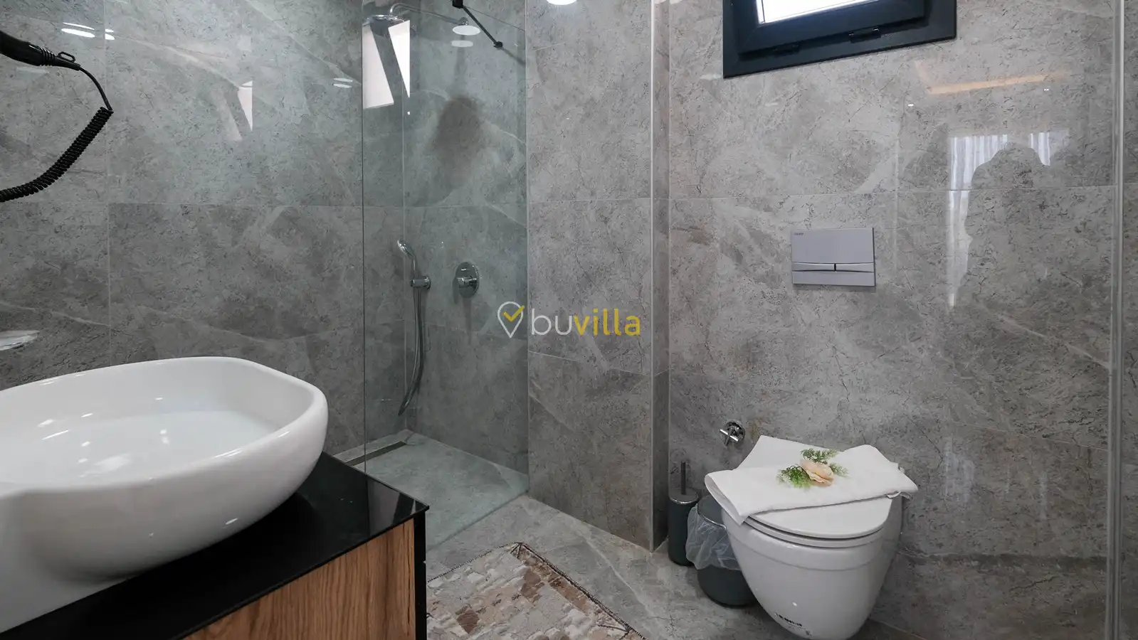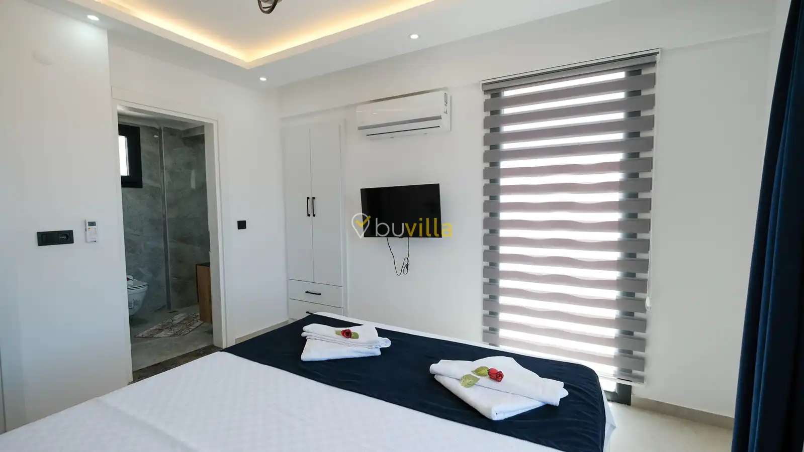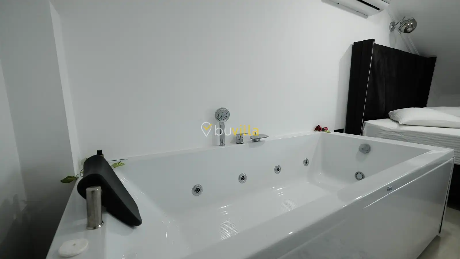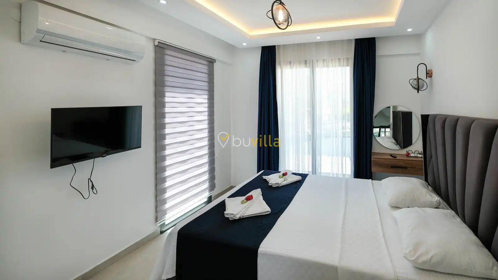 Modern ve konforlu bir tasarıma sahip olan villamızın ana yatak odasında çift kişilik jakuzi yer almakta olup, misafirlerine rahatlatıcı ve keyifli bir tatil deneyimi sunar. Geniş bahçesi, özel havuzu ve ferah yaşam alanlarıyla unutulmaz bir tatil fırsatı sunan villamız, tatilinizi keyifle geçirmeniz için tüm detaylar düşünülerek tasarlanmıştır.