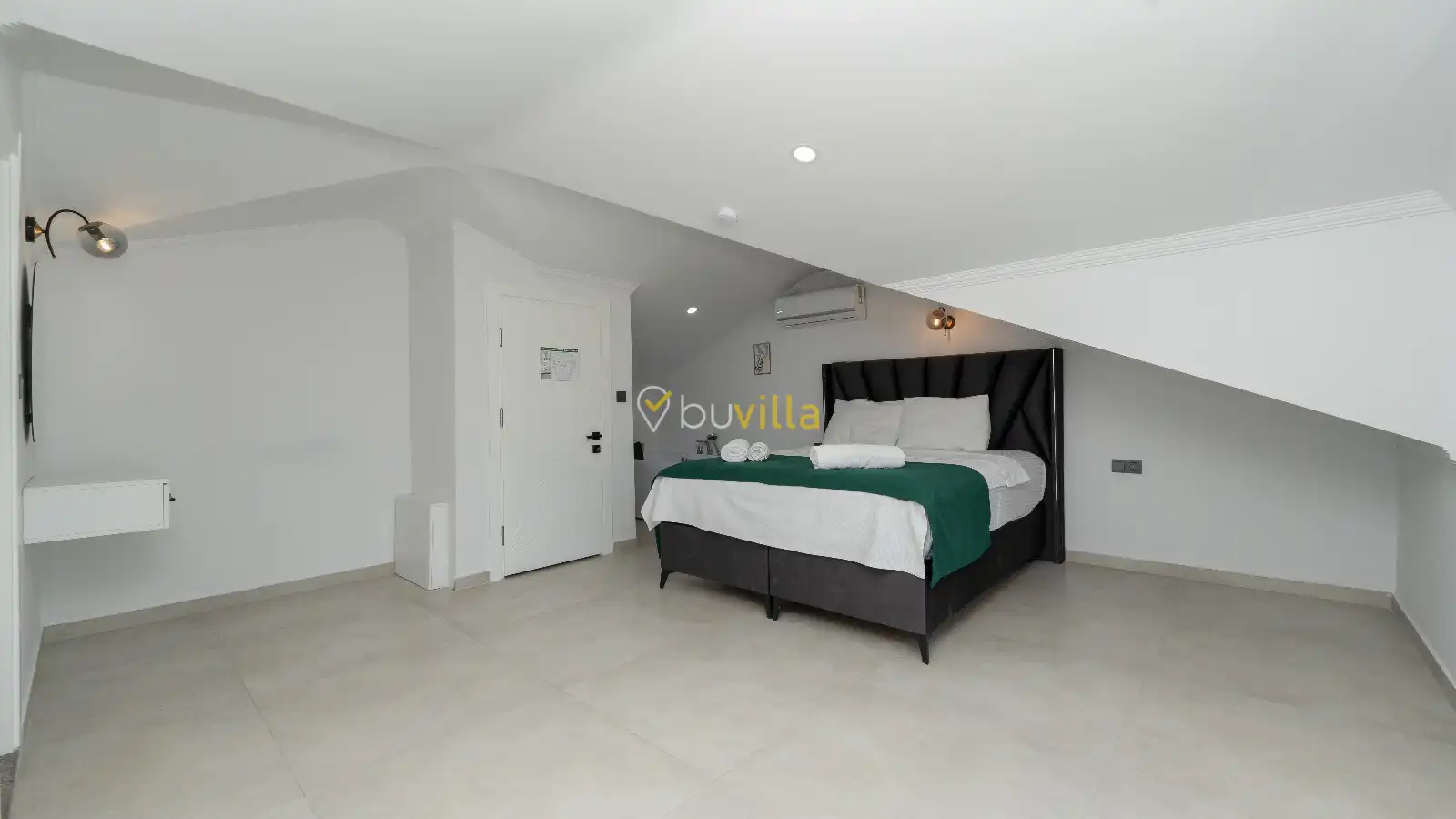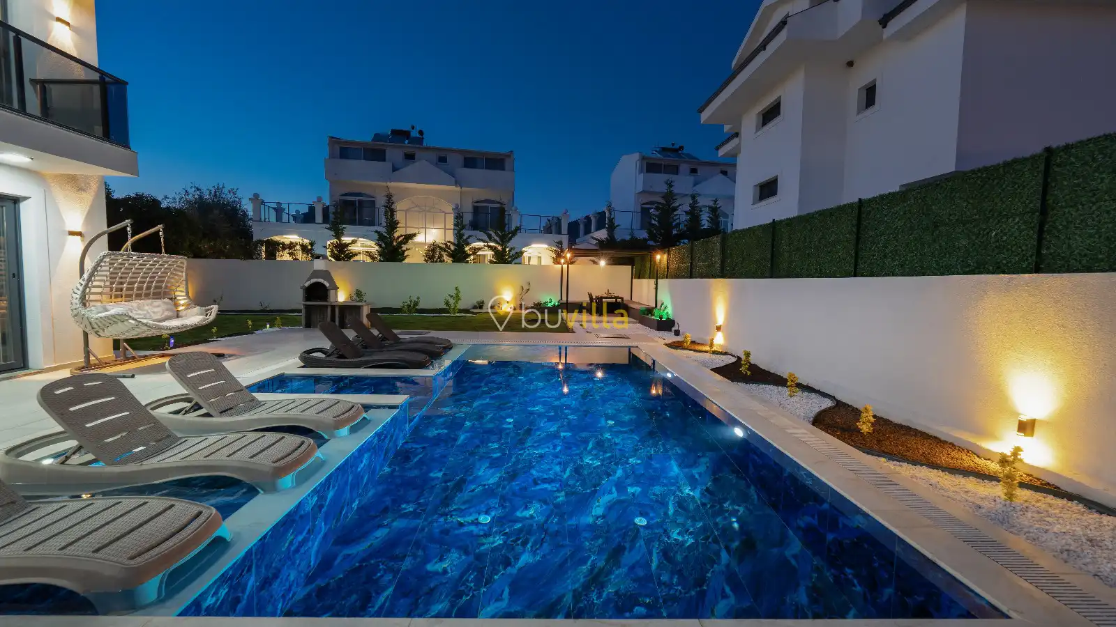 Modern ve şık bir tasarıma sahip olan villamızın ana yatak odasında çift kişilik jakuzi yer almakta olup, misafirlerine hem rahatlatıcı hem de keyifli bir konaklama deneyimi sunar. Geniş bahçesi, özel havuzu ve ferah yaşam alanlarıyla, sevdiklerinizle unutulmaz anılar biriktirebileceğiniz bir tatil fırsatı sizleri bekliyor.