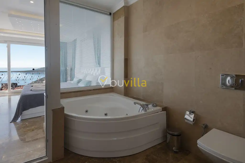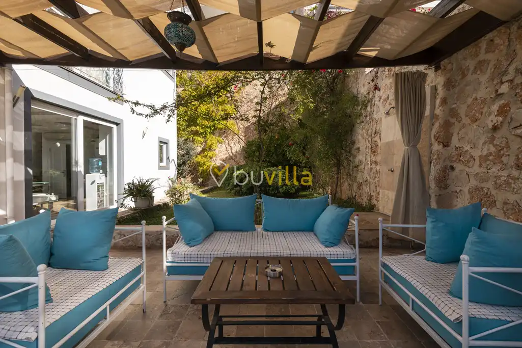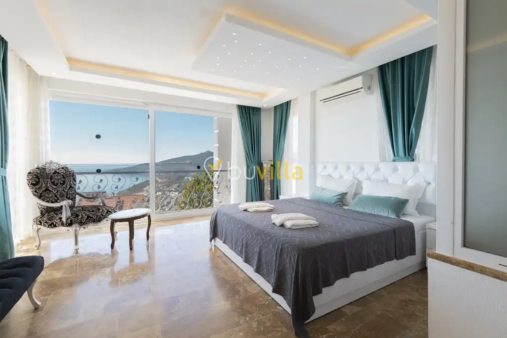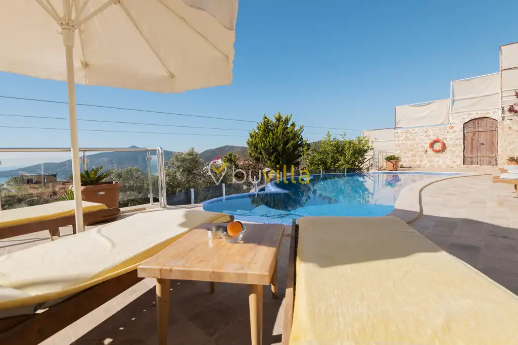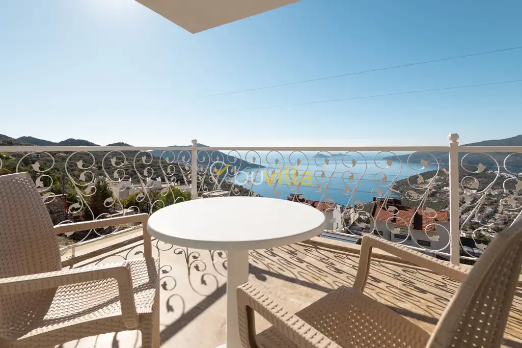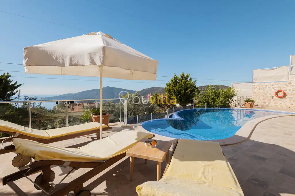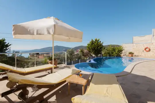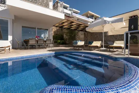 Deniz Manzarali Villa Kiralik Villa Tepe , Kalkan’ in güzide mekanlarindan olan Kiziltas mevkiinde konumlanmaktadir. 4 yatak odali olan villamizda toplamda 8 kisi konaklayabilmektedir. Kiralik villamizin tam donanimli Amerikan mutfaginda ihtiyaç duyabileceginiz tüm ekipmanlar mevcut olup konforlu mobilyalarla dizayn edilmis salonu hizmetinizdedir. Muhtesem deniz manzarasina sahip olan kiralik villamizin genis havuz ve bahçe terasi bulunmaktadir. Keyifli tatil geçirmeniz adina tüm detaylar düsünülmüs olan villamiz misafirlerini agirlamayi beklemektedir.
