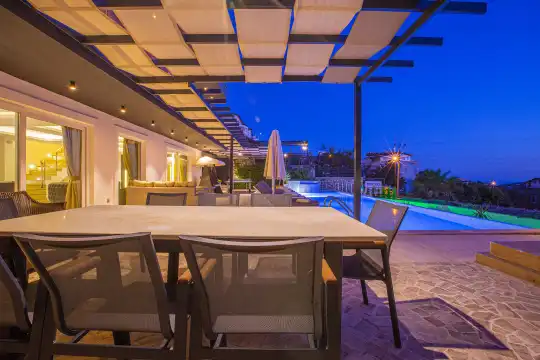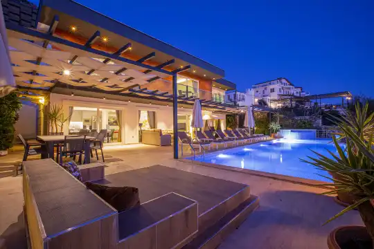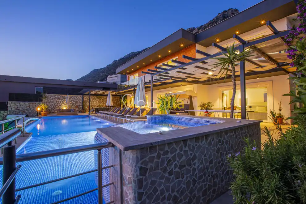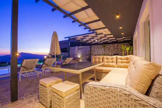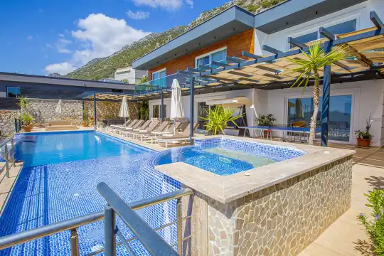 Lüks Kiralik Villa Kiralik Villa Tiger Kalkan Kördere mevkiinde 4 yatak odali 8 kisi kapasitesindedir. Kesintisiz deniz manzarasi bulunan kiralik villa lüks dizayni ile göz doldurmaktadir. Genis bahçe kati ve havuz terasi ile keyifli tatil firsati sunan kiralik villa da masa tenisi,langirt , kosu bandi ve barbekü alani, hamak ve sig havuzu bulunmaktadir. Kalabalik aile ve arkadas gruplari için uygun olan kiralik villa da ihtiyaç duyabileceginiz her türlü ekipman bulunmakta olan kiralik Villa Tiger muhtesem tatil firsati sunmaktadir. Not: Villamida Jeneratör bulunmaktadir.