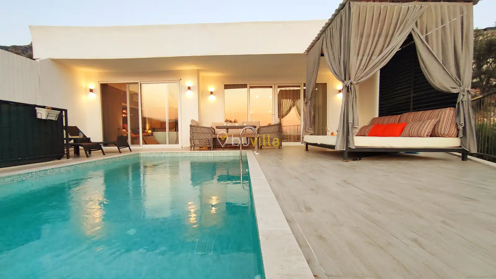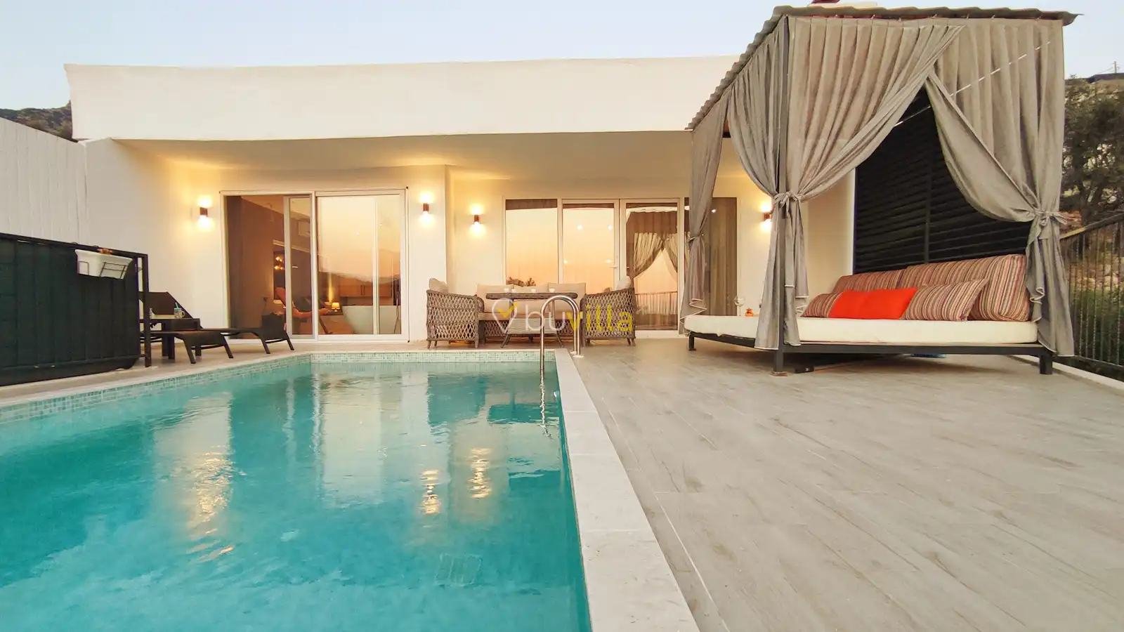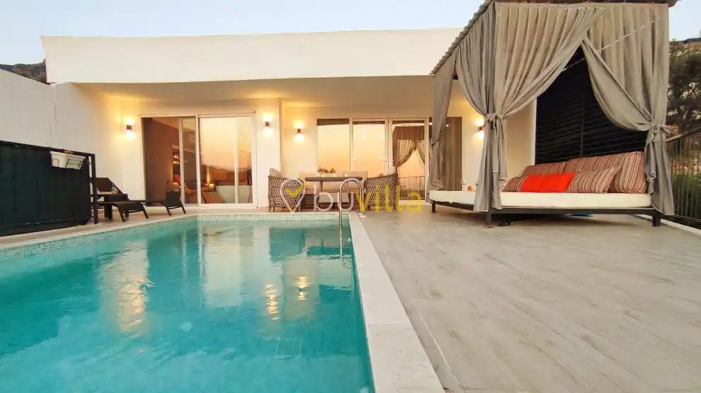 Villa Tofy, Kalkan’ın Akbel mevkiinde konumlanan, 2 yatak odalı ve 4 kişi kapasiteli konforlu bir tatil villasıdır. Modern ve özenle dekore edilmiş iç mekanıyla keyifli bir konaklama deneyimi sunan villa, misafirlerinin konforu için tüm detaylar düşünülerek tasarlanmıştır.