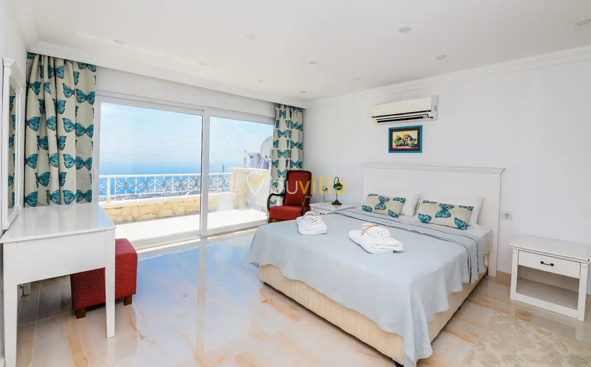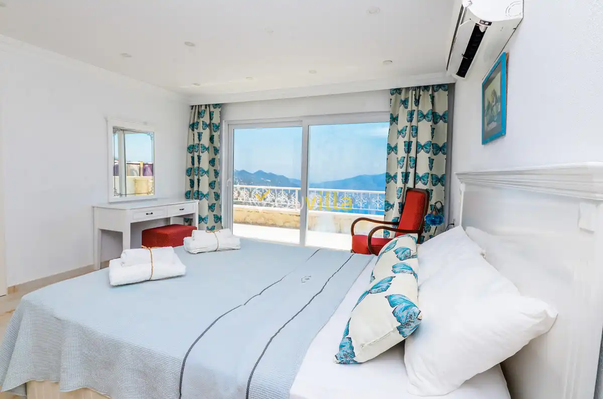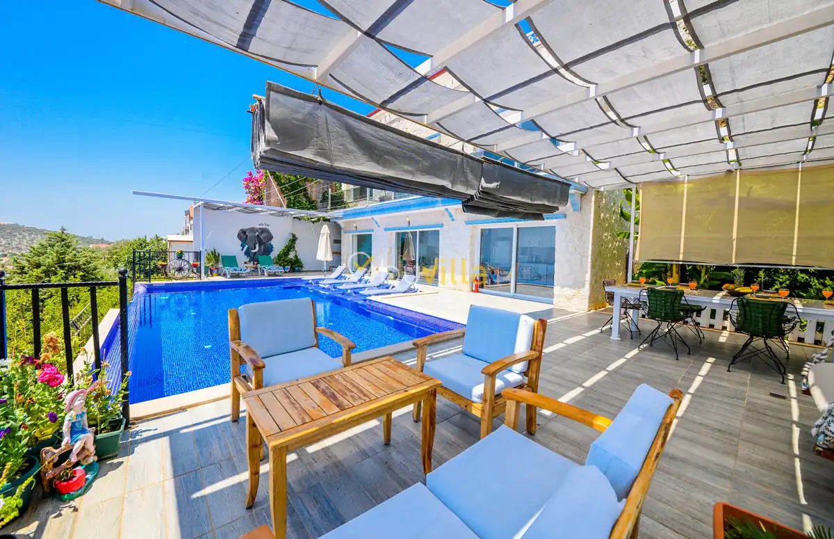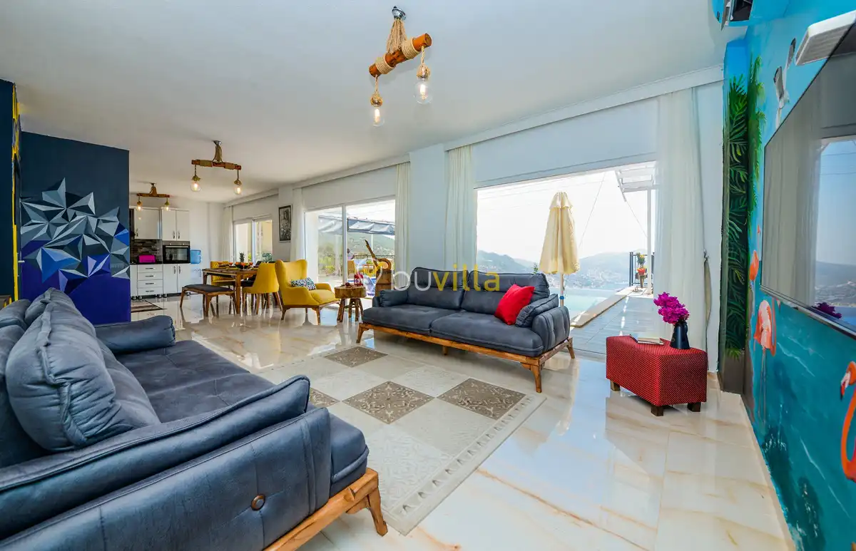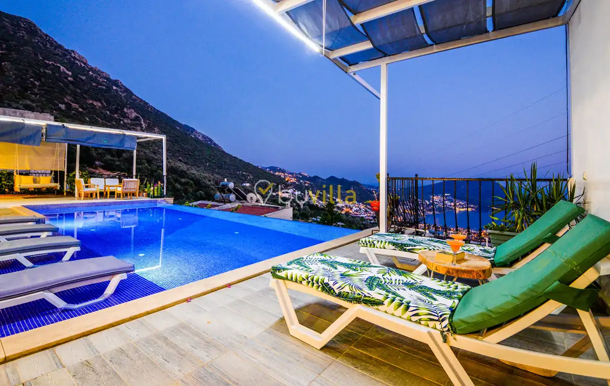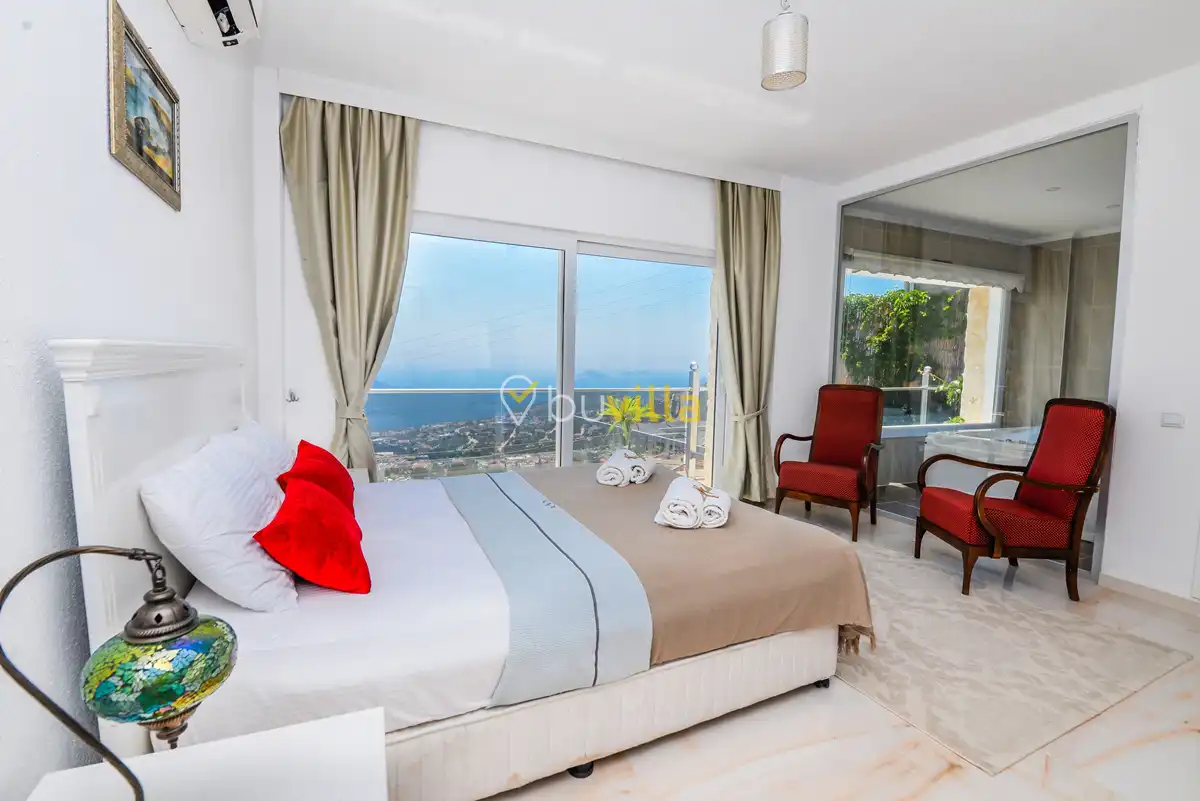 Yamaç bir alanda konumlanan villamız, Kalkan’ı panoramik olarak gören etkileyici bir manzaraya sahiptir. Ferah iç mekânları ve geniş yaşam alanlarıyla konforlu bir konaklama imkânı sağlarken, Akdeniz esintisini doyasıya hissedebileceğiniz verandası tatilinize ayrı bir keyif katar.