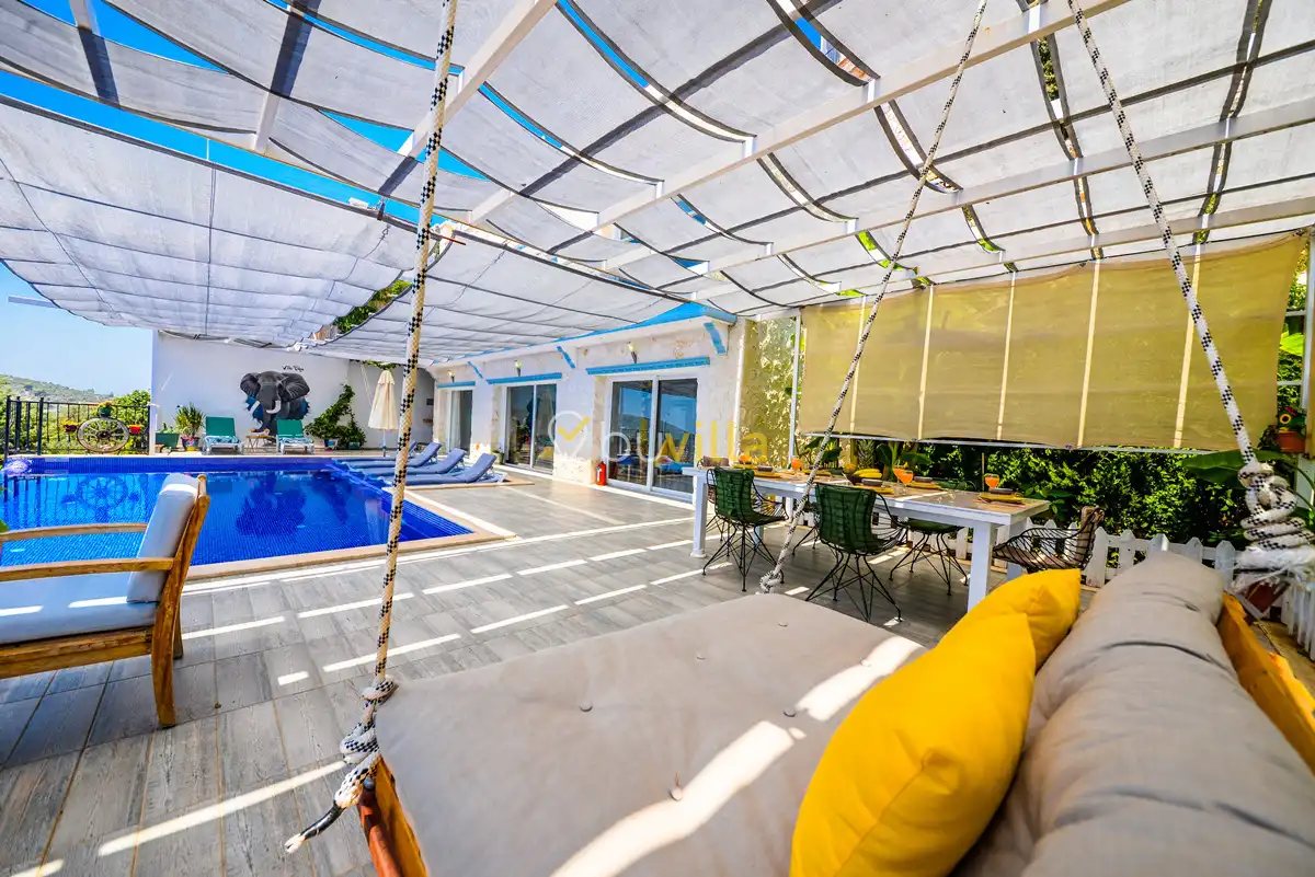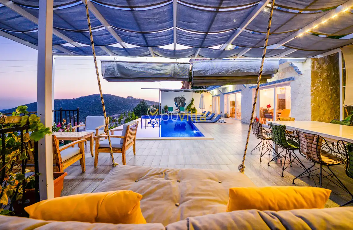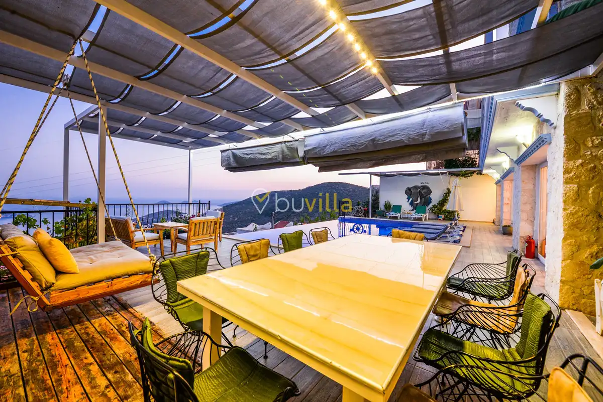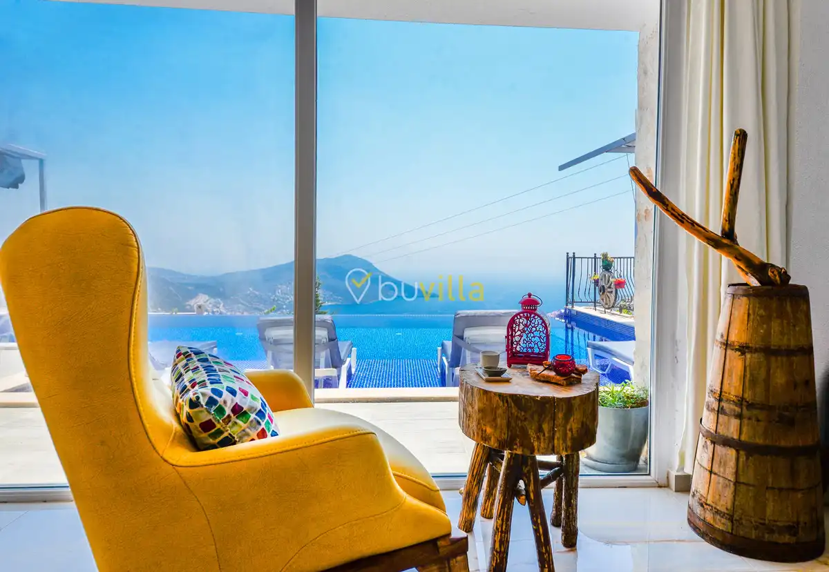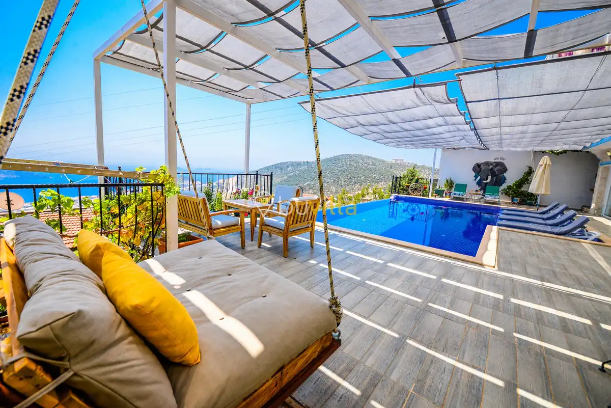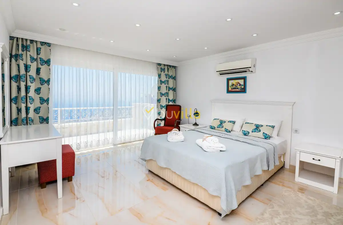 Yamaç bir alanda konumlanan villamız, Kalkan’ı panoramik olarak gören etkileyici bir manzaraya sahiptir. Ferah iç mekânları ve geniş yaşam alanlarıyla konforlu bir konaklama imkânı sağlarken, Akdeniz esintisini doyasıya hissedebileceğiniz verandası tatilinize ayrı bir keyif katar.
