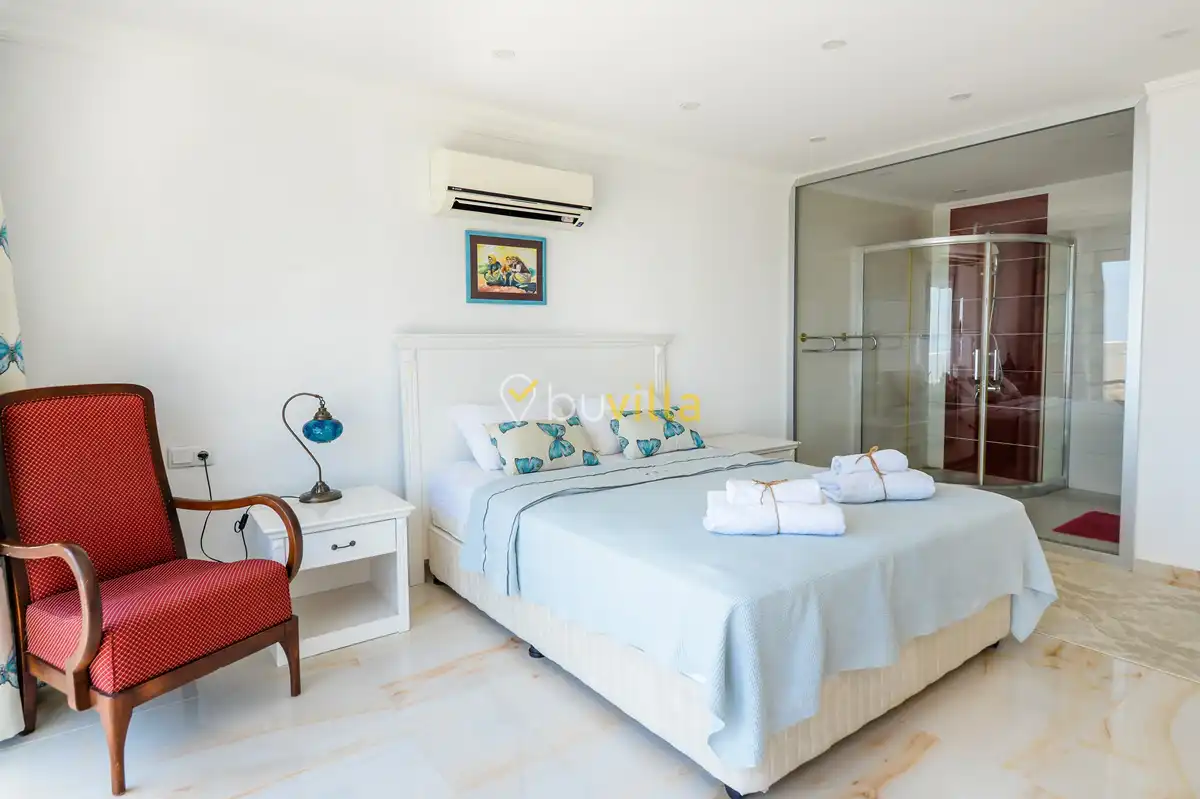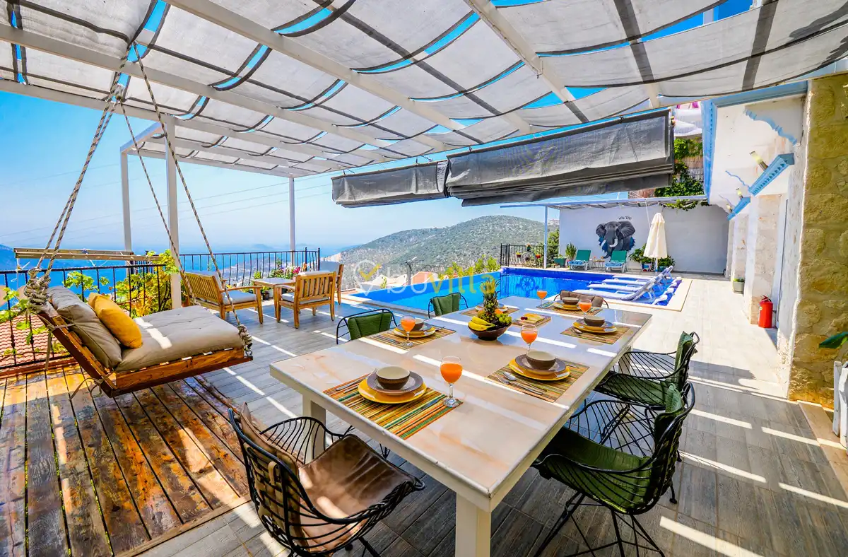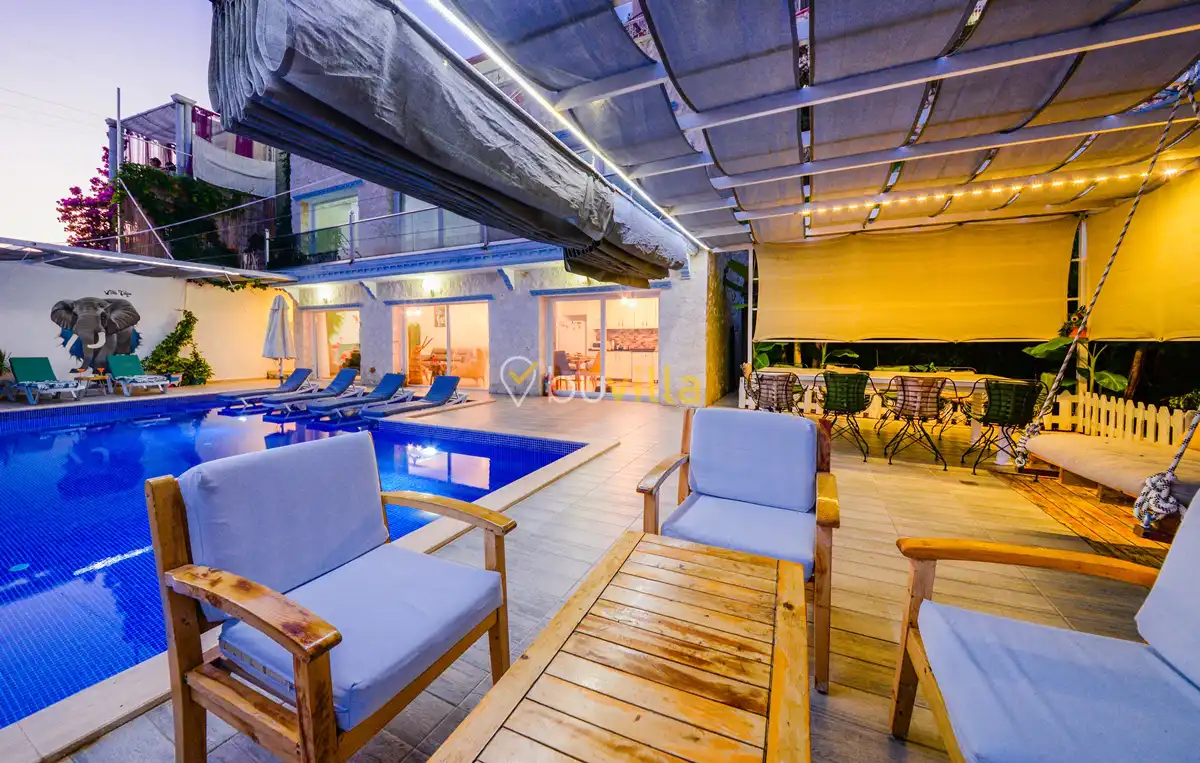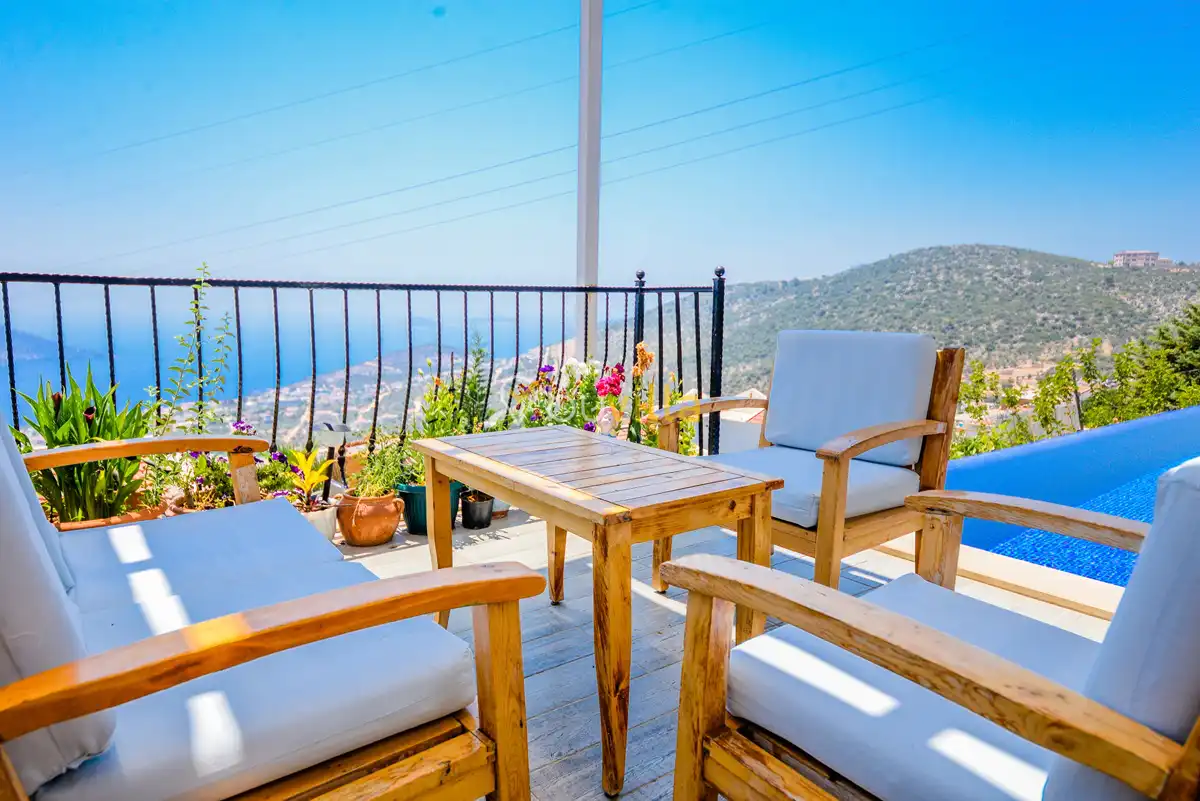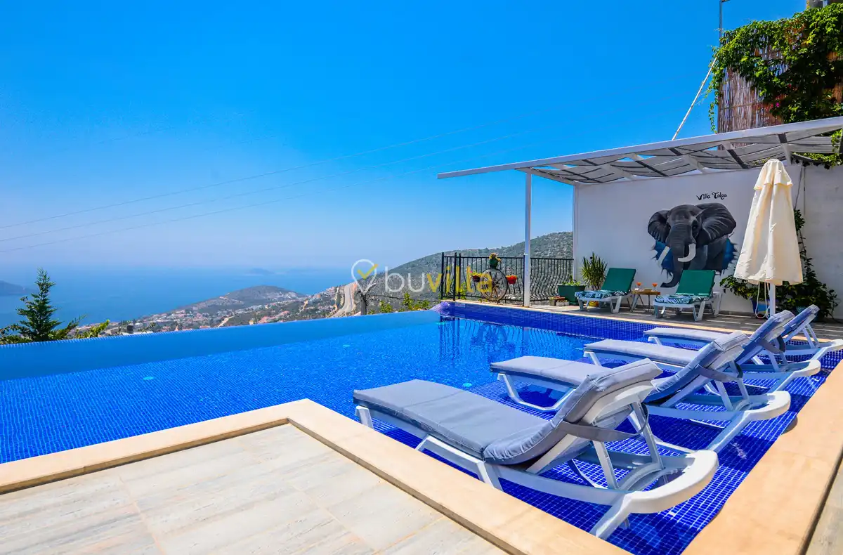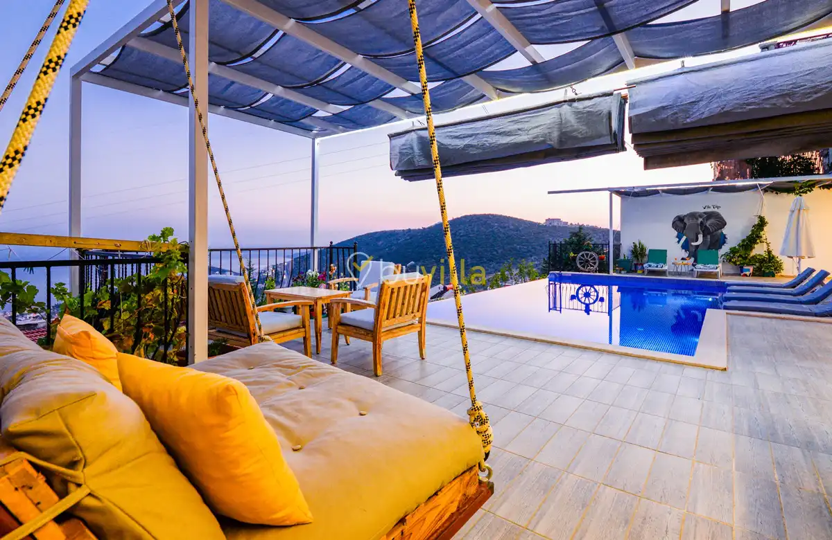 Yamaç bir alanda konumlanan villamız, Kalkan’ı panoramik olarak gören etkileyici bir manzaraya sahiptir. Ferah iç mekânları ve geniş yaşam alanlarıyla konforlu bir konaklama imkânı sağlarken, Akdeniz esintisini doyasıya hissedebileceğiniz verandası tatilinize ayrı bir keyif katar.